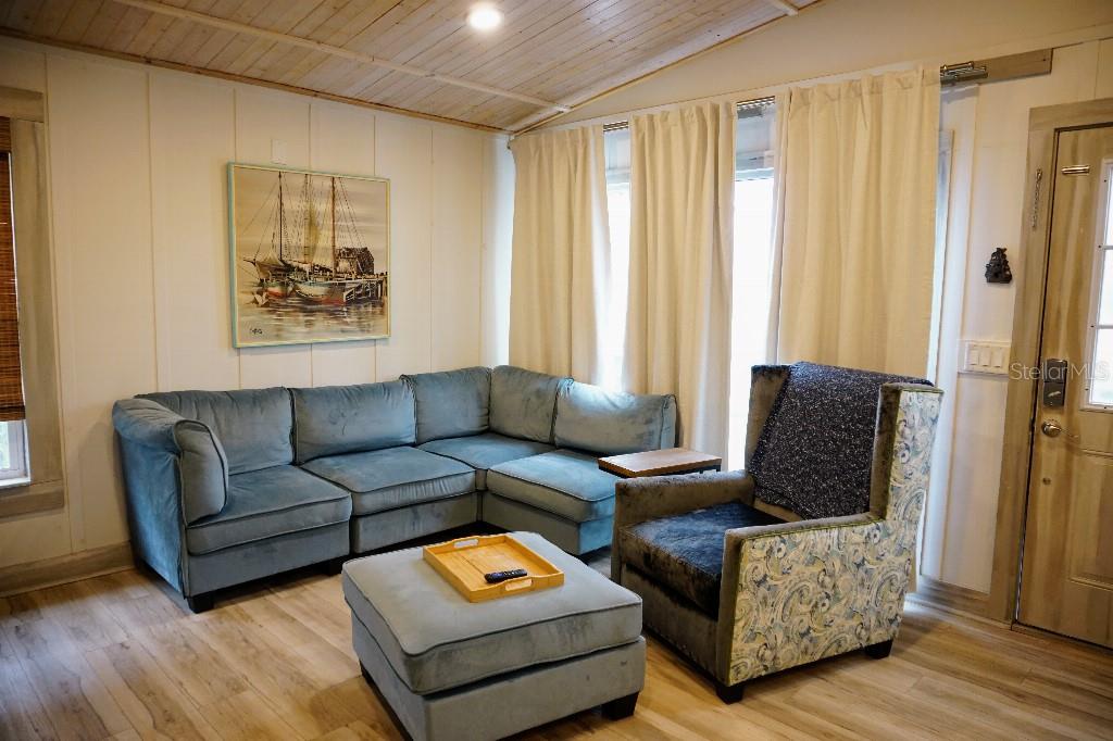 Vaulted Ceiling(s) Living Room/Dining Room Combo Thermostat Open Floorplan Window Treatments Solid Surface CountersExterior Features:
