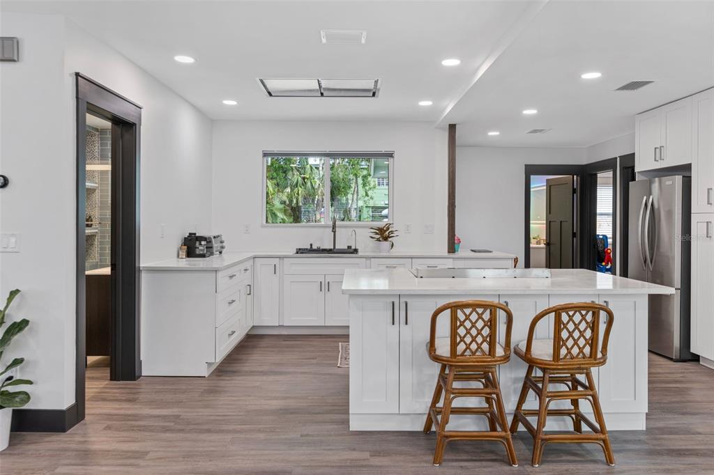 Located in flood zone x with an elevated foundation! exquisite 1932 historic craftsman bungalow offering 1403 sf of living space with a private backyard oasis! step into timeless elegance with this meticulously renovated 3-bedroom, 2-bathroom pool home, perfectly blending historic charm with modern sophistication. located in gulfports vibrant art district and flood zone x, this home experienced no flooding during the recent storms. nestled on scenic, tree-lined beach blvd, the home’s front porch provides sweeping views of clymer park, offering a tranquil setting for your morning coffee and is merely steps from boutique shopping, renowned local dining, art walks, and year-round festivals. no detail has been overlooked—this home has been reimagined to the highest standards, ensuring a seamless move-in experience for the most discerning buyer. a full-scale remodel has elevated the interior and exterior with newly painted smooth textured ceilings and walls, premium finishes and enhanced energy efficiency. efficiency, modern functionality & peace of mind updates include a new tankless water heater, updated plumbing and electrical, upgraded insulation and ductwork, restored original windows and added hurricane-impact windows and doors, solar panels, and solid-core craftsman interior doors. **************************************************************************************************************** the interior boasts a light and airy ambiance with an open-concept layout showcasing luxury vinyl plank flooring, custom neutral paint, new recessed dimmable lighting, and a built-in electric fireplace—perfect for cozy gatherings. sure to impress, the gourmet chef’s kitchen is crafted for entertaining boasting a custom island with bar seating, premium quartz countertops, and professional-grade features including a 5-burner double oven, commercial dual exhaust fan with remote lighting, and deep sink with a waterfall faucet, built-in glass cleaner, and purified water dispenser. in addition, aside the kitchen entry door, a built-in desk functions as the perfect drop station for organization or an office space. step outside the double sliders to discover a backyard designed for both vibrant gatherings and peaceful escapes. tucked behind a custom-built fence with metal-framed locking gates, this private sanctuary features a stunning saltwater pool—the perfect summer centerpiece. picture yourself floating on warm afternoons in this 7.5-ft deep pool, complete with beautiful pavered decking, pool and spa lighting, bench seating, and an inviting spa that can all be operated by an app through the jandy aqualink remote system. entertainment flows effortlessly from the indoors to the outdoors, where the covered patio offers a shaded spot to unwind or host guests year-round. with lush landscaping surrounding the pool, you’ll enjoy a sense of tranquility and seclusion that’s rare to find. inside, the home continues to impress with 2 beautifully modernly updated bathrooms and an indoor laundry. whether you’re hosting overnight guests or enjoying a quiet evening, this home offers a truly turnkey experience—ready for you to move right in and start enjoying. don’t miss this opportunity to own a home where every detail has been designed for comfort, style, and relaxation. the combination of a historic bungalow’s charm with a modern backyard paradise creates an unmatched lifestyle you deserve.2514 BCH S, GULFPORT, FL 33707