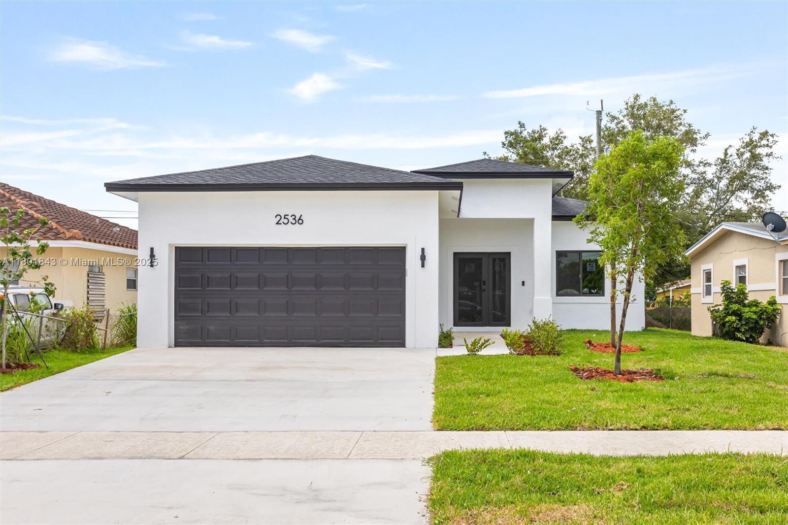 New construction 4-bedroom, 2-bath house is a masterpiece of modern design. the kitchen is a chef's delight, featuring a porcelain farm sink, hardwood cabinets with designer hardware, soft-close drawers, ss appliances and sleek quartz countertop, the range is complemented by a designer over-range hood. the bathrooms are adorned with mosaic glass tiles & bluetooth speakers, creating a spa-like experience. each room boasts solid single shaker doors, adding a touch of elegance. equipped with an integrated sprinkler system, exterior lighting, impact doors and windows, and a high-efficiency washer and dryer this home has everything you need. no hoa means you can enjoy your home your way. great outdoor space for entertaining. conveniently located near restaurants, shopping, and major highways.2536 NW 15TH ST, FORT LAUDERDALE, FL 33311