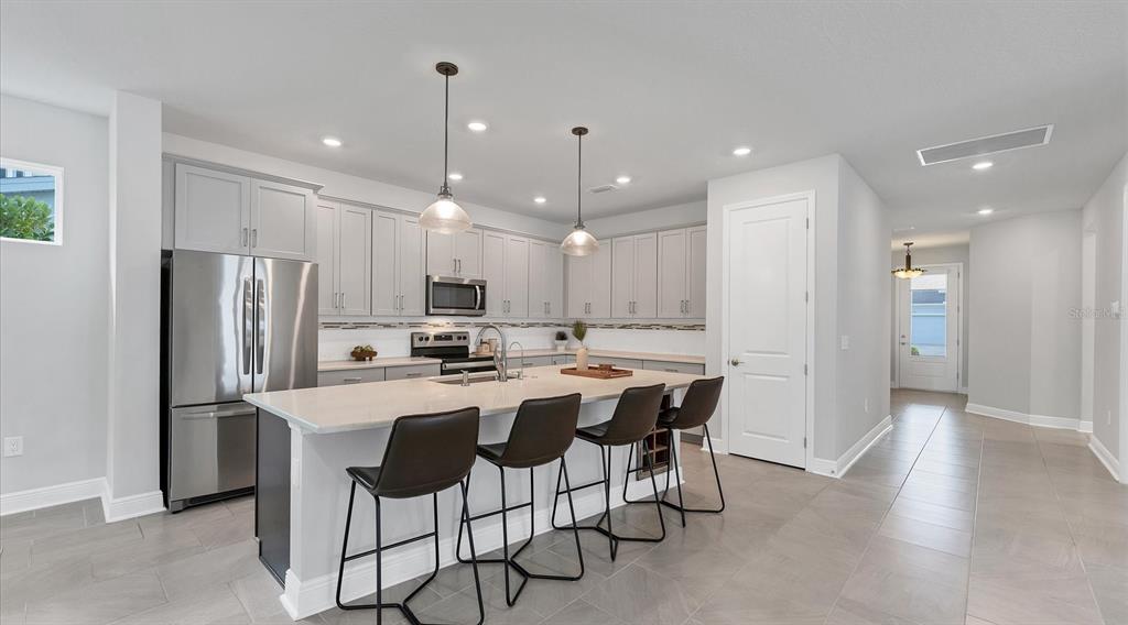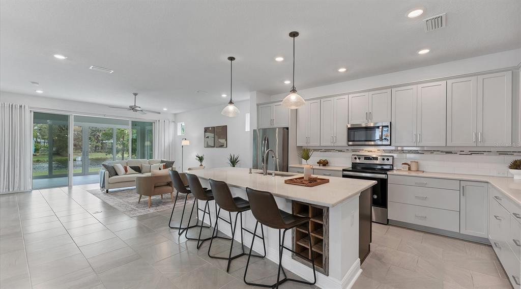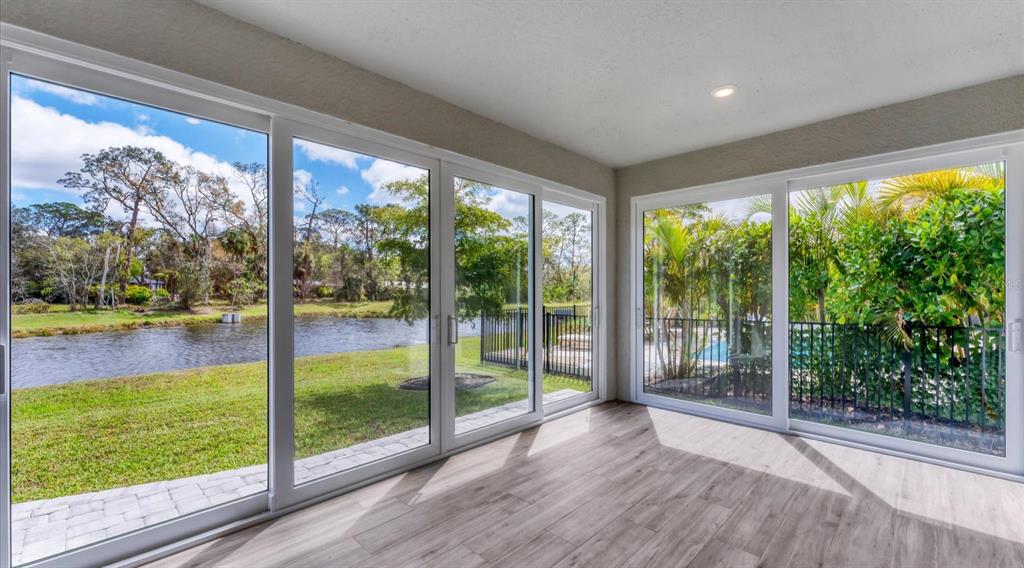 Better than new in prime location! safe and secure three-bedroom-plus-den lakefront home with ideal southeastern exposure, minimal power bills and hurricane ready. an automated gate welcomes you to a charming enclave of just 38 homes. inside, you will be captivated by the high ceilings, abundant natural light and open floor plan, all adorned by serene pond views. loaded with builder options including staggered oversized everest white porcelain tile flooring throughout, upgraded baths plus a chef’s kitchen with quartz countertops, upgraded soft-close cabinetry with trash pullout, wine rack enclosed refrigerator, bases with drawers and super lazy susan. post-construction upgrades elevate this home even further, including solar panels with an average power bill of $20 a month, enclosed expanded lanai with impact sliders, custom closet systems and an ev charger in garage. its prime location places you just a mile from world-renowned nathan benderson park, five minutes from utc mall, whole foods, trader joe’s, starbucks and interstate 75, and 15 minutes from downtown sarasota’s vibrant lifestyle with its beaches, restaurants, arts scene and entertainment. a fabulous florida lifestyle awaits you. five years young, block construction and above flood plain in zone x2538 FIREFLAG, SARASOTA, FL 34232