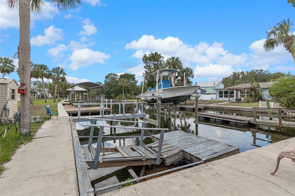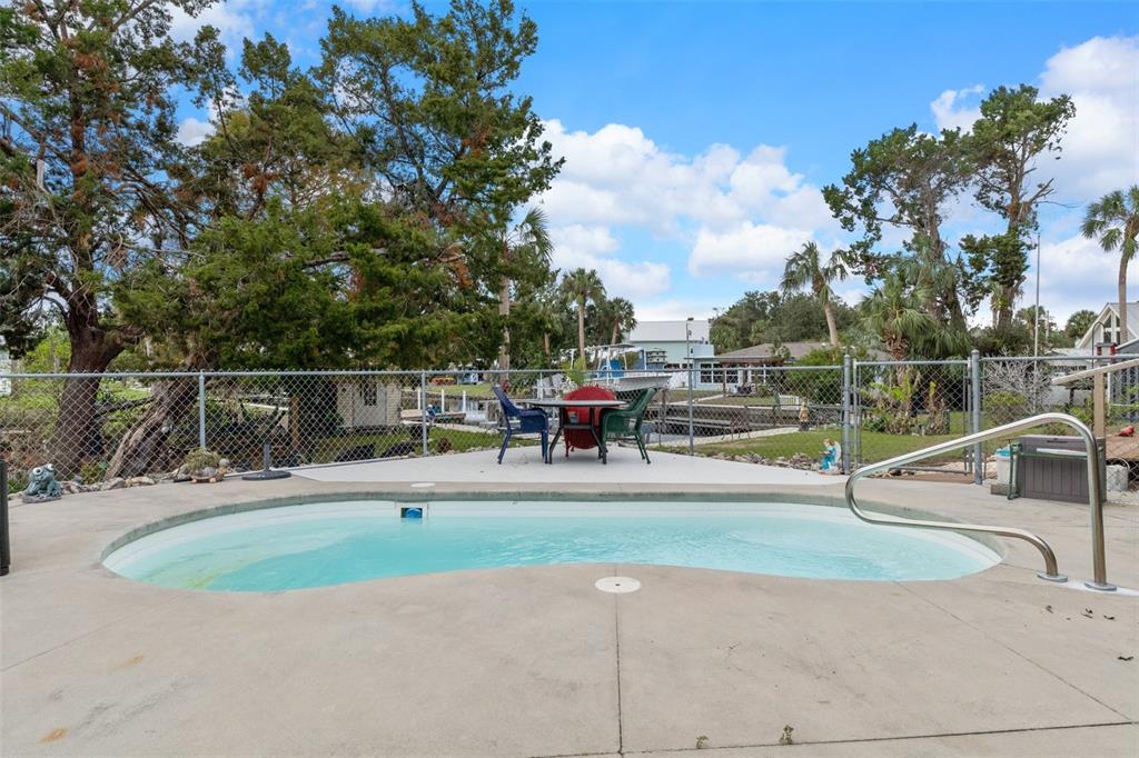 High and dry! with no steps! this canal waterfront home was built up so much in 2001 that helene didn't touch it. a unique 3 bedroom 2 bath home, with an enormous wall of windows sunroom, overlooking the pool and waterfront canal in woods n waters. this hoe comes with a boat lift and an 18x26 carport on a concrete slab, which has water and electricity. if you like to entertain...there is a separate building, by the water, with a full kitchen, overhang for shade and large patio. this kitchen has everything you would need to feed an army! the kitchen did feel the wrath of helene and is now under repair. there are 3 sheds on ths .70 acre lot, some with electricity. needless to say, plenty of storage comes with this home. the original creators of this home are now selling their dream, as they can no longer take care of it. you can tell, at one time, they did some major entertaining and now it needs a little tlc. a must see home with many possibilities.2542 N REGATTA, CRYSTAL RIVER, FL 34429