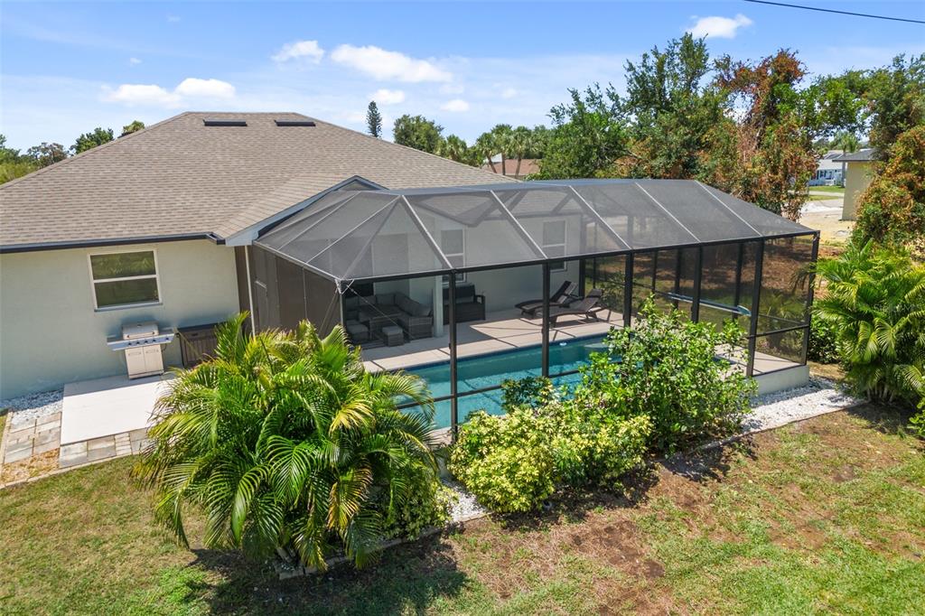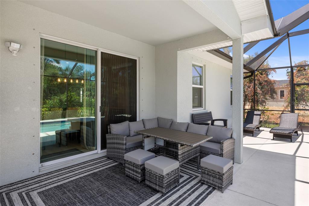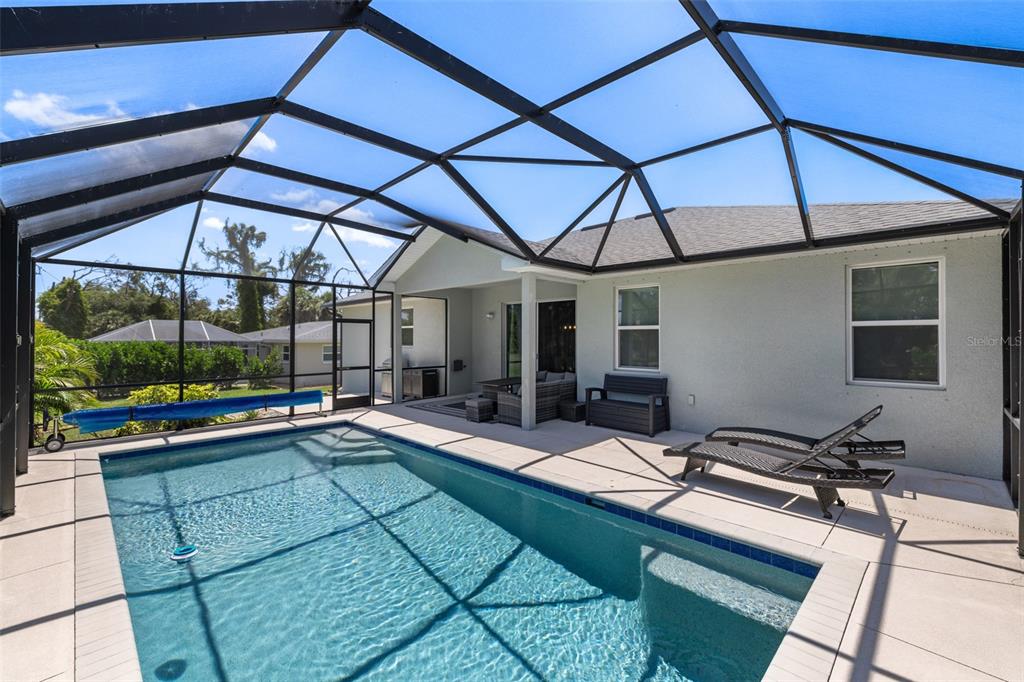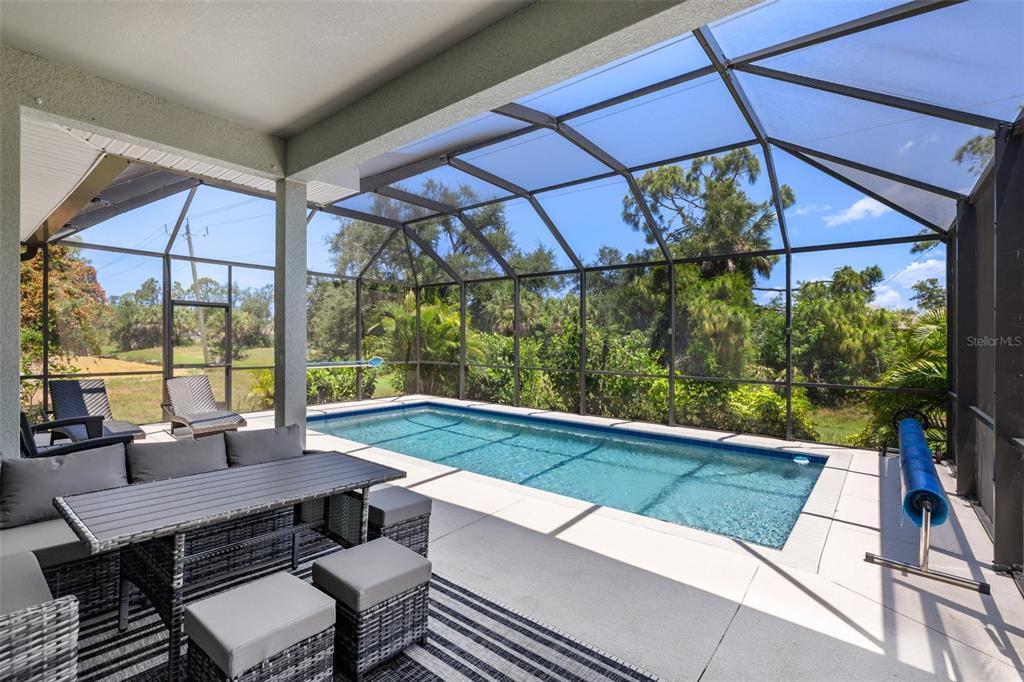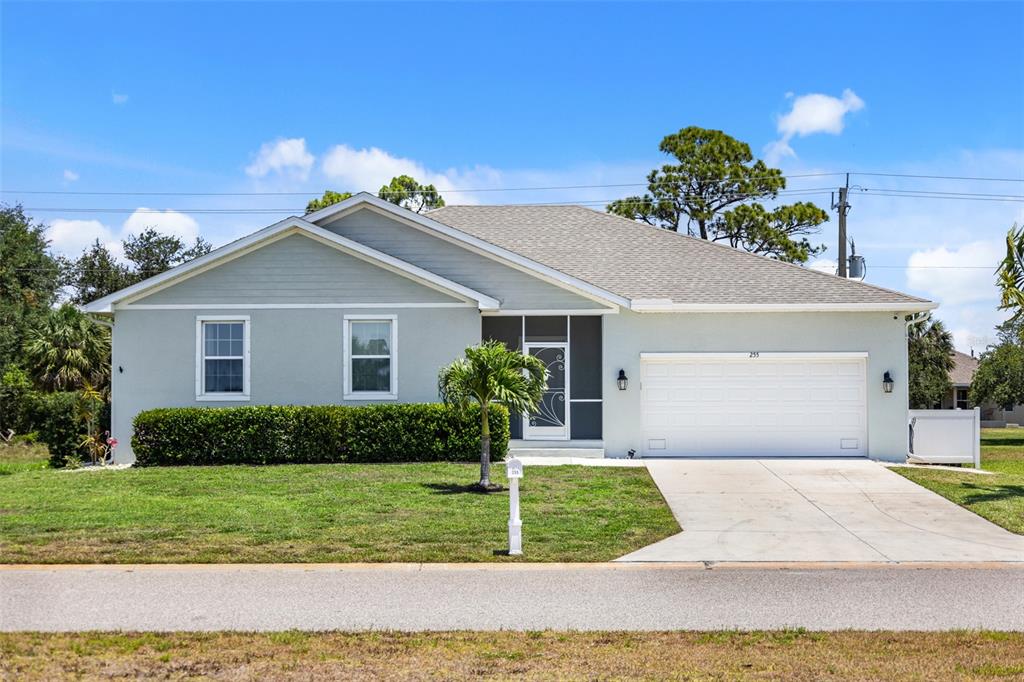 Welcome to this immaculate custom built 2019 home featuring four bedrooms, two bathrooms, and an oversized two-car garage. the screened entry provides a welcoming and covered space for guests, leading into an inviting living and dining area with impressive two-level ceilings. sliding glass doors open to the lanai, filling the space with natural light and enhancing the home’s open and airy feel. designed with both style and functionality in mind, the dining room features a built-in bar area with a wine refrigerator, perfect for entertaining. the oversized kitchen offers ample 42-inch raised wood cabinetry, granite countertops, and a large island/breakfast bar with additional storage. a subway tile backsplash adds a elegant touch, complementing the samsung smooth-top stove, samsung french door refrigerator, samsung microwave, and a 2023 ge dishwasher. adjacent to the kitchen, a spacious utility room provides even more storage with custom built-in cabinetry. the primary suite is a private retreat, featuring plush carpeting, a walk-in closet with built-in organizers, and an en-suite bathroom with a shower with a seat, dual granite vanities, a dedicated dressing area, and a private water closet. the additional three bedrooms are generously sized, each with ceiling fans, wall closets, and soft carpeting. the guest bathroom offers a tub/shower combination, a granite-topped vanity, and tiled flooring. step outside to a beautifully designed caged and electrically heated pebbletec pool, surrounded by brick coping and overlooking a lush greenbelt, providing a peaceful and private setting. an additional 12’x12’ concrete patio is perfect for a fire pit or outdoor grilling, making this backyard an ideal space for relaxation and entertaining. this home also offers hurricane shutters for all windows and doors, an irrigation system to maintain the beautifully landscaped yard, and underground utilities that contribute to the clean and well-maintained exterior. located in the sought-after rotonda west golf course community, this home is just minutes from local amenities, including a clubhouse, a large park, a playground, pristine beaches, fantastic shopping, top-rated dining, and world-class fishing. this stunning property combines elegance, comfort, and convenience—don’t miss the opportunity to make it yours.255 ANNAPOLIS, ROTONDA WEST, FL 33947