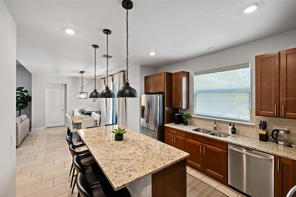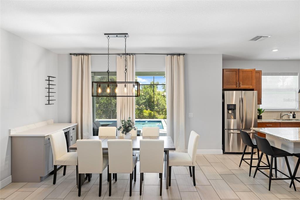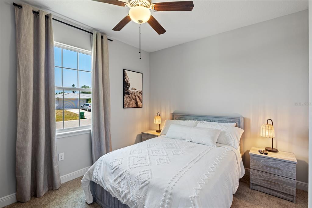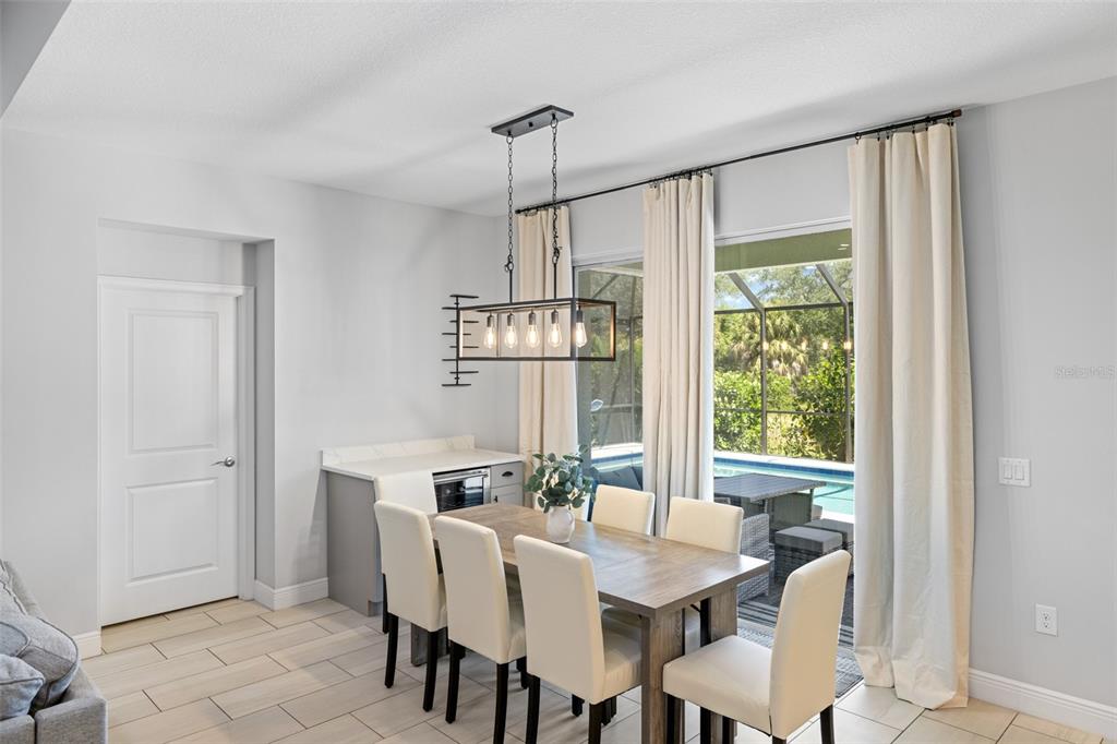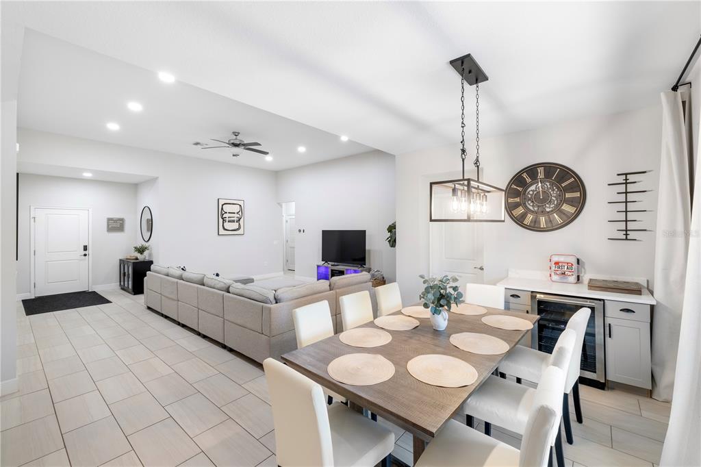 Welcome to this immaculate custom built 2019 home featuring four bedrooms, two bathrooms, and an oversized two-car garage. the screened entry provides a welcoming and covered space for guests, leading into an inviting living and dining area with impressive two-level ceilings. sliding glass doors open to the lanai, filling the space with natural light and enhancing the home’s open and airy feel. designed with both style and functionality in mind, the dining room features a built-in bar area with a wine refrigerator, perfect for entertaining. the oversized kitchen offers ample 42-inch raised wood cabinetry, granite countertops, and a large island/breakfast bar with additional storage. a subway tile backsplash adds a elegant touch, complementing the samsung smooth-top stove, samsung french door refrigerator, samsung microwave, and a 2023 ge dishwasher. adjacent to the kitchen, a spacious utility room provides even more storage with custom built-in cabinetry. the primary suite is a private retreat, featuring plush carpeting, a walk-in closet with built-in organizers, and an en-suite bathroom with a shower with a seat, dual granite vanities, a dedicated dressing area, and a private water closet. the additional three bedrooms are generously sized, each with ceiling fans, wall closets, and soft carpeting. the guest bathroom offers a tub/shower combination, a granite-topped vanity, and tiled flooring. step outside to a beautifully designed caged and electrically heated pebbletec pool, surrounded by brick coping and overlooking a lush greenbelt, providing a peaceful and private setting. an additional 12’x12’ concrete patio is perfect for a fire pit or outdoor grilling, making this backyard an ideal space for relaxation and entertaining. this home also offers hurricane shutters for all windows and doors, an irrigation system to maintain the beautifully landscaped yard, and underground utilities that contribute to the clean and well-maintained exterior. located in the sought-after rotonda west golf course community, this home is just minutes from local amenities, including a clubhouse, a large park, a playground, pristine beaches, fantastic shopping, top-rated dining, and world-class fishing. this stunning property combines elegance, comfort, and convenience—don’t miss the opportunity to make it yours.255 ANNAPOLIS, ROTONDA WEST, FL 33947