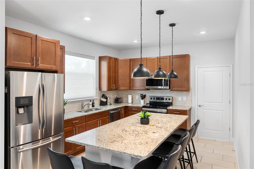 Split Bedroom Walk-In Closet(s)Ceiling Fan(s) High Ceilings Stone CountersExterior Features: