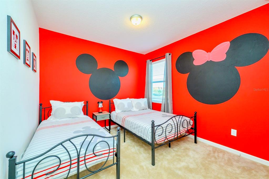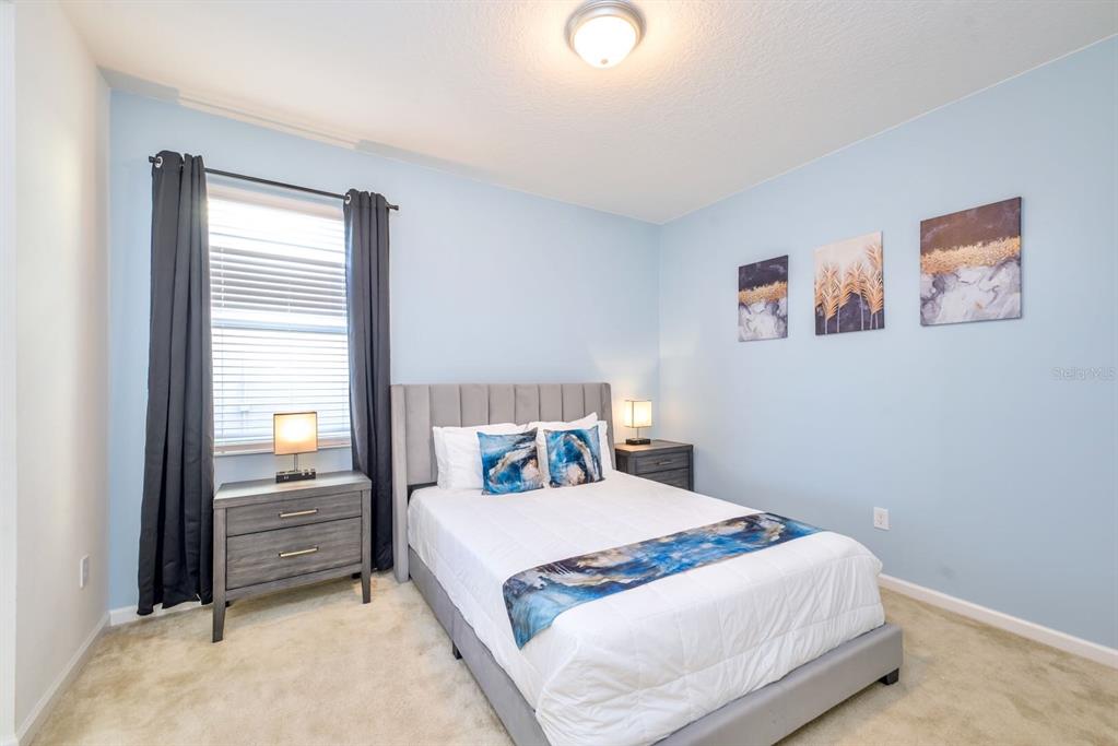 Welcome to the gated vacation home community of veranda palms, located just minutes from the entrance to walt disney world. this exceptional property is conveniently situated near major roadways including 192, 417, and i-4, providing easy access to all that central florida. enjoy close proximity to old town, celebration, an abundance of restaurants, shopping, and endless attractions. this fully furnished 8-bedroom, 7-bathroom pool home is an active and thriving short-term rental property. within eyeshot of the stunning clubhouse encompassing a resort-style pool, lounge seating, hot tub, splash zone, splash pad, and fitness center. enter through the front door into a spacious foyer, which features a utility closet equipped with a washer and dryer. to the left is the first of eight bedrooms, complete with the first of six en suite bathrooms. to the right is the garage, which has been converted into a fun game room. the heart of the home opens into a great room, where you'll find a modern kitchen boasting stainless steel appliances, solid wood cabinetry, granite countertops, a large island, and a breakfast bar. adjacent to the kitchen, the dining room and the cozy living room is perfect for relaxing after a day of adventures. sliding glass doors lead to the pool which overlooks a serene private pond and offers a covered patio ideal for entertaining.upstairs, the second primary suite is a true retreat, featuring a walk-in closet, a dual-sink vanity, a glass shower, and a private water closet. the remaining upstairs bedrooms have en suite bathrooms, complete with single vanities and shower/tub combinations. don’t miss this golden opportunity to own a spectacular property in veranda palms—whether as a lucrative vacation rental or your own home-away-from-home. furnitures and decoration items are not included in the price!2555 SHANTI, KISSIMMEE, FL 34746
