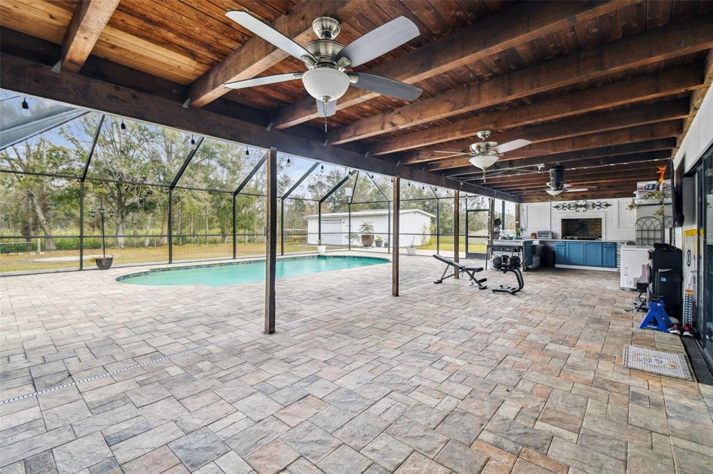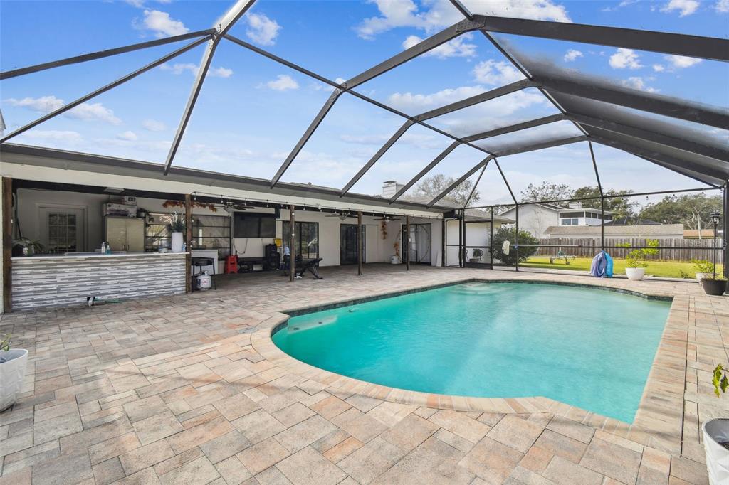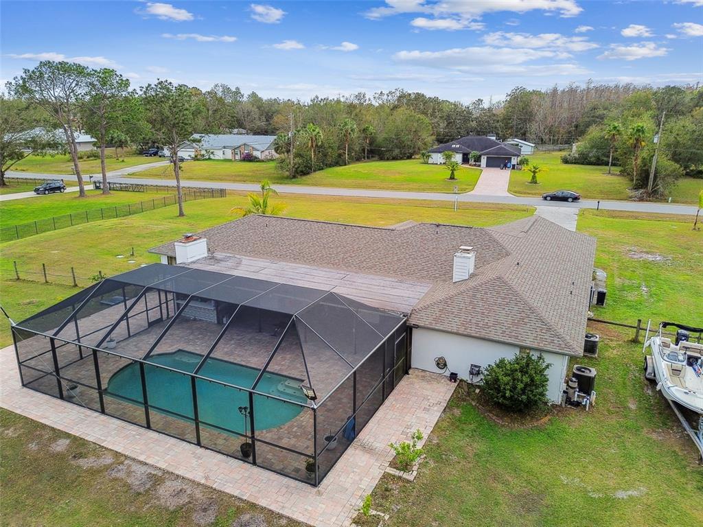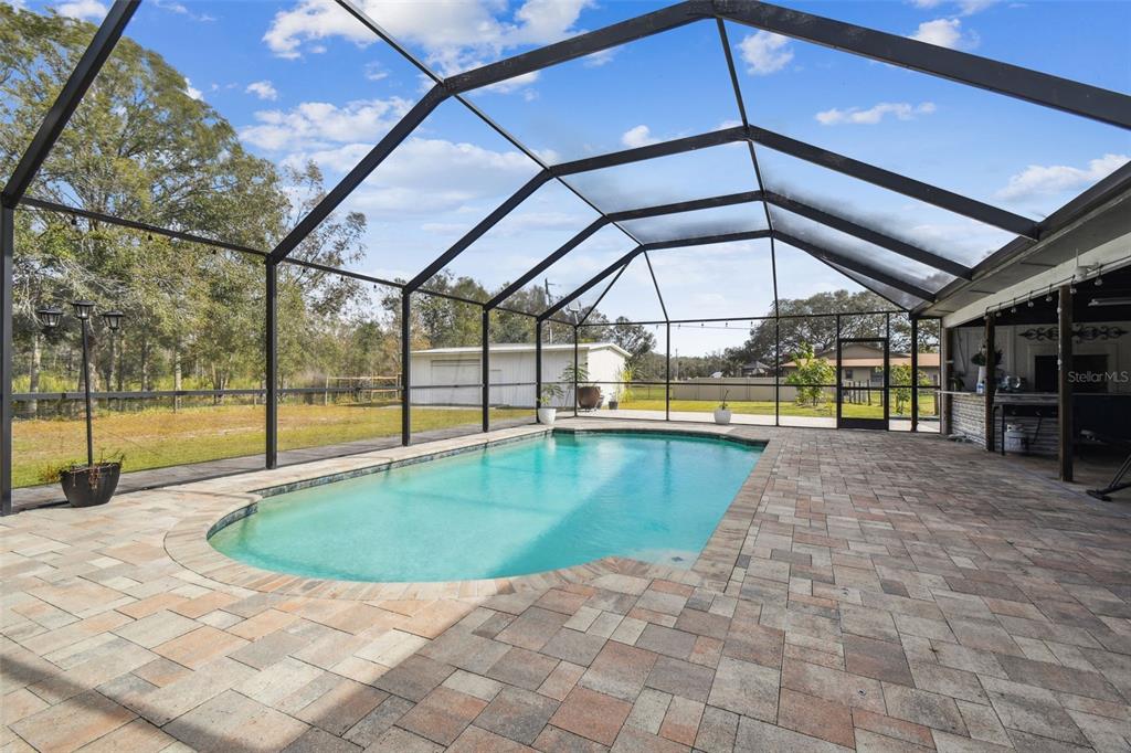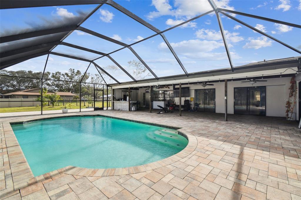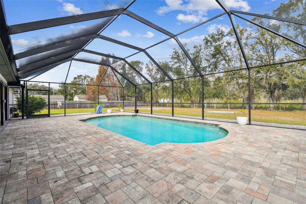 Discover the epitome of florida living on two waterfront acres between the outlets and wiregrass mall. this 3-bedroom plus den pool home offers the perfect blend of luxury and functionality. enjoy the expansive screened porch overlooking the 2018 heated saltwater pool and paver lanai - with an outdoor kitchen ideal for entertaining or simply relaxing in the florida sunshine. the fully fenced yard provides ample space for all your recreational toys, with room for a boat and rv. a massive 1,000 sq ft workshop with electricity and a garage door opening offers endless possibilities for hobbies or projects. luxurious interior: the main bathroom boasts a huge walk-in shower with multiple shower heads, while the 2.5 secondary baths have been beautifully remodeled with stone tile and walk-in showers. the spacious main bedroom features wood flooring and a walk-in closet, while the secondary bedrooms features new laminate flooring, large closets, and en-suite baths. the updated kitchen shines with granite countertops, freshly painted cabinets, and a gorgeous tile backsplash. a new roof, led lighting, water filtration system, and newer ac and ductwork ensure peace of mind. additional features: newer ac and ductwork (2020)new roof (2021)new led lighting and water filtration systempebble-tech pool finish with saltwater filtration and electric heater no hoa or cdd don't miss this opportunity to own a waterfront paradise with no hoa or cdd! schedule your appointment today!25555 OAKS, LAND O LAKES, FL 34639