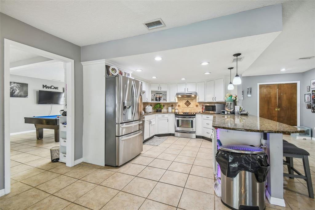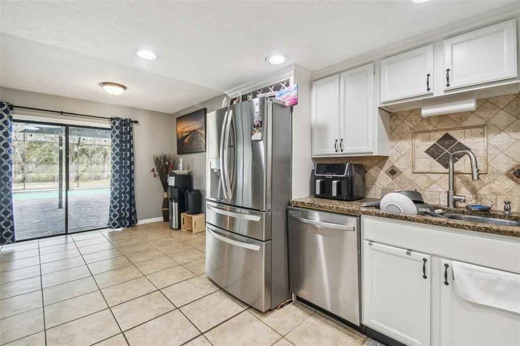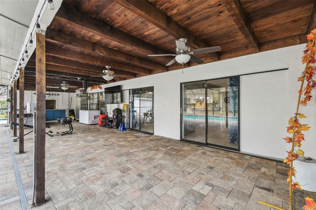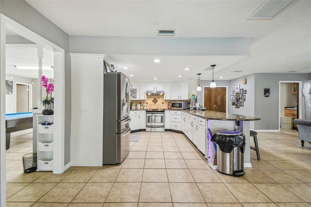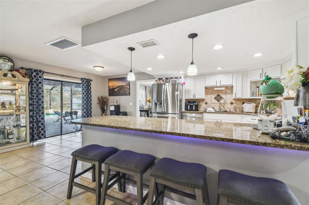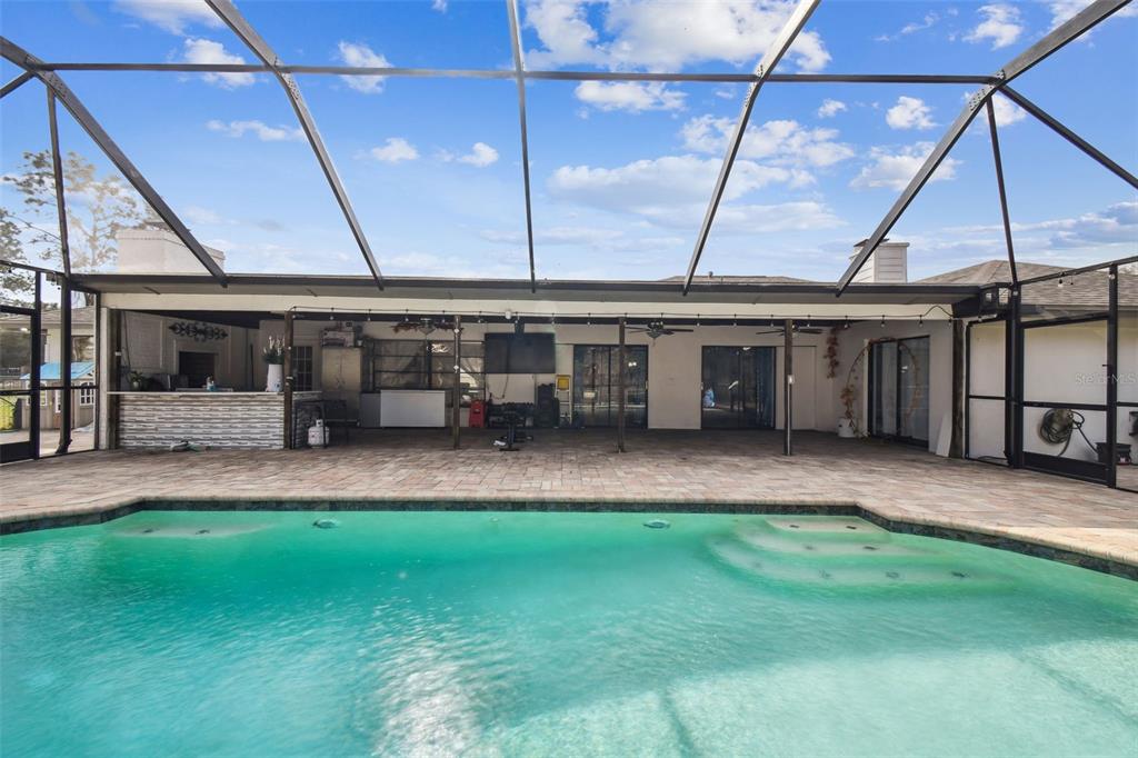 Discover the epitome of florida living on two waterfront acres between the outlets and wiregrass mall. this 3-bedroom plus den pool home offers the perfect blend of luxury and functionality. enjoy the expansive screened porch overlooking the 2018 heated saltwater pool and paver lanai - with an outdoor kitchen ideal for entertaining or simply relaxing in the florida sunshine. the fully fenced yard provides ample space for all your recreational toys, with room for a boat and rv. a massive 1,000 sq ft workshop with electricity and a garage door opening offers endless possibilities for hobbies or projects. luxurious interior: the main bathroom boasts a huge walk-in shower with multiple shower heads, while the 2.5 secondary baths have been beautifully remodeled with stone tile and walk-in showers. the spacious main bedroom features wood flooring and a walk-in closet, while the secondary bedrooms features new laminate flooring, large closets, and en-suite baths. the updated kitchen shines with granite countertops, freshly painted cabinets, and a gorgeous tile backsplash. a new roof, led lighting, water filtration system, and newer ac and ductwork ensure peace of mind. additional features: newer ac and ductwork (2020)new roof (2021)new led lighting and water filtration systempebble-tech pool finish with saltwater filtration and electric heater no hoa or cdd don't miss this opportunity to own a waterfront paradise with no hoa or cdd! schedule your appointment today!25555 OAKS, LAND O LAKES, FL 34639