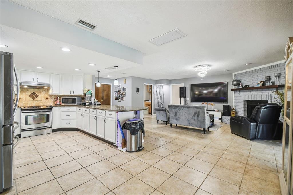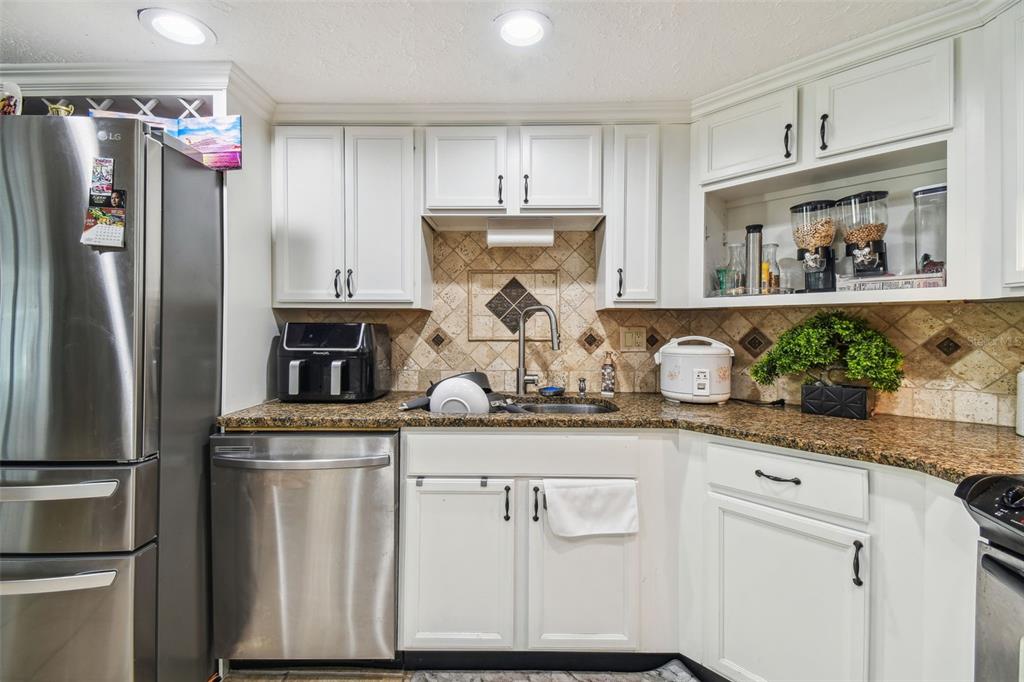 Split Bedroom Walk-In Closet(s) High Ceilings Stone Counters Window TreatmentsCrown Molding Kitchen/Family Room ComboExterior Features: