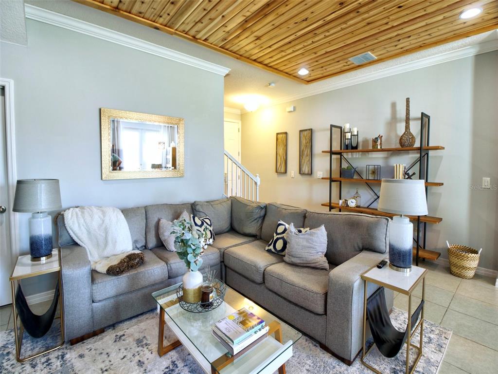 Don’t miss the chance to make this beautiful, like new townhouse your new home in an established, tranquil, friendly neighborhood close to all the that you need, with premier shopping, dining and entertainment! conveniently located near major highways, including fl-528 and fl-417, ideal for commutes to employment and orlando international airport, also sunrail station is a short drive away! enjoy the convenience of a smart (liftmaster myq) garage door opener. step into a screened and covered entryway that can hold a bench, shoe storage, umbrella stand, coat rack, plants or anything you'd like to enhance this cute space. once inside, you'll be greeted by an open-concept living area with eye catching wooden accent ceilings and natural light. the kitchen has ample storage with plenty of cabinetry, a convenient breakfast bar and space for formal dining. this home combines modern luxury with great functionality. french doors doors lead to your patio area where you can relax with a morning coffee or evening beverage. a drop zone area directly from the garage to home entrance leads to a convenient half bathroom too. downstairs features ceramic tile flooring for easy cleaning and maintenance. as you go up the attractive split wooden staircase you'll find the 3 bedrooms and convenient laundry room. the primary suite offers a light airy feel with generous walk in closet and a large ensuite bathroom with dual vanity and separate shower. the other 2 bedrooms can be used as flex space, office, or room for family and guests.Townhouse 3 bedrooms - SAWGRASS LNDGS for Sale