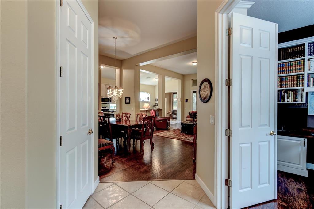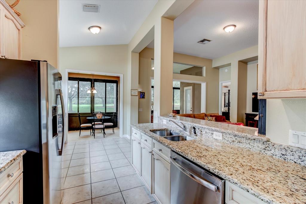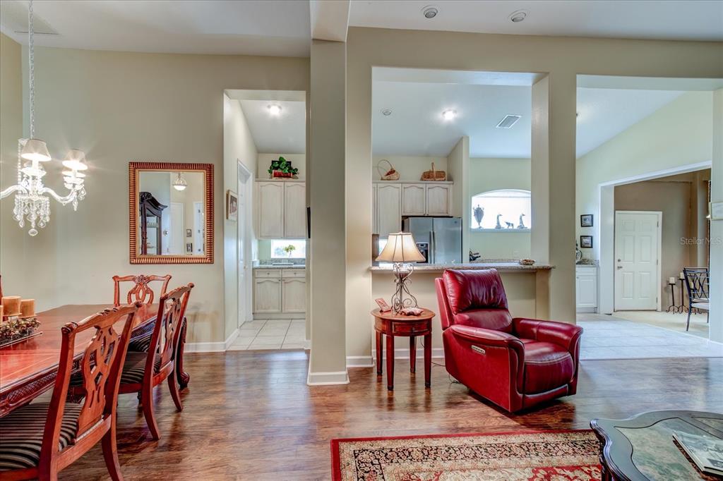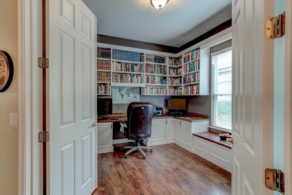 Welcome to lake county, florida, the mission resort and club. in howey in the hills, florida. the lovely las colinas neighborhood lies within the golf resort and amongst two, yes two, championship golf courses, the el champion and las colinas golf courses. restaurants, pro shop, meeting areas and everything you need for an active lifestyle, featuring an amazing selection of tennis and pickleball courts, a completely equipped gym, the beautiful community pool, a spa (appointments are required) and all within the convenience of walking or driving, yes even your golf cart in and around the resort. located near one of the highest points in florida, with rolling hills and bikeways, and away from the hustle and bustle of the big city. just 45 minutes to the orlando international airport, and theme park destinations. talk about convenience! this beautiful and elegant golf course villa home was built in 2001 with a maintenance free home and an active lifestyle in mind. this 1,942 square foot golf villa on almost a 1/2 acre and next to the fairway of the 10th hole of las colinas course. plenty of room on this property to build your own custom pool complete with cage if you so desired. this single-story home/villa , offers a blend of comfort, with an open floor plan and a pleasing functionality. the welcoming entrance sets the tone for the interior. flowing floor plan. light and bright with window and pillar accents, the living area boasts large windows that flood the space with natural light, complemented by comfortable seating and entertainment options. the kitchen is modern with ample cabinet space and a gally kitchen with easy to access all of the updated appliances, dishwasher, microwave, gas stove, refrigerator and all displayed with the gorgeous granite countertops. a unique arched display niche could serve as a coffee bar and/or displaying and storing your lovely niche knacks! the standout feature in this lovely home is the double office, library, with wow, double door entry, built-in bookshelves, under counter cabinets and a window seat with storage, perfect for the home workspace. the primary bedroom, spanning 190 square feet, includes an en-suite bathroom, double closets with a double vanity and walk-in shower. off the kitchen is the laundry room with pantry, more storage and entry to the two car garage. storage shelving lines the garage to store your extra stuff! throughout the home, beautiful laminate wood style flooring adds to the overall aesthetic, creating a inviting atmosphere in this well-designed florida residence. social or golf membership is a requirement and info is available.25921 SAN RAFAEL, HOWEY IN THE HILLS, FL 34737