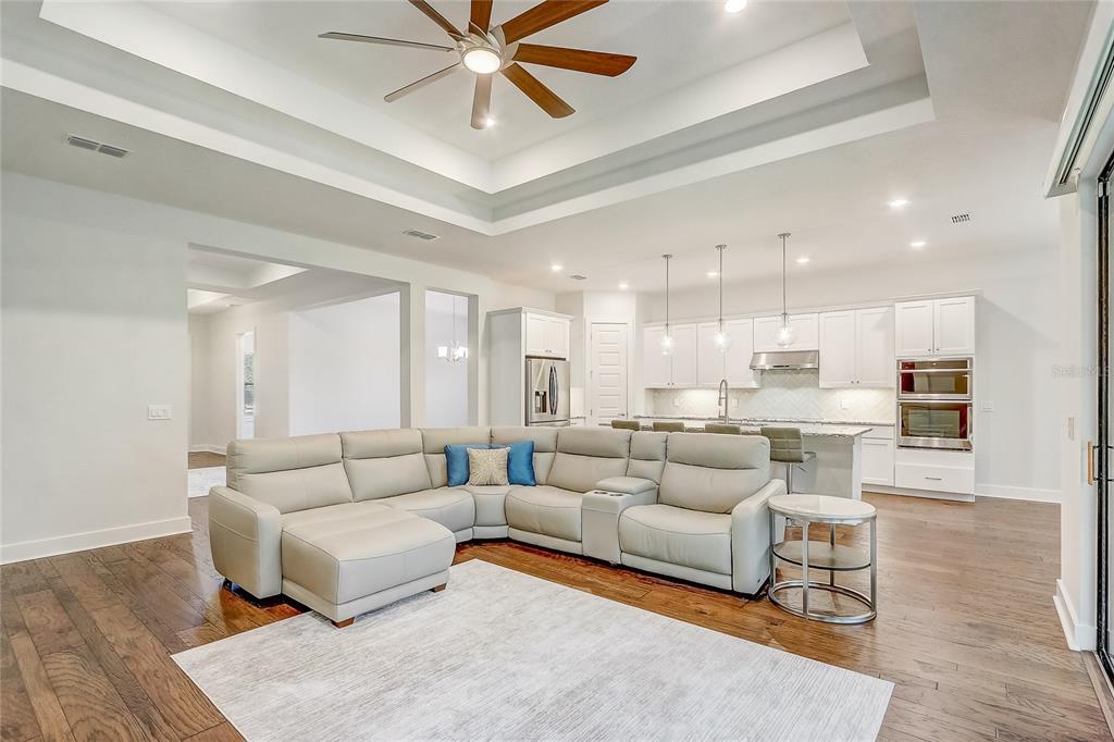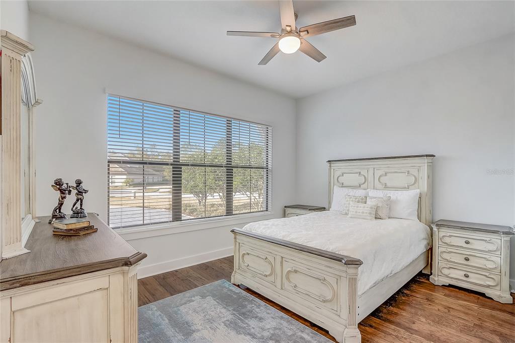 One or more photo(s) has been virtually staged. luxury living in red tail – 3-year-new custom home in a gated golf community... nestled in the sought-after red tail (heathrow country estates) community, this stunning gated golf luxury home is immediately available and offers an elegant blend of modern design and premium finishes/upgrades throughout. upon entry, a private en-suite bedroom provides the perfect guest or in-law space. on the opposite side, you'll find an additional bedroom and a private bonus room, ideal for a flex space, home office, or extra bedroom. the heart of the home boasts an open-concept design, featuring a formal dining area, a gourmet kitchen, and a spacious living room with an electric fireplace (offering optional heat and color-changing features). sliding glass doors lead to the rear patio, creating seamless indoor-outdoor living. the primary suite is a serene retreat with a spa-like bath and designer finishes. luxury details include kitchen finishes, engineered hardwood floors, premium tile in wet areas, and an interior laundry room with a sink. the side-loaded 3-car garage with a 2-bay door provides ample storage with built-in racks. exterior highlights include a brick elevation, a tile roof, and an oversized cul-de-sac lot with an extended driveway. the red tail homeowners association (hoa) offers an exceptional array of luxury amenities designed to enhance the community’s resort-style living experience: championship golf course – a premier 18-hole golf course with pristine fairways, challenging play, and breathtaking views. elegant clubhouse – a beautifully designed clubhouse featuring a full-service bar, upscale restaurant, and an expansive veranda, perfect for dining and socializing with friends and neighbors. tennis courts – enjoy well-maintained tennis courts, providing a great opportunity for friendly matches or competitive play. state-of-the-art fitness center – a fully equipped gym with modern workout machines, free weights, and training areas to help residents stay active and healthy. resort style swimming pool – a sparkling pool with lounge seating, offering a peaceful place to relax or take a refreshing dip. scenic walking & biking trails – beautifully landscaped paths throughout the community, perfect for morning walks, jogging, or biking while taking in the serene surroundings. gated security & privacy – a 24/7 gated entrance ensures peace of mind with added security and privacy for all residents. easy access to wekiva parkway, downtown orlando, winter park, mount dora, airports, and florida’s world-famous theme parks and beaches, red tail offers the perfect blend of tranquility, exclusivity, and convenience. located in one of lake county's premier golf communities, this exceptional home combines privacy, luxury, and convenience—this is a must see to appreciate.25974 HIGH HAMPTON, SORRENTO, FL 32776