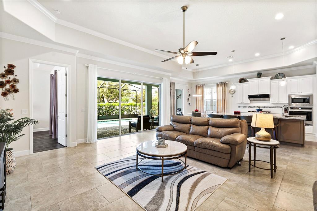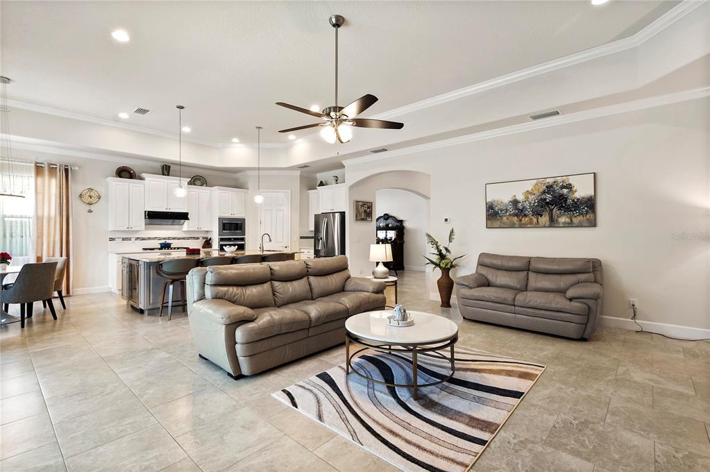 Split Bedroom Walk-In Closet(s) Eating Space In Kitchen High Ceilings Stone Counters Open Floorplan Window TreatmentsCrown Molding Tray Ceiling(s)Exterior Features: