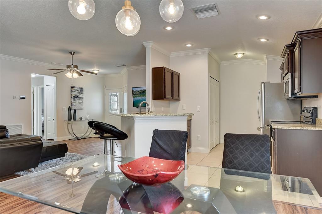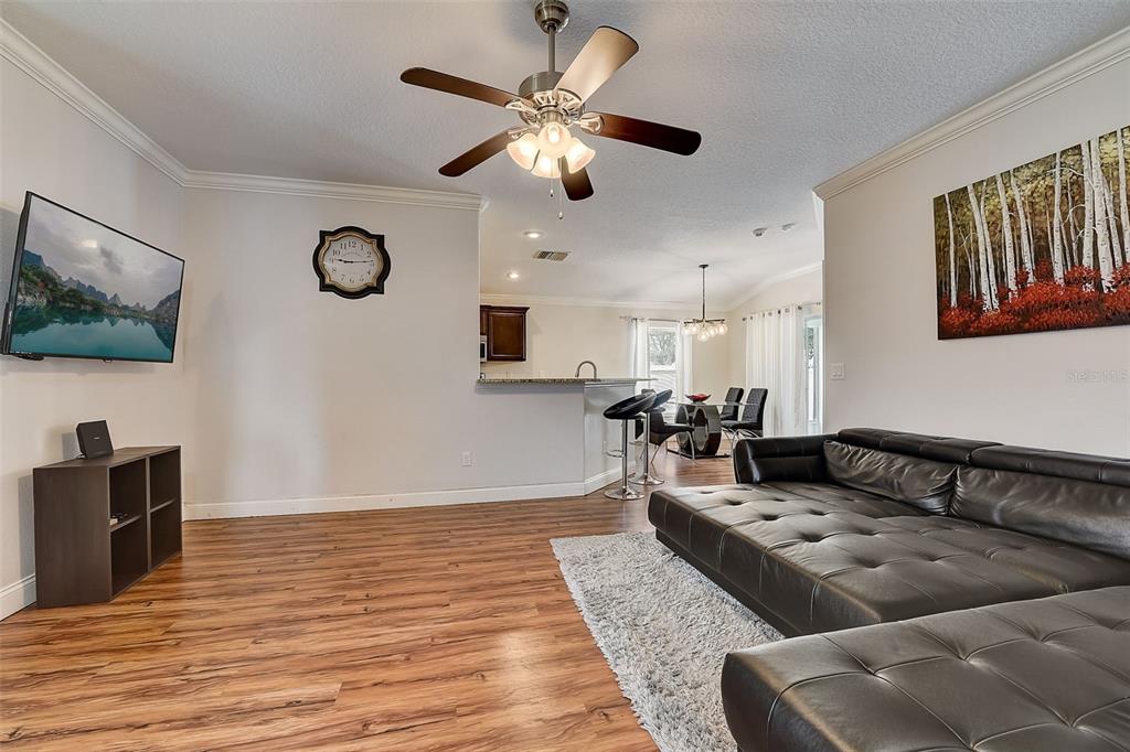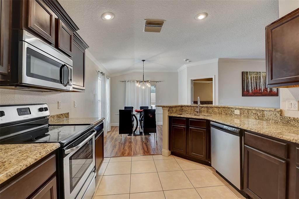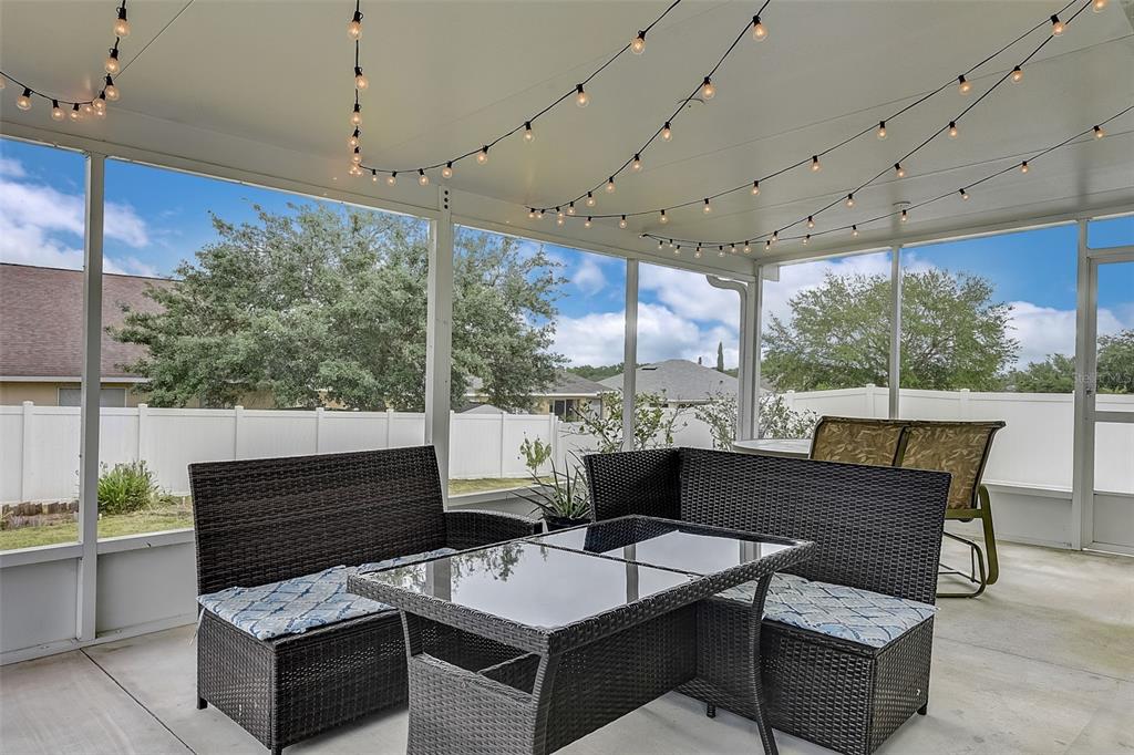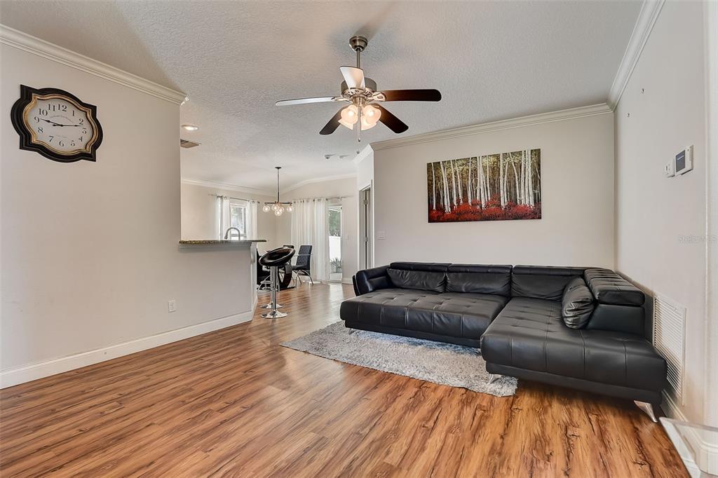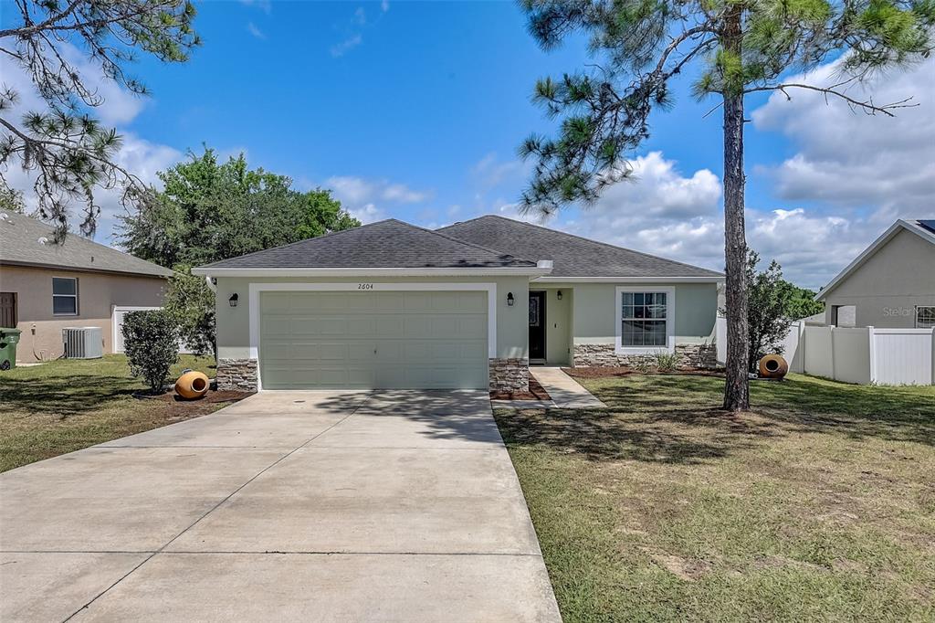 Welcome to your dream home! this meticulously maintained 3-bedroom, 2-bathroom gem offers the perfect blend of comfort, style, and functionality. as you step inside, you're greeted by an inviting ambiance highlighted by the sleek laminate flooring that flows seamlessly through the dining room and living room combo. the heart of the home, the kitchen, boasts elegant granite countertops, complemented by rich espresso cabinets and stainless-steel appliances. crown molding adorns the living space, adding a touch of sophistication and charm. the large primary bedroom features a large walk-in closet, perfect for all your storage needs, while the trey ceiling creates an airy and bright atmosphere. the appeal continues outdoors, where a fenced yard ensures privacy, ideal for both relaxation and entertaining. step onto the expansive screened lanai and indulge in your morning coffee or al fresco dining, surrounded by lush greenery and the tranquil ambiance of your own private oasis. fresh new exterior paint brings out the beauty of the home's stone accents, enhancing its curb appeal and charm. with a 2-car garage providing ample parking and storage space, this home truly offers the complete package for modern living. within a close proximity to shopping, eateries, chain of lakes, local pubs, hospitals, and major highways. under 5-minute walk to the famous sleepy hollow sports complex, where you will find soccer, football, softball and baseball fields, a playground, concession stands and covered picnic area and only an hour to the orlando airport and disney world. schedule your showing today!2604 HOLW, LEESBURG, FL 34748