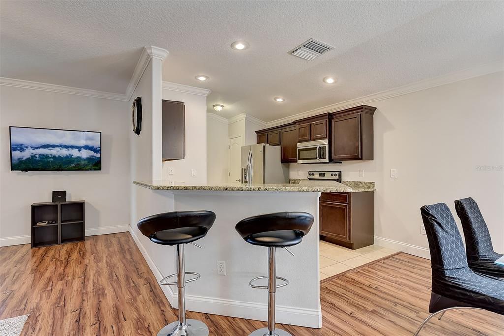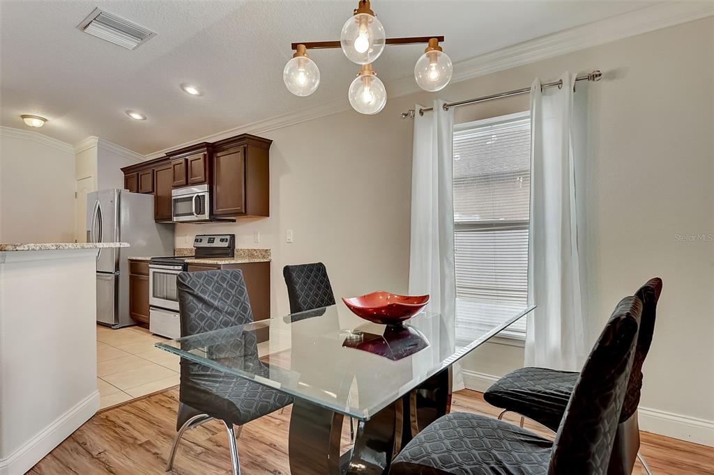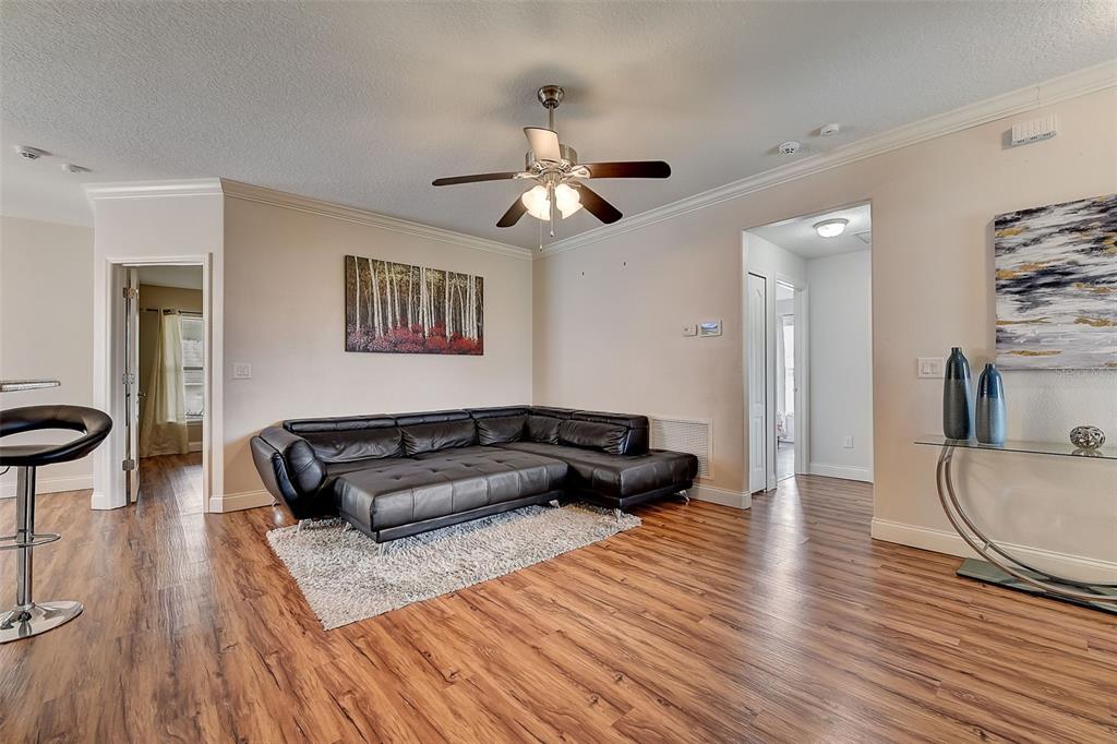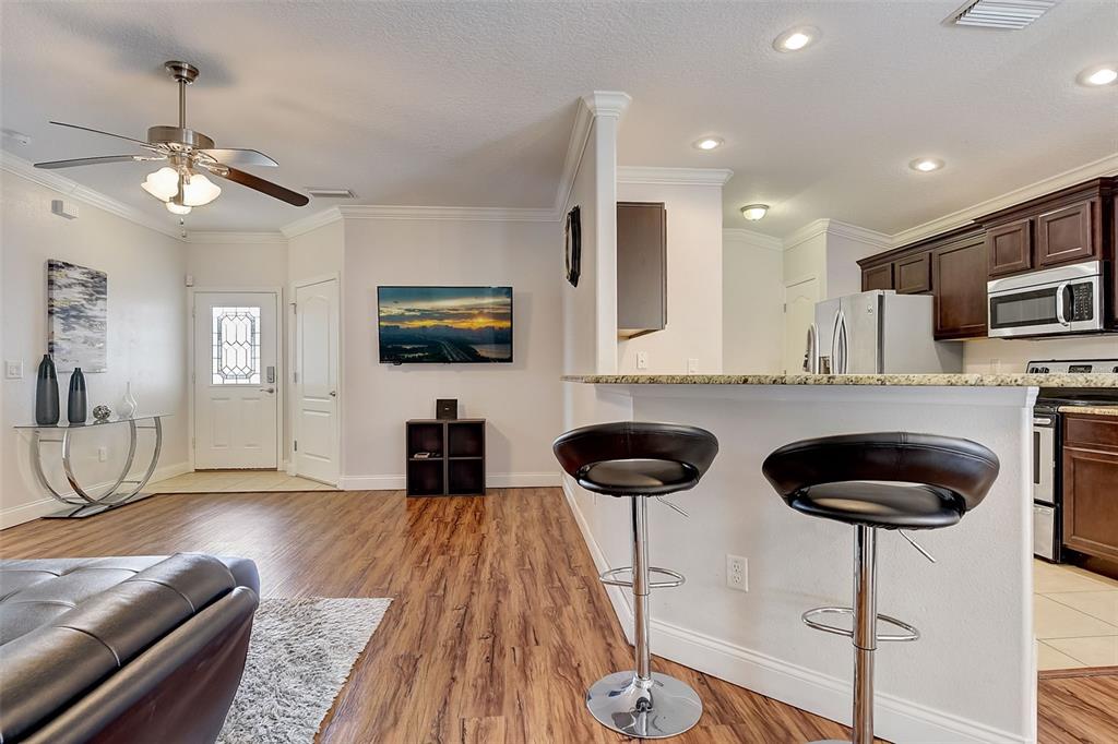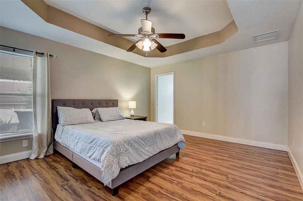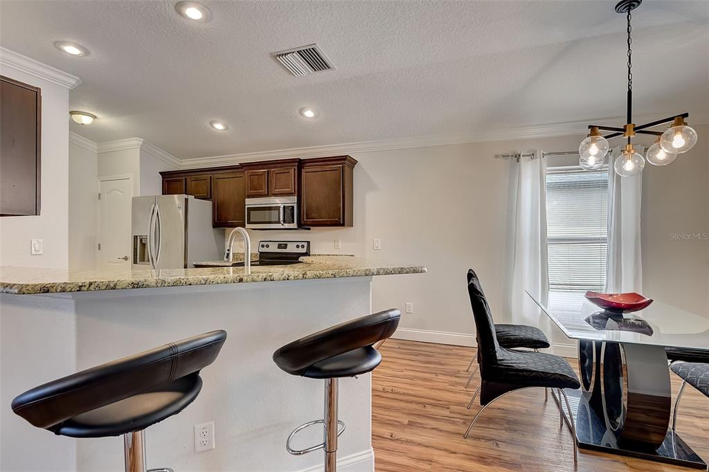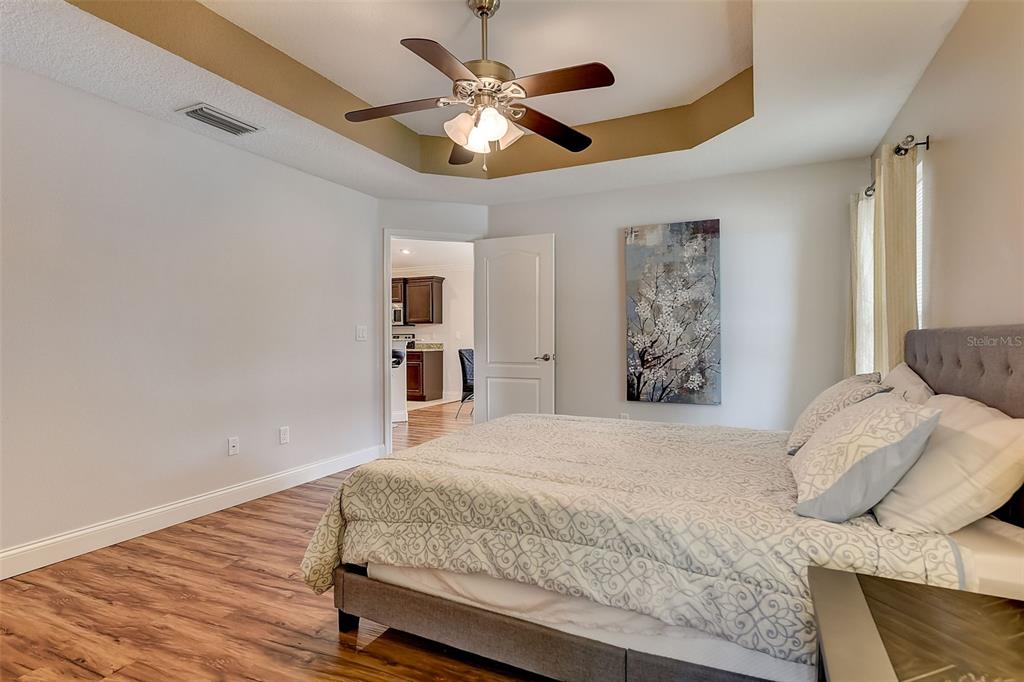 Welcome to your dream home! this meticulously maintained 3-bedroom, 2-bathroom gem offers the perfect blend of comfort, style, and functionality. as you step inside, you're greeted by an inviting ambiance highlighted by the sleek laminate flooring that flows seamlessly through the dining room and living room combo. the heart of the home, the kitchen, boasts elegant granite countertops, complemented by rich espresso cabinets and stainless-steel appliances. crown molding adorns the living space, adding a touch of sophistication and charm. the large primary bedroom features a large walk-in closet, perfect for all your storage needs, while the trey ceiling creates an airy and bright atmosphere. the appeal continues outdoors, where a fenced yard ensures privacy, ideal for both relaxation and entertaining. step onto the expansive screened lanai and indulge in your morning coffee or al fresco dining, surrounded by lush greenery and the tranquil ambiance of your own private oasis. fresh new exterior paint brings out the beauty of the home's stone accents, enhancing its curb appeal and charm. with a 2-car garage providing ample parking and storage space, this home truly offers the complete package for modern living. within a close proximity to shopping, eateries, chain of lakes, local pubs, hospitals, and major highways. under 5-minute walk to the famous sleepy hollow sports complex, where you will find soccer, football, softball and baseball fields, a playground, concession stands and covered picnic area and only an hour to the orlando airport and disney world. schedule your showing today!2604 HOLW, LEESBURG, FL 34748