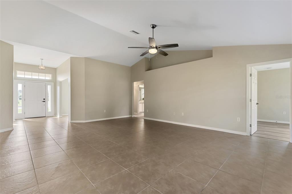 Stunning 4-bedroom home located on a cul-de-sac street in the highly sought-after deep creek community. this home features many updates including a new roof (2023), new ac (2023), freshly painted inside and out (2023), new fans and lighting throughout, new luxury water and scratch resistant laminate flooring in bedrooms, and much more. as you enter you are greeted by a formal dining area and formal living room (can be used as office/playroom/5th bedroom) along with high ceilings, open floor plan, and lots of natural light. the kitchen overlooks the spacious family room and breakfast nook. the kitchen features stainless-steel appliances (new refrigerator, stove and dishwasher), plenty of cabinets, and a pantry. retreat to the large master bedroom with an ensuite bathroom with double vanity, separate shower, a soaking tub, and his and hers walk-in closets. three additional bedrooms are located on the opposite side of the house. outside you will find an oversized lanai overlooking the spacious and private backyard with plenty of room for a pool. deep creek is a deed-restricted community with a low hoa fee and short drive to shopping, restaurants, tennis, golf, playground, and gorgeous gulf beaches. flood zone x (flood insurance not required)!!26052 SALONIKA, PUNTA GORDA, FL 33983