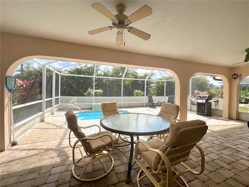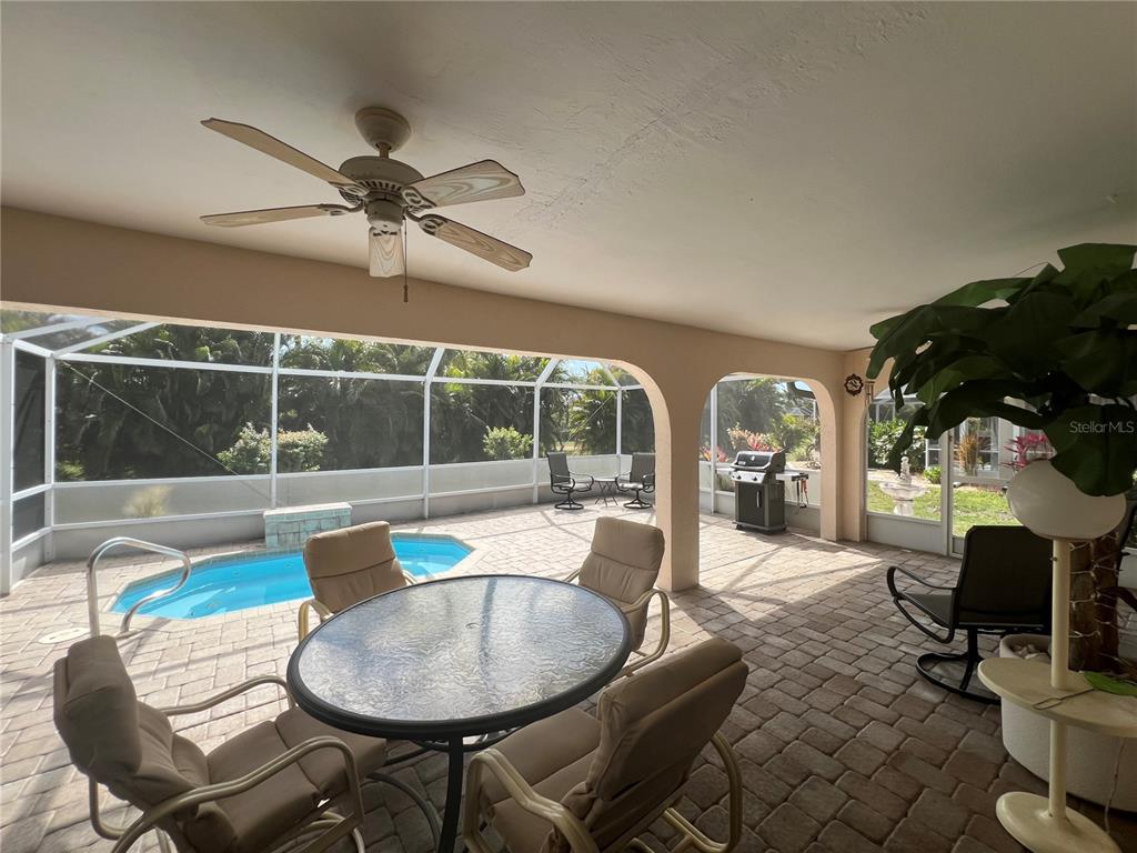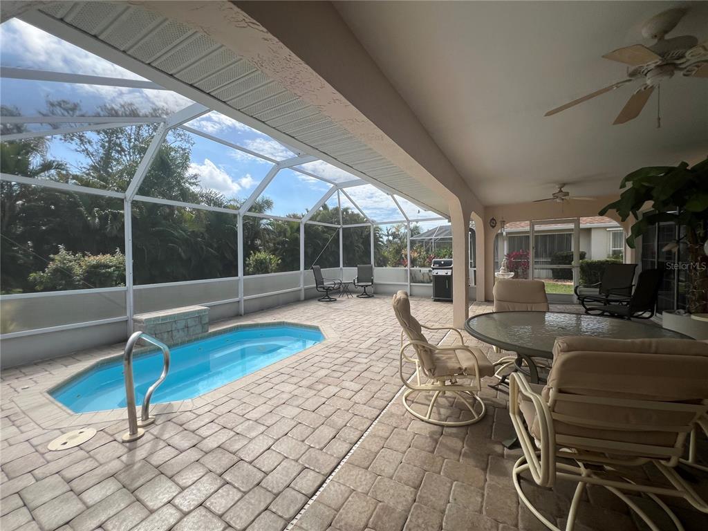 This meticulously maintained custom-built rockwell home offers both elegance and privacy. step through the double doors and take in the open living space, seamlessly extending to a spacious screened-in lanai and hot tub area. surrounded by lush landscaping, palm trees, and flowering shrubs, this outdoor retreat ensures complete seclusion. soaring 12-foot floor-to-ceiling windows with sliding doors open up to a six-foot entryway, seamlessly blending indoor and outdoor living. the south-facing backyard provides all-day sunshine, while the covered lanai with a ceiling fan offers a shady retreat. the in-ground fiberglass spa is perfect for cooling off on warm days or unwinding in heated comfort during the evening. a stunning coral-faced fireplace adds warmth and charm on cooler nights. the extra-deep lot includes a maintained easement between homes, managed by the homeowners association. the master suite features patio doors leading to the lanai and an ensuite with dual sinks. on the opposite side of the home, the guest bedrooms share a bathroom with direct lanai access. a newer wind-mitigated roof enhances security and reduces insurance costs. nestled in a quiet cul-de-sac in deep creek, this home offers quick access to i-75, with a golf course, tennis courts, and playground just around the corner. shopping is a short five-minute drive away, and the neighborhood’s wide sidewalks and residential-only traffic make it ideal for walking and cycling.26137 DUNEDIN CT, PUNTA GORDA, FL 33983