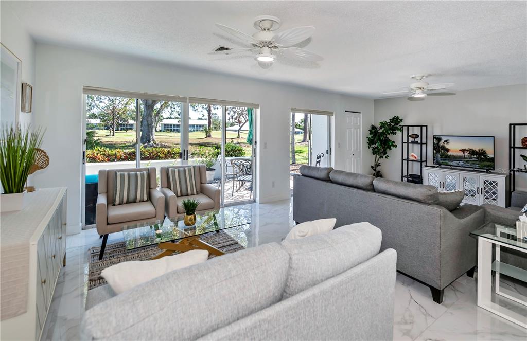 Your dream home is now here and can be yours! fully turn key! this exquisite villa home has been completely remodeled and comes fully furnished and ready to move in. all it needs is you! the villa features two bedrooms, of which one is a second (guest) bedroom with a large closet and view of the back lanai. the primary bedroom features a king bed set, en-suite bathroom with two separate sink areas, a large shower, and beautiful tile flooring. the newly remodeled spacious kitchen features, beautiful new shaker style soft close cabinets, new granite counter tops. both bathrooms in the villa have the same new matching granite counter tops and soft close shaker style cabinets. there are new light fixtures and ceiling fans throughout the home. unique to this home is a beautiful sun room just off the kitchen area with privacy blinds. great for plants or make it an office. the outside includes two patios, of which the patio off both bedrooms is private and perfect place to enjoy your morning coffee. the back patio has a view of the 5th fairway and 6th hole of the bobcat golf course. just off the private patio is a spacious laundry room which includes a washer, dryer, and sink with new cabinet. it is also great for storage of bicycles, gardening tools, or golf clubs. the villa has a brand-new roof as of january 2024. comes with new hot water heater, and central heat and air. also included is your cable tv as part of the hoa fees. just a short walk down the street, there is a heated pool with its own clubhouse for the homeowners on cerromar way street! the plantation golf and country club also offers a private country club setting with individual membership (optional). membership (if you choose) offers "main club house, large pool, hot tub, snack bar, exercise room, and bucce courts, tennis and pickle ball courts. the main clubhouse features fine dining, lounge bar, beautiful views of the golf course while dining inside or out. the library can be reserved for private parties as well. optional membership features two beautiful golf courses, "bobcat" and "panther". both courses host the lpga qualifying rounds once a year.Villa 2 bedrooms - AUGUSTA VILLAS AT PLANTATION for Sale