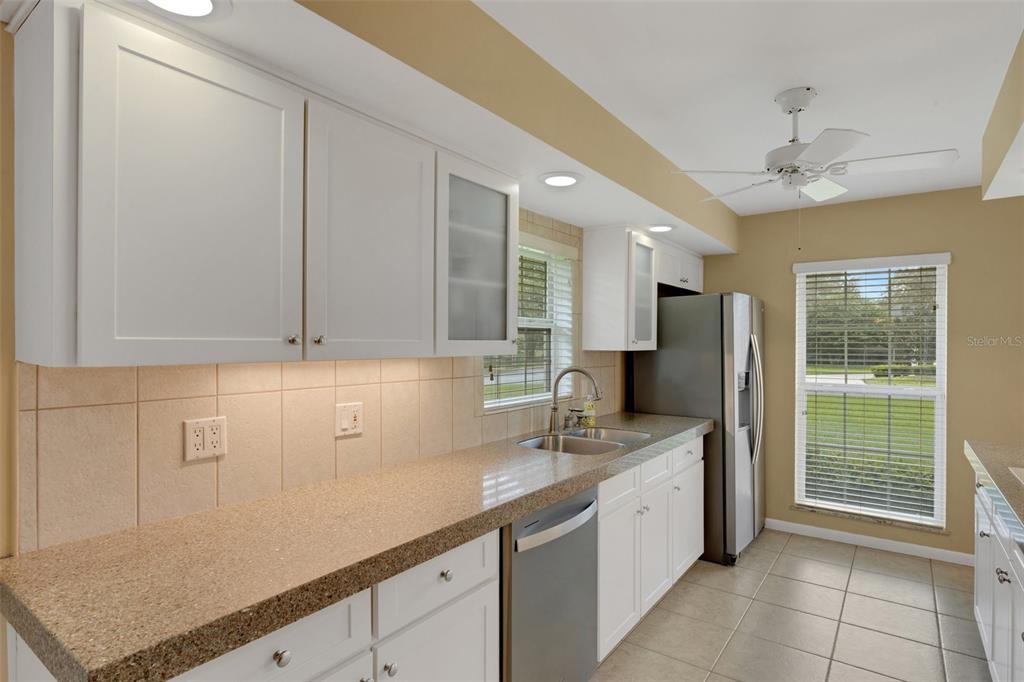 Ceiling Fan(s) Eating Space In Kitchen High Ceilings Open Floorplan Solid Surface Counters Solid Wood Cabinets Skylight(s) Chair RailExterior Features:
