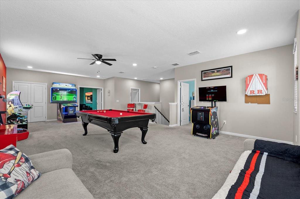 Stacked 3 car garage! this nearly new 5-bedroom, 4.5-bath home in red ember offers an east facing front door and the perfect blend of luxury, function, and fun. built in 2023 and thoughtfully upgraded throughout, every bedroom features a walk-in closet—including two in the oversized primary suite, which also boasts a custom accent wall and spa-like en suite bath. downstairs, tile floors stretch through the main living spaces, where a cozy fireplace sets the tone for movie nights and gatherings. the gourmet kitchen includes a pot filler above the range, an oversized walk-in pantry, reverse osmosis water filtration, and easy access to the formal dining room via a butler-style passthrough. a dedicated office is located near the front entry, offering a quiet workspace away from the main living areas. upstairs? it’s a dream. a massive game zone loft hosts a pool table and arcade-style fun, while a bonus room has been transformed into the ultimate movie theater. enjoy smart upgrades like solar panels and a tesla powerwall + solar, plantation shutters and custom blinds, ceiling fans in every room, a water softener system, overhead garage storage, and a spacious three-car garage. red ember is a gated community just steps from hagerty high school and close to top-rated dining and shopping in oviedo. this home truly has it all - space, style, sustainability, and a location that can’t be beat.2628 CEDAR SHAKE, OVIEDO, FL 32765