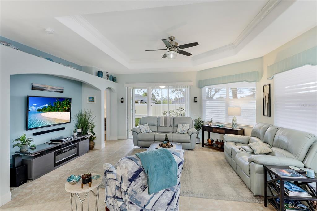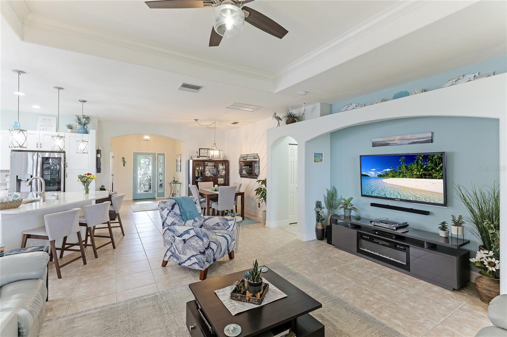 Split BedroomCeiling Fan(s) Stone Counters Thermostat Open FloorplanCrown Molding Kitchen/Family Room Combo Tray Ceiling(s)Exterior Features: