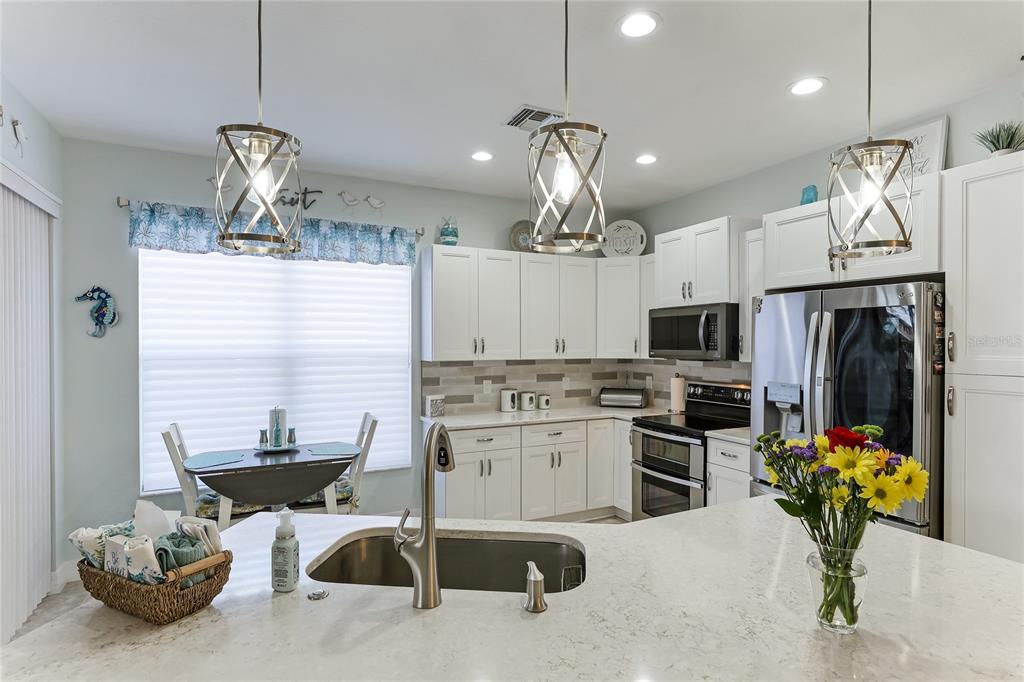 Seller motivated! this amazing move-in ready home boasts many updated features to please anyone including beautifully remodeled kitchen and well designed open concept floor plan. located in a cul-de-sac, its great curb appeal begins with the front porch leading to the beautiful glass entry door. the all new kitchen with high end appliances, bathroom upgrades, and the all new lighting and fans are some of the recent changes made. the air conditioned garage includes the 4 ft extension pull down stairs for attic storage, cabinet work shop and epoxy flooring. the lanai includes a built in hot tub for your leisure. come visit the villas at charleston park, one of north port, fl hidden gems! this well maintained community, with its mature oak trees is a great location to the beaches, shopping, and nearby popular cities. the pool and clubhouse are popular amenities for those living here. landscaping included! added benefits include: accordion hurricane shutters (2021), new water heater (2022), new smoke alarms (2024), termite inspection (2024), new heat pump for spa (2017), new a/c motor (2018) and a 1 year home warranty for peace of mind. the community is not in a flood zone, and there is no cdd fees. hoa is $330/mo.2681 WHISPERING PNE, NORTH PORT, FL 34287