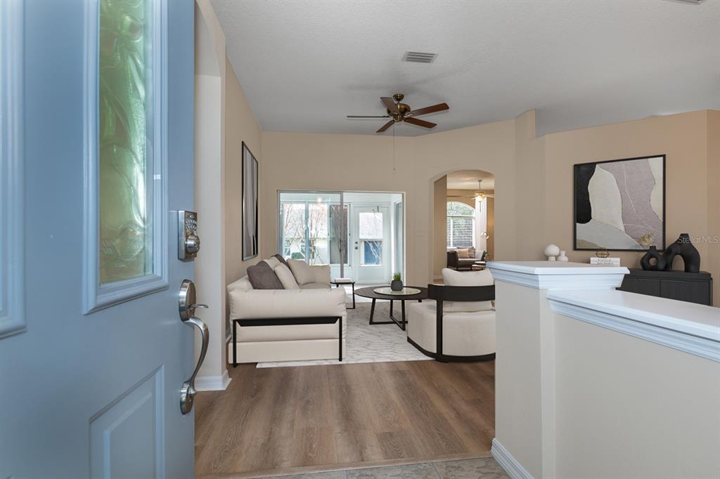 One or more photo(s) has been virtually staged. this is the one you have been waiting for. 3 bedroom 2 bath split plan with a family room and living room. there is plenty of space for friends and family to visit. sliding glass doors off the family room and livingroom that led to the outdoors space. with a northern exposure you will be able to enjoy the sun with that first cup a coffee and also in the evening.the kitchen has pull out drawers, double pantry and solar tube. the primary bedroom has tray celings, a door out to the lania and 2 walk in closets. primary bath has a soaking tub, walk in shower double vanities. beautiful crype myrtle trees located in the back yard for landscape privacy. gutters, curbing, rock landscape beds, mature trees, and textured driveway enhance the exterior of the home. all of this in one of central florida's premier 55+ communities, legacy of leesburg. known for its miles of trails and conservation areas legacy also offers an abundance of activities, pickleball, tennis, bocce, shuffleboard, softball just to name a few. for the sun lovers there is a resort style pool and spa. hoa dues include cable, internet, yard mowing, rv and boat storage. come see why so many call legacy home.26908 HONEYMOON, LEESBURG, FL 34748