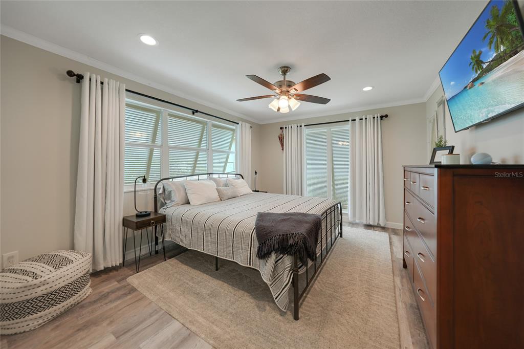 Split Bedroom Walk-In Closet(s)Ceiling Fan(s) Eating Space In Kitchen Stone Counters Thermostat Open Floorplan Window Treatments Solid Surface Counters Solid Wood CabinetsCrown Molding Tray Ceiling(s)Exterior Features: