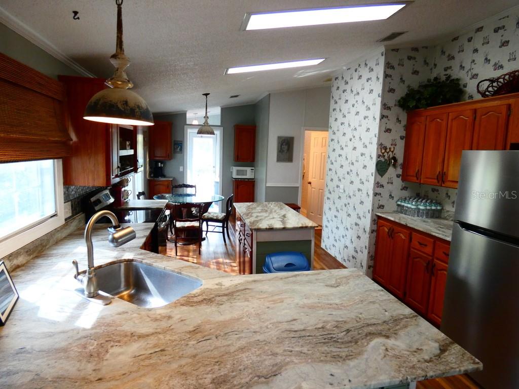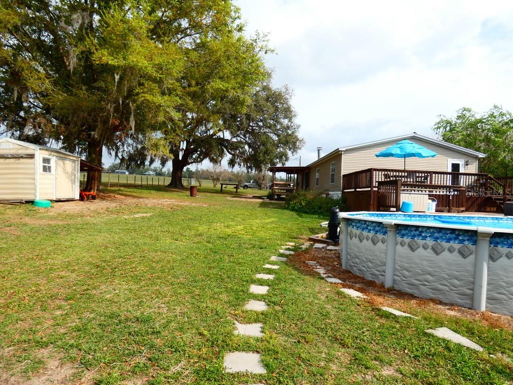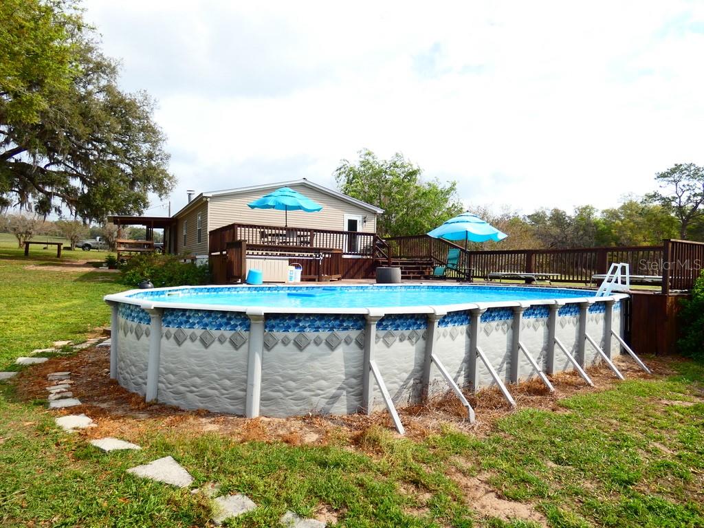 Charming 2-acre horse farm retreat with pool & barn – a true country oasis! beautifully maintained 2-acre horse farm featuring a durable metal roof, 3 spacious bedrooms, and 2 full bathrooms. enjoy resort-style living with a large pool and an expansive deck, perfect for entertaining and relaxing in the florida sunshine. step inside to a warm and inviting open-concept layout with vaulted ceilings, a cozy wood-burning fireplace, and a family room that feels like a mountain lodge retreat. the kitchen features granite countertops and flows seamlessly into the breakfast area and living space. the home offers a triple split-bedroom floor plan, with a master suite that boasts a spa-like bathroom. outdoor living is made easy with two covered patios ideal for lounging, dining, or gathering with friends and family. the horse barn includes three stalls, complete with water and power and metal roof, plus a separate shed for feed and equipment storage. and yes—your horse can come right up to the 1997 double wide manufactured home! located in a non-flood zone (per the county) for added peace of mind. come experience this exceptional property for yourself. immediate neighbor has 100+ acres, open field pure space: less than 60 miles to st. pete beach in florida was just named the #1 beach in america and the fifth best beach in the world. please view two videos: tour 1 & tour 2, croom wildlife management area (wma) is located a few minutes away from this home, they have more than 20,000 acres for horse backing around:)27080 BERRY, BROOKSVILLE, FL 34602