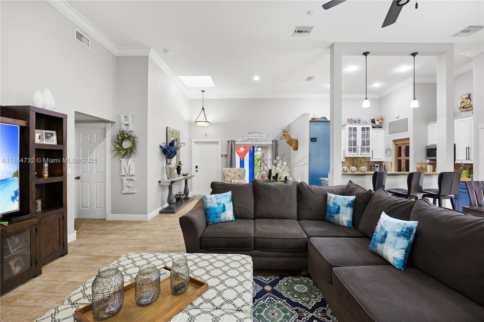 Location! location! harbourwood corner villa, 42 ft assigned boat dock included, ocean access, no fixed bridges. open and spacious 3 bedroom, 2 bath, split floor plan, 1626 sq. ft. vaulted ceilings with exposed wood beams, skylight & ceramic tile plank flooring. master bath has a separate jacuzzi tub and shower. lots of storage space. kitchen features granite countertops & bar seating area. ss appliances, new refrigerator fenced in private patio to enjoy outside dining. new hurricane impact windows and doors, a newer a/c (2024), new electrical fuse box (2021), new washer & dryer. minutes to the beach, aventura mall, gulfstream village and ft. lauderdale airport.2731 S PARKVIEW DR, HALLANDALE BEACH, FL 33009