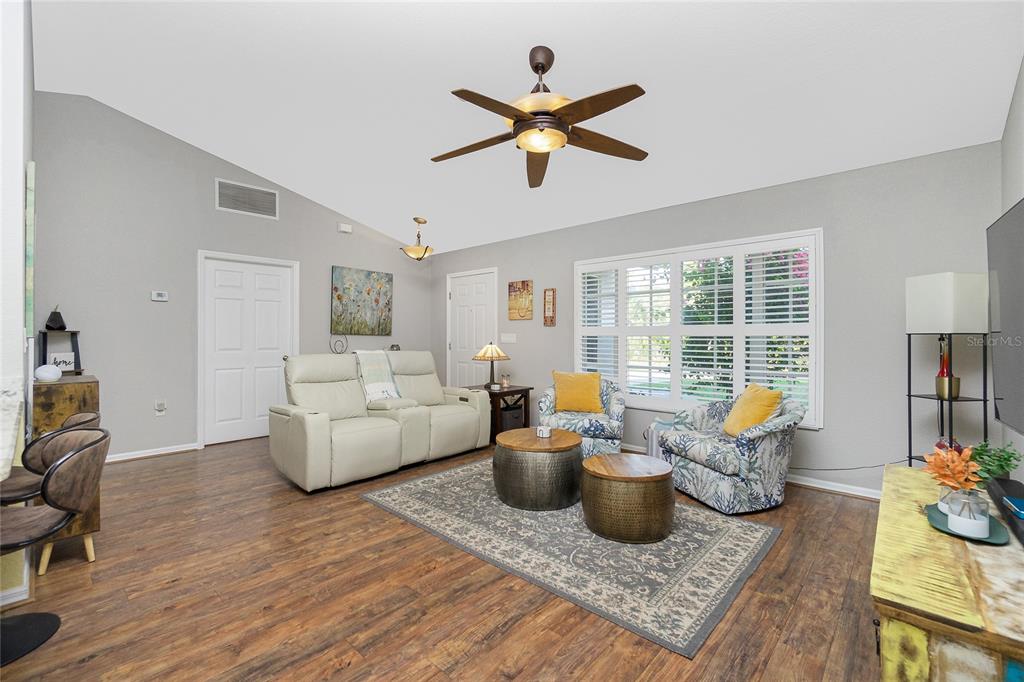Split Bedroom Vaulted Ceiling(s)Ceiling Fan(s) High Ceilings Living Room/Dining Room Combo Thermostat Window Treatments Primary Bedroom Main FloorExterior Features: