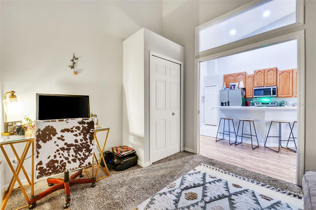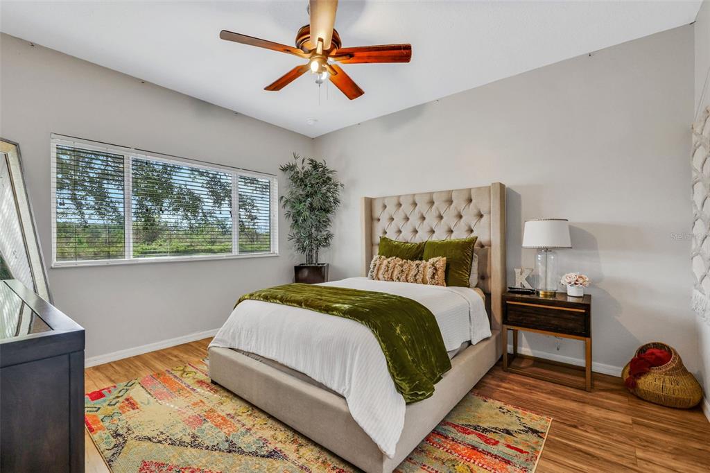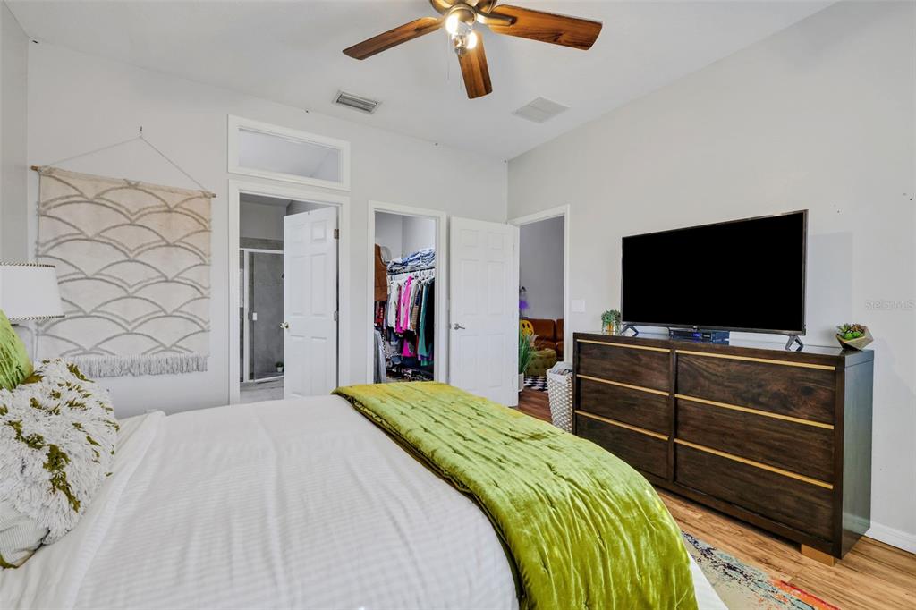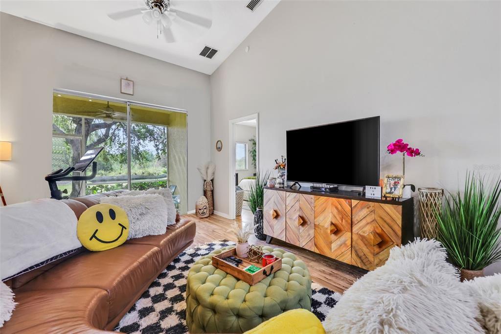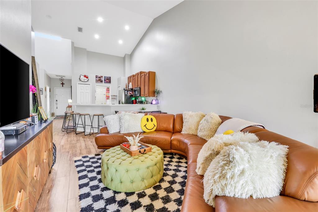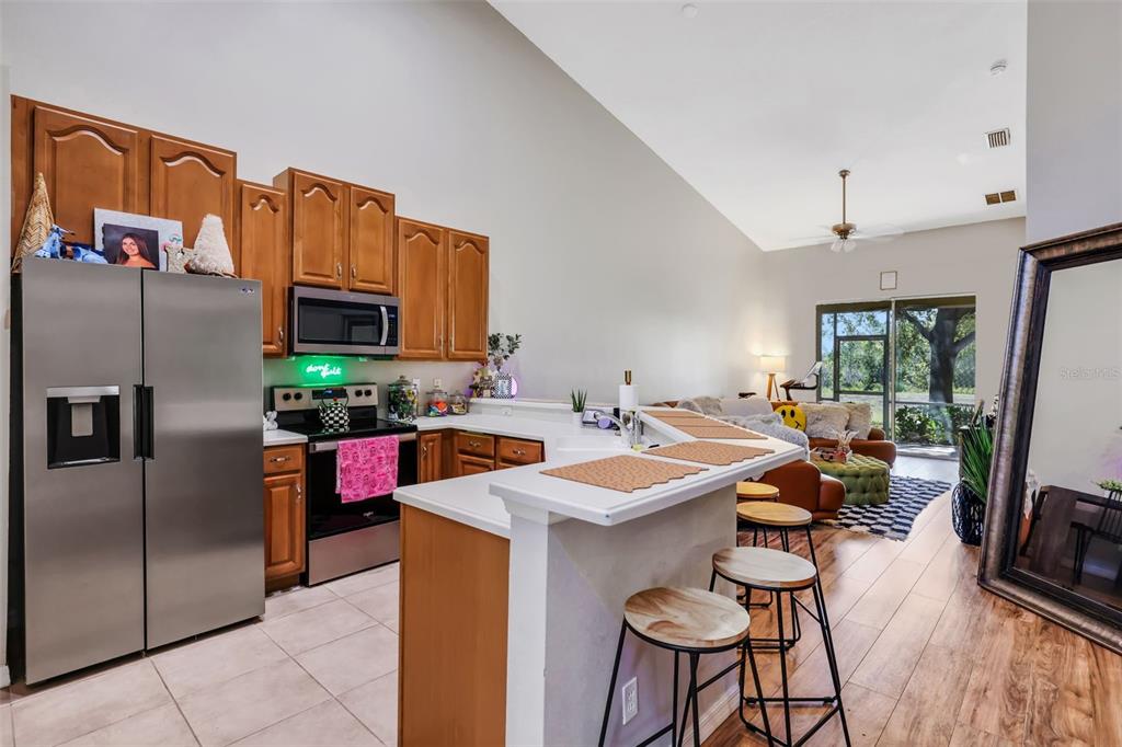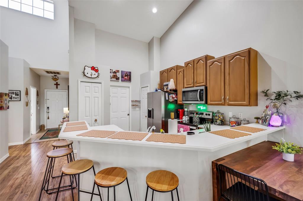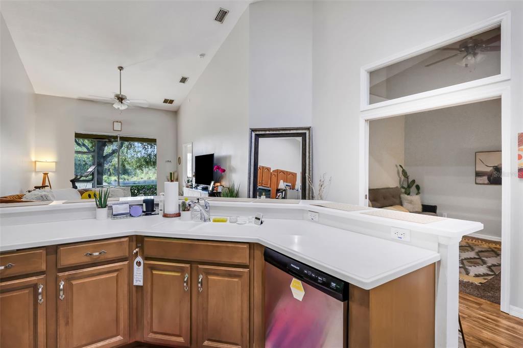 Split Bedroom Walk-In Closet(s)Ceiling Fan(s) High Ceilings Living Room/Dining Room Combo Open Floorplan Solid Surface Counters Solid Wood CabinetsExterior Features: