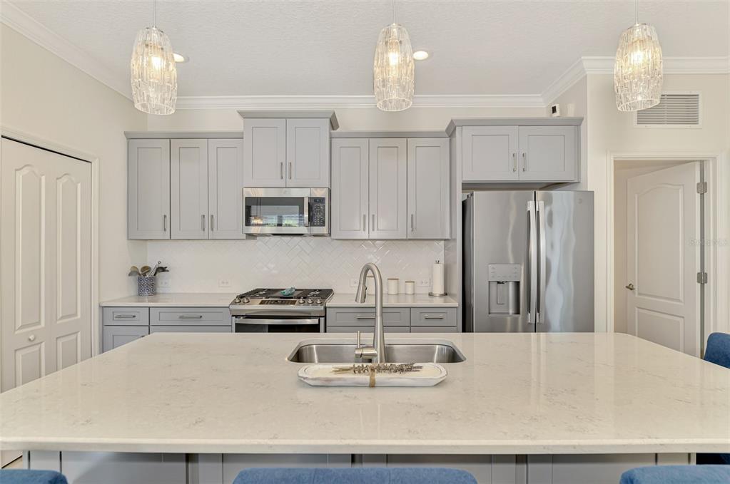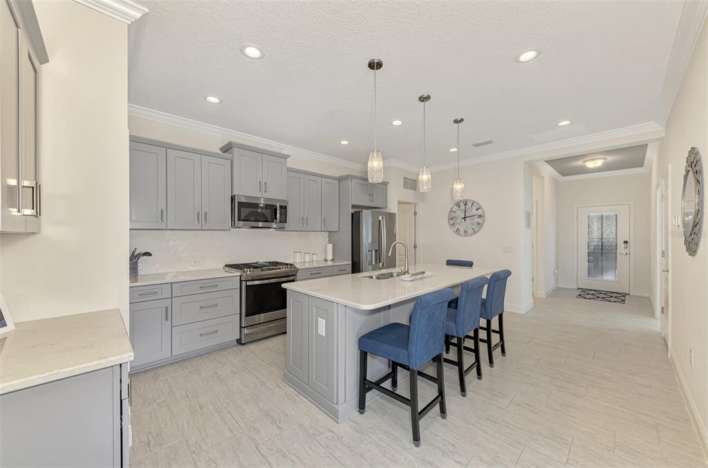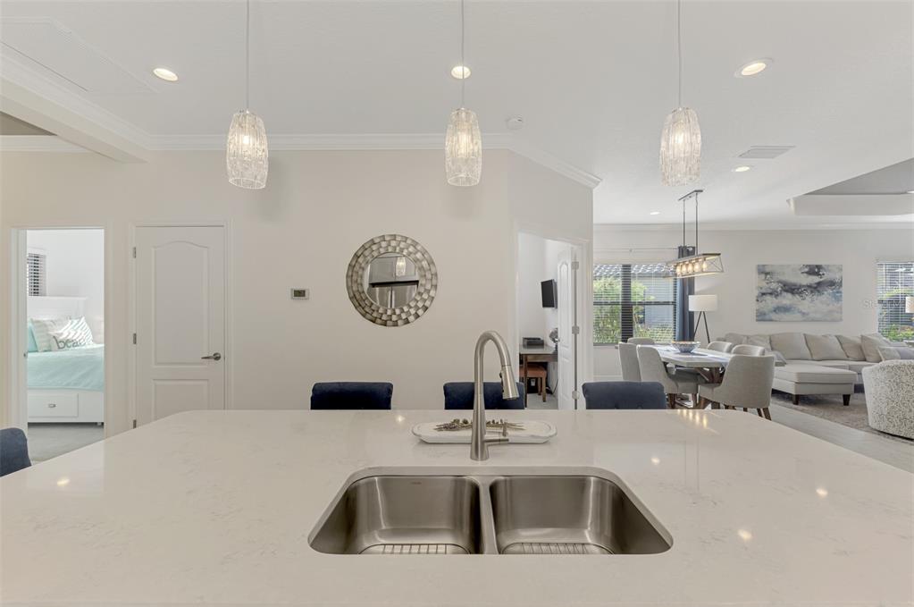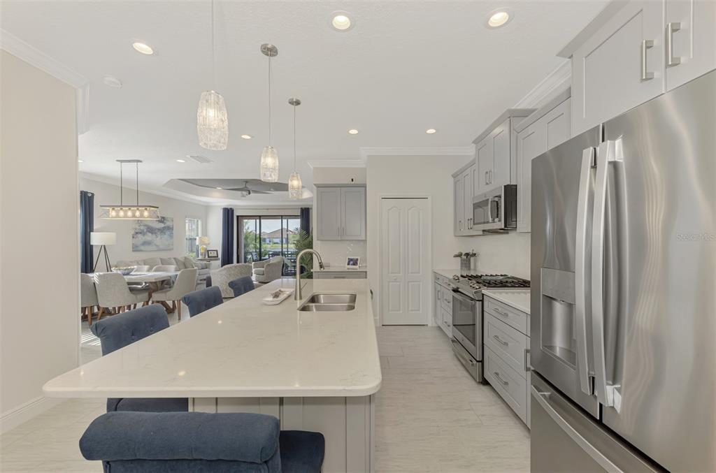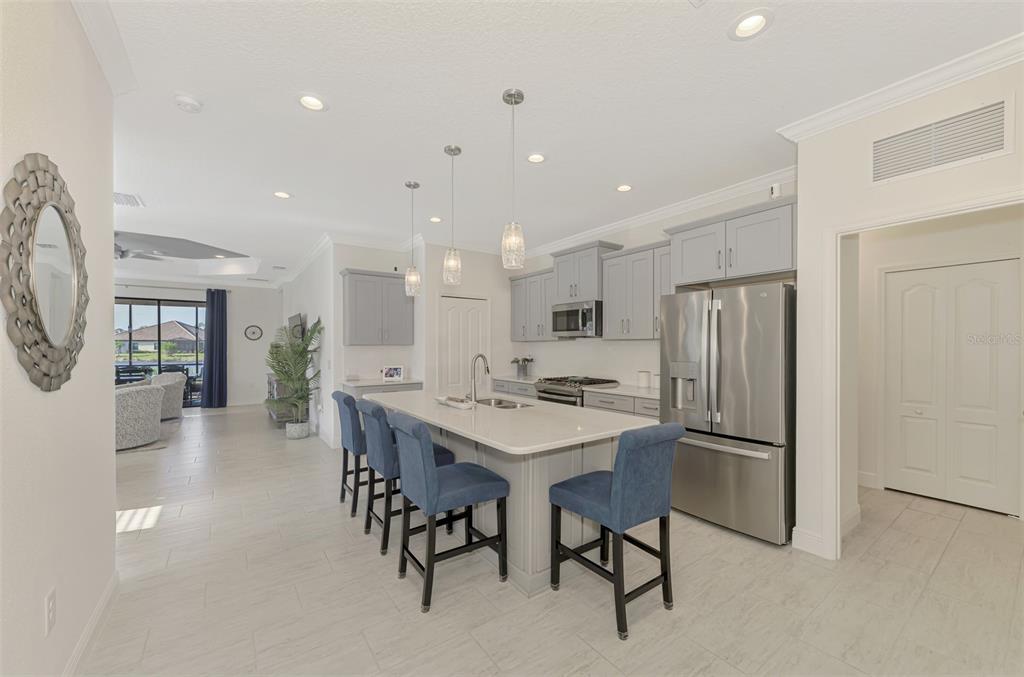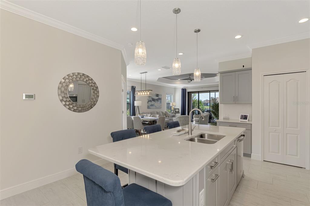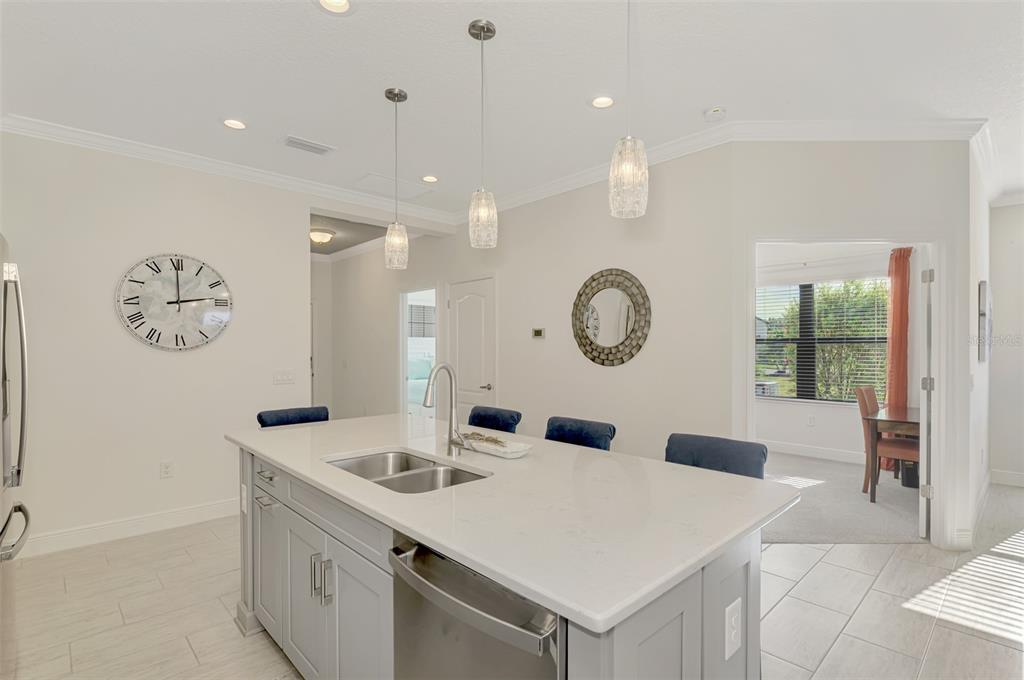 **** huge price reduction ***** here is your chance to live in the beautiful community of boca royale! just bring your suitcases and move right in. this sandcastle floor plan affords you spaciousness and privacy with three bedrooms, two bathrooms plus a den. the gourmet kitchen will please the most discerning chefs with light quartz countertops, elegant gray cabinets, stainless steal appliances, including a natural gas stove and a generous size island for entertaining. the kitchen is open to the dining room and great room with sliding glass, pocketing doors leading to the extended covered, screened lanai with a water view. coffered ceiling in the great room are complete with crown molding. recessed lighting perfectly illuminate the simple, clean look throughout the home. retreat to your roomy master suite with a water view. there is an oversized walk-in closet and ensuite bathroom adored with dual vanities and a glass enclosed, walk-in tile shower. this bright and airy home has room for of your guest to stay comfortably in the second or third bedroom in addition to the den which can double as an at home work space. you will fall in love with this beautifully decorated and generously upgraded home. some furniture and decor are available for purchase with a separate bill of sale. this home has been generously upgraded with crown molding throughout, washer & gas dryer included, finished kitchen island, upgraded landscaping, recessed lighting, ceiling fans and pendant lighting, tv wall mounts, upgraded 50 gal gas water heater, upgraded hvac with an air purifier, decorative glass front door, front entry screened enclosure, garage storage racks, pull down attic steps all situated on a premium lot with a pond view. enjoy all of the social amenities such as pickle ball, tennis, golf and fitness. meet up at the clubhouse for lunch, dinner and drinks and relax at community pool, complete with cabanas and an outdoor kitchen for neighborhood festivities. manasota key is minutes away with three public beaches to catch some rays and enjoy the crystal clear gulf water. experience world class fishing and boating minutes from your front door. come experience all the gulf coast of florida has to offer. make boca royale your home!Villa 3 bedrooms - BOCA ROYALE UN 16 for Sale
