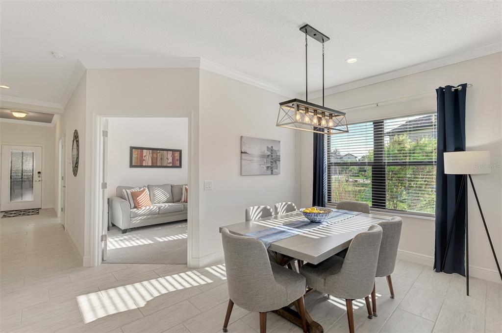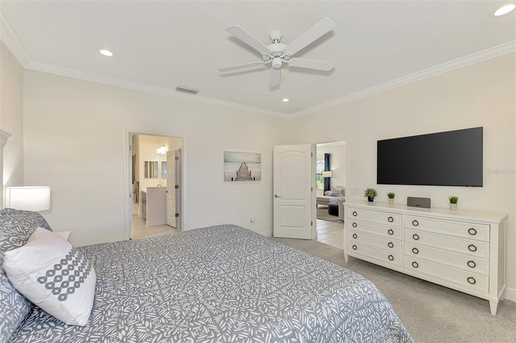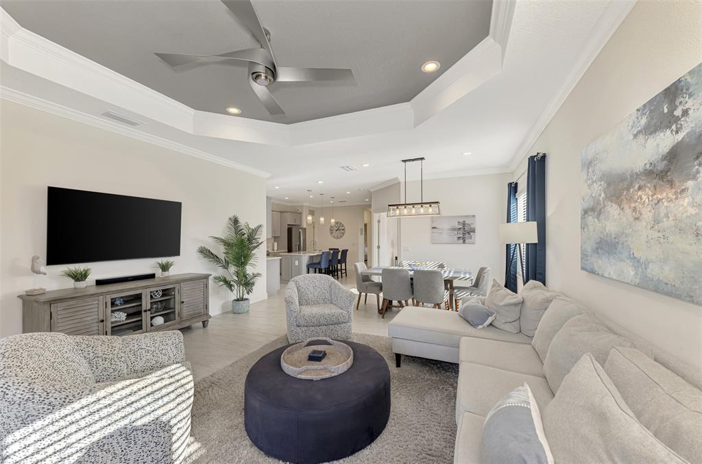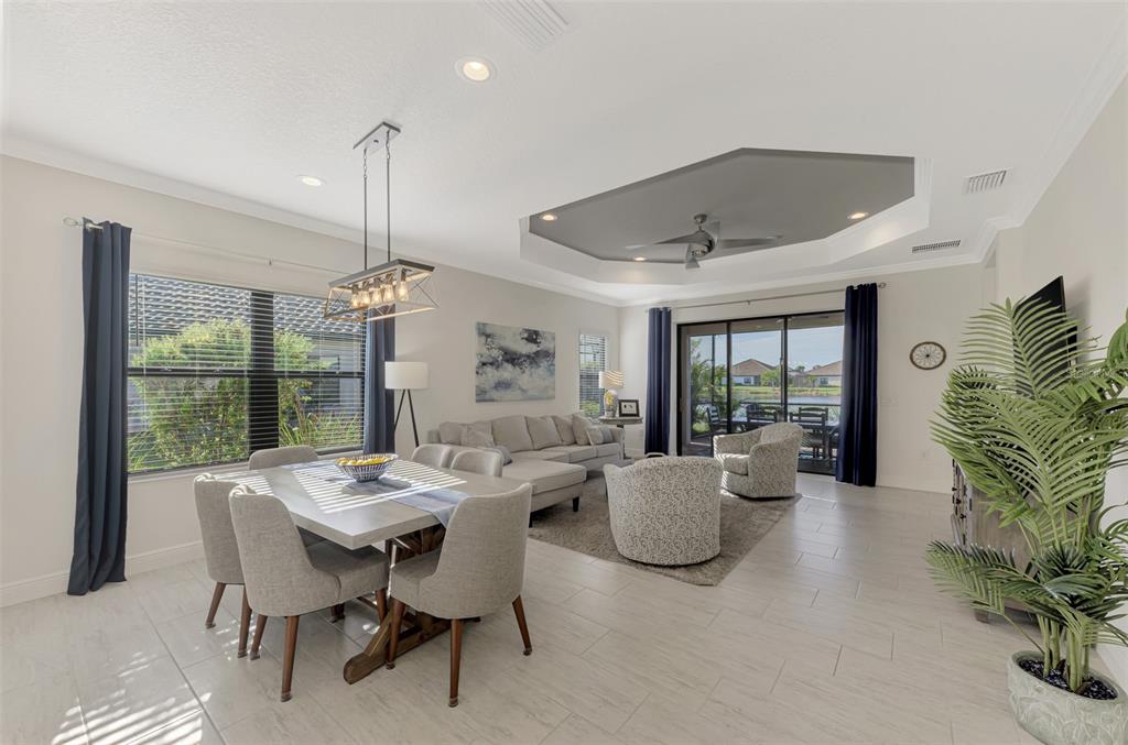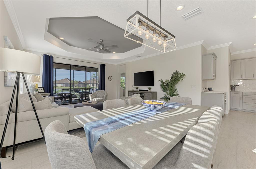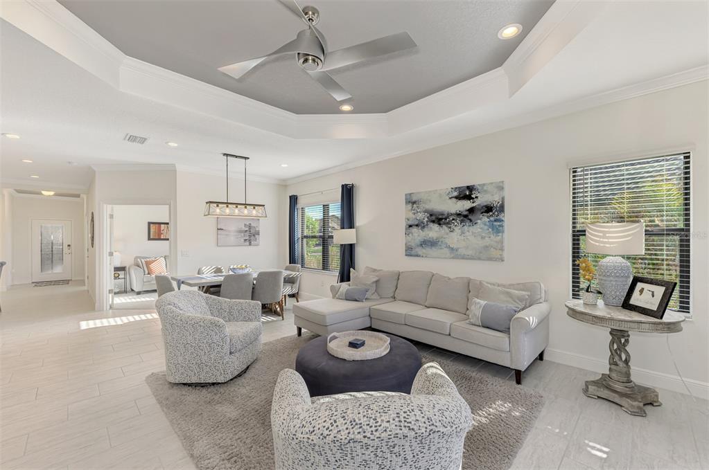 Split Bedroom Walk-In Closet(s)Ceiling Fan(s) Eating Space In Kitchen High Ceilings Thermostat Open Floorplan Window TreatmentsCrown Molding Coffered Ceiling(s)Exterior Features: