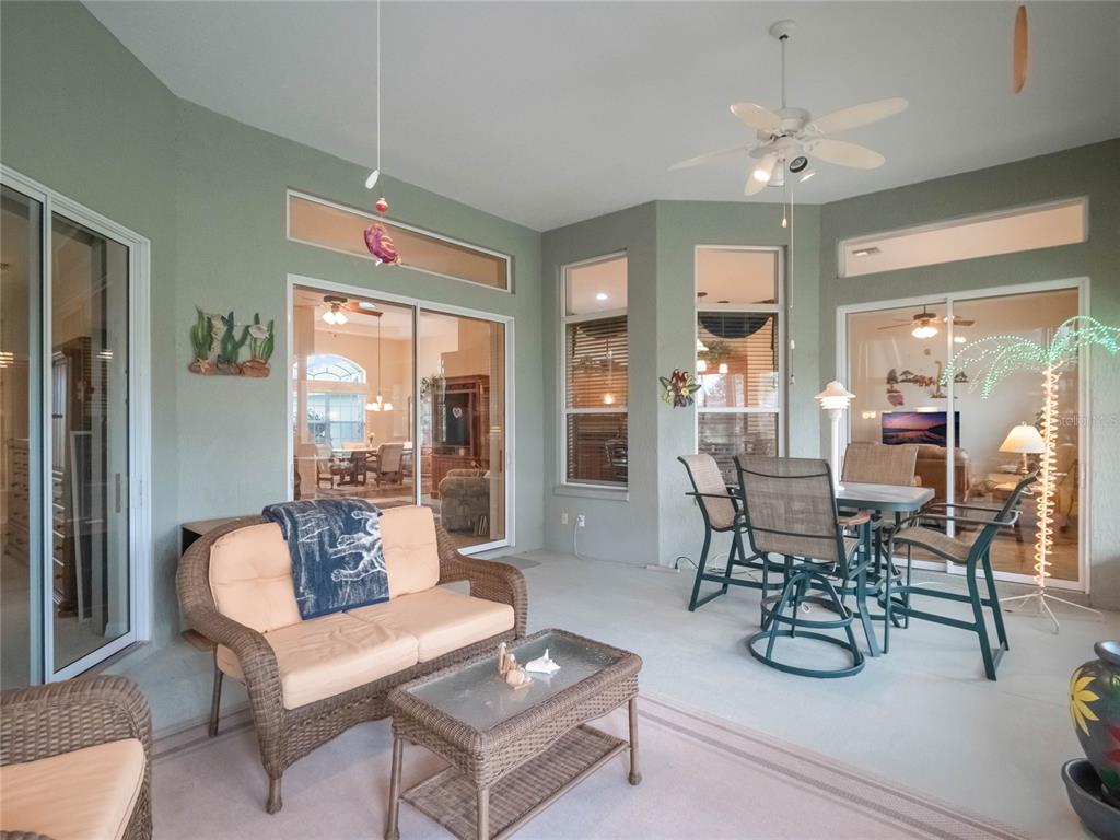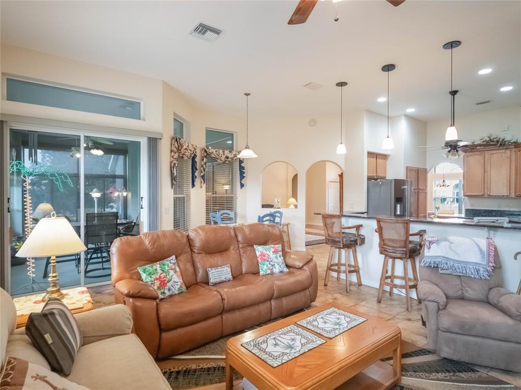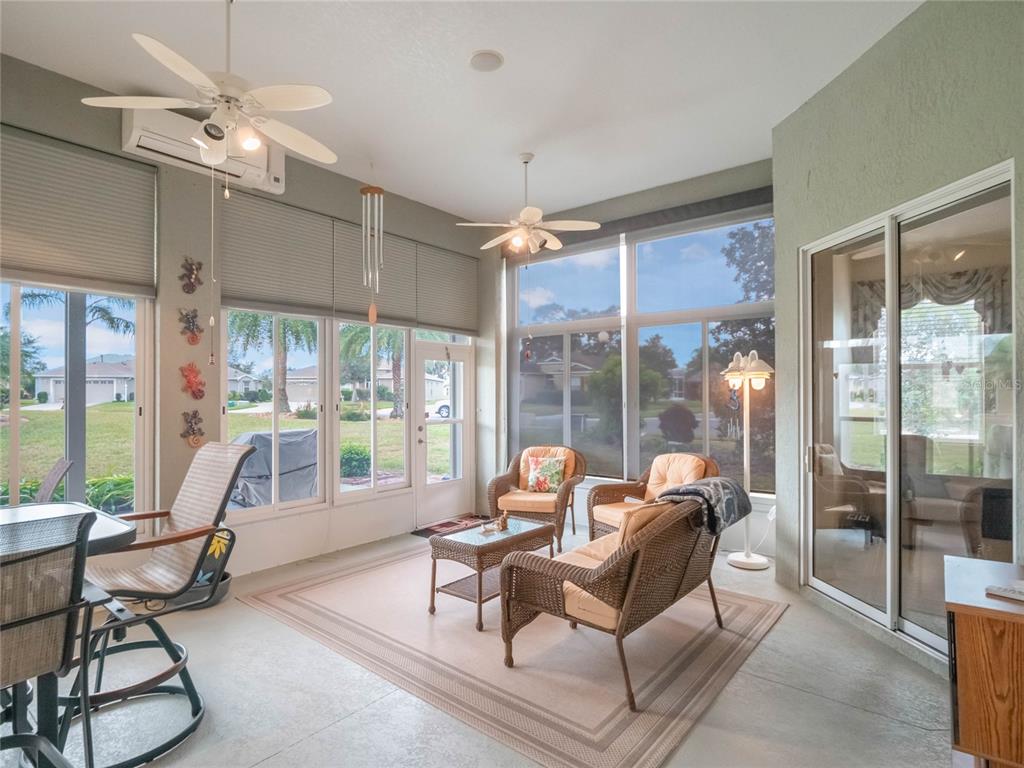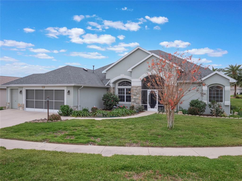 ***legacy of leesburg active adult community***this st andrews floor plan is a 3 bedroom/2 bathroom home under 2271sf with an additional 432sf all-seasons room with 11.4ft ceilings and a minisplit to cool and heat for an additional living space. the home has a 2 car plus golf cart garage!! ***roof replaced in 2023***ac replaced in 2019***appliances replaced in 2019***this is a very spacious home with 11.4ft ceilings in the main living areas and it sits on a oversized corner lot, with great curb appeal. the large kitchen is a dream come true, featuring updated stainless appliances, custom maple wood cabinetry, and plenty of counter space featuring gorgeous elegant granite; you’ll love cooking and entertaining. all located in "nature-themed" legacy, home to miles of walking trails, bike paths and acres devoted to conservation preserve. there's a full array of amenities, highlighted by a stunning beach entry heated pool, hot tub, softball field, great fitness center, arts & craft room, library, billiards and much more. the hoa fees include lawn cutting, cable/internet/landline, rv/boat storage and the wonderful amenities with lots of clubs, organized activities and events! this community is resort-style living at its best!!27504 STONEY BRK, LEESBURG, FL 34748