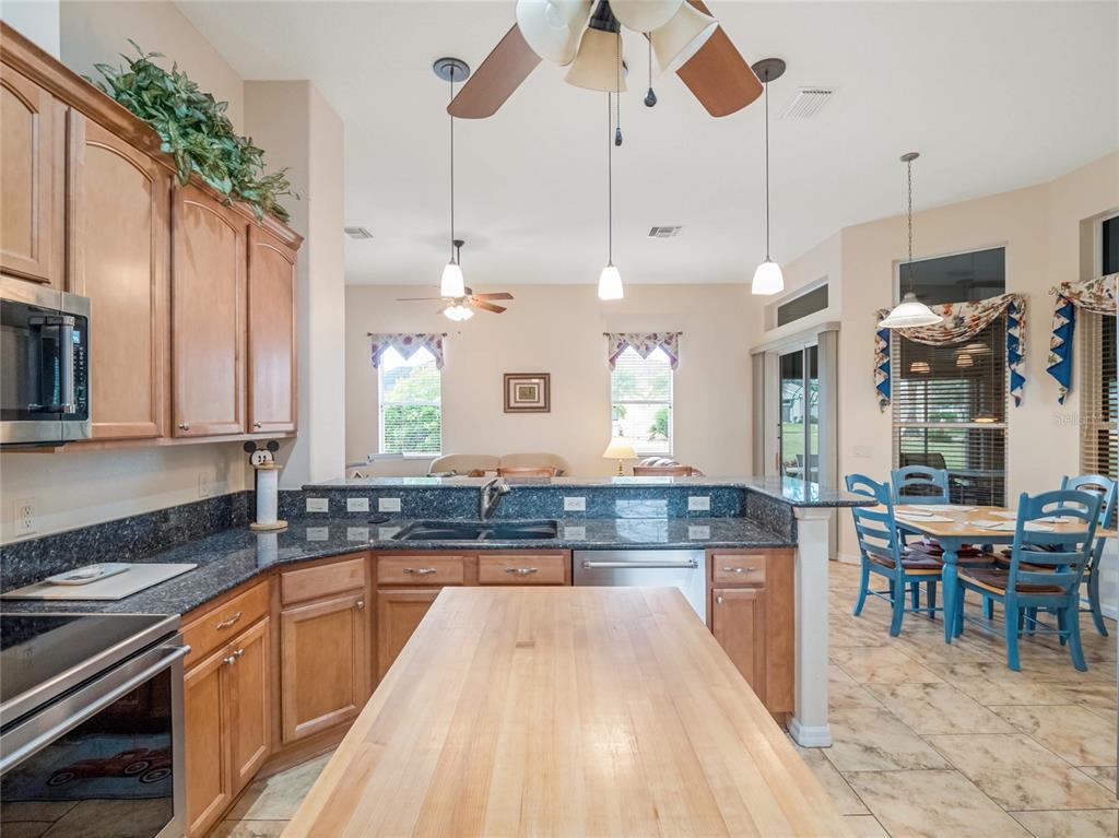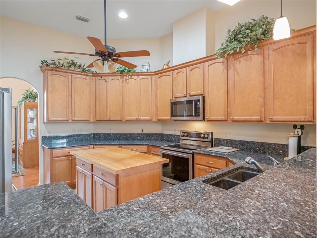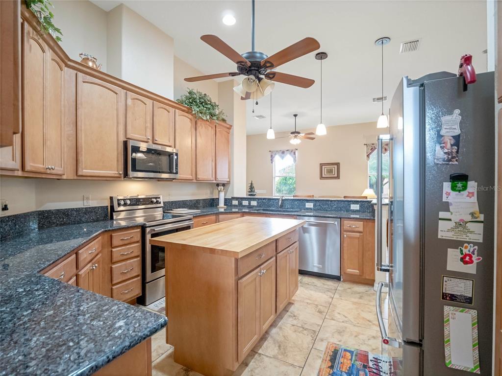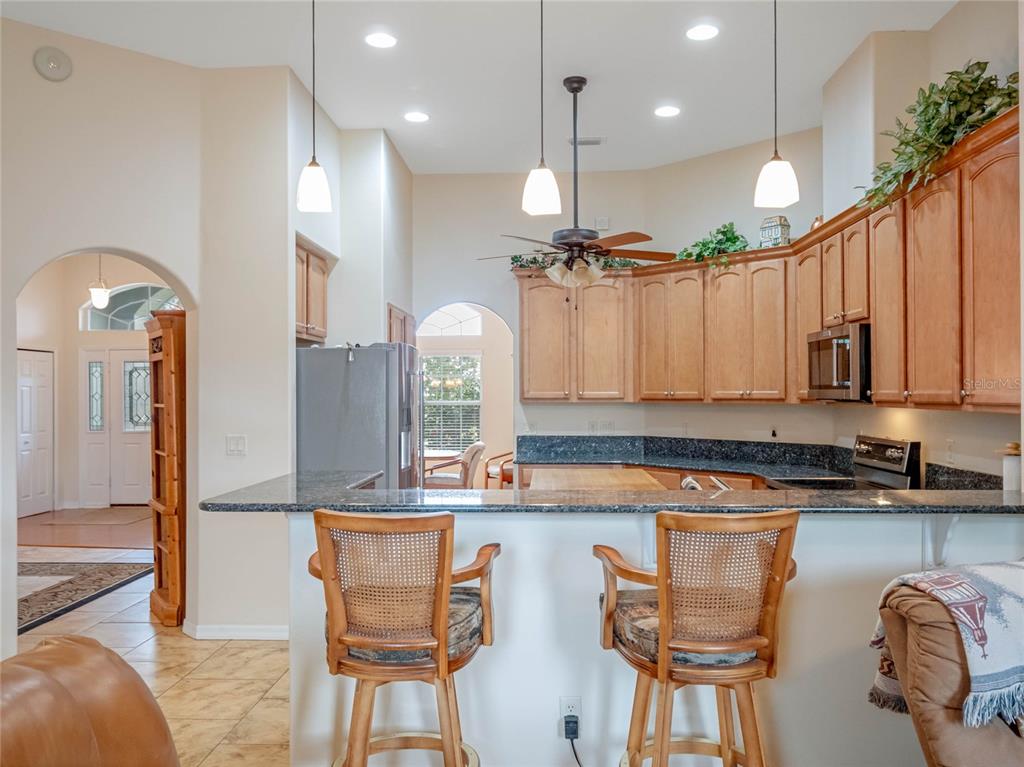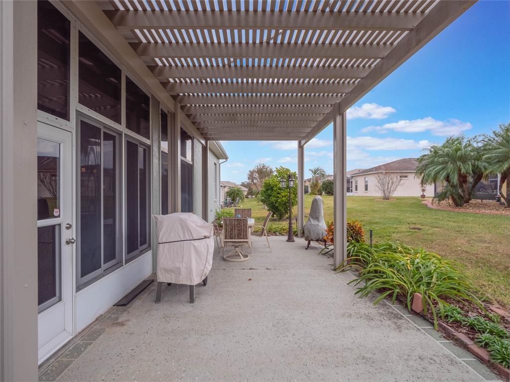 ***legacy of leesburg active adult community***this st andrews floor plan is a 3 bedroom/2 bathroom home under 2271sf with an additional 432sf all-seasons room with 11.4ft ceilings and a minisplit to cool and heat for an additional living space. the home has a 2 car plus golf cart garage!! ***roof replaced in 2023***ac replaced in 2019***appliances replaced in 2019***this is a very spacious home with 11.4ft ceilings in the main living areas and it sits on a oversized corner lot, with great curb appeal. the large kitchen is a dream come true, featuring updated stainless appliances, custom maple wood cabinetry, and plenty of counter space featuring gorgeous elegant granite; you’ll love cooking and entertaining. all located in "nature-themed" legacy, home to miles of walking trails, bike paths and acres devoted to conservation preserve. there's a full array of amenities, highlighted by a stunning beach entry heated pool, hot tub, softball field, great fitness center, arts & craft room, library, billiards and much more. the hoa fees include lawn cutting, cable/internet/landline, rv/boat storage and the wonderful amenities with lots of clubs, organized activities and events! this community is resort-style living at its best!!27504 STONEY BRK, LEESBURG, FL 34748