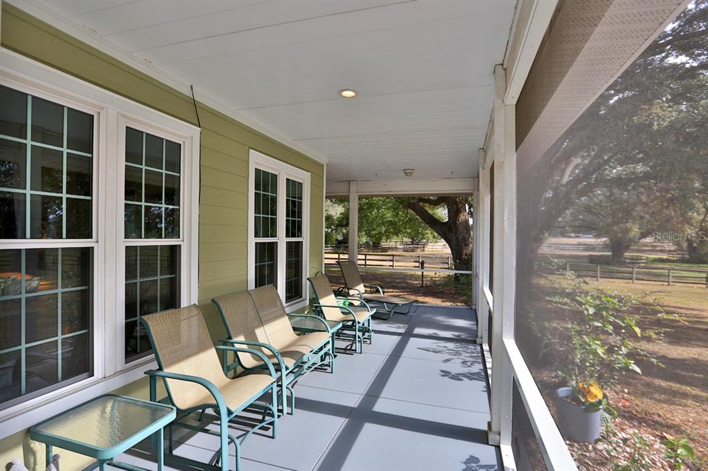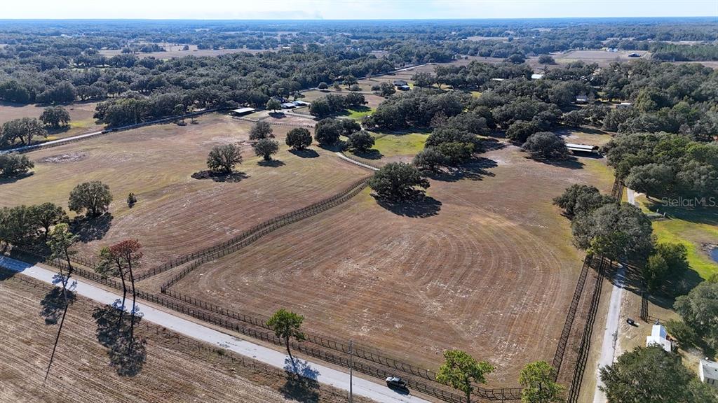Equestrian estate and inviting home, nestled on 48.5 +/- acres of picturesque land. as you approach the gated entrance and winding driveway, you'll be captivated by breathtaking views of lush green pastures and majestic oak trees. this charming residence spans over 2,500+ square feet and boasts an abundance of natural light thanks to ample windows and a delightful screen-enclosed wraparound porch. the heart of the home is the chef’s kitchen, perfectly designed for culinary enthusiasts. it features a center island, exquisite marble and granite countertops, and custom cabinetry. the kitchen seamlessly flows into the spacious family room, where you can relax by the fireplace. the expansive owner suite offers a luxurious bath that invites relaxation with a jacuzzi tub and separate shower. two additional bedrooms offer comfort and plenty of space for family or visiting friends. the home also showcases elegant tray ceilings, crown molding, hardwood floors, and a state-of-the-art speaker system for your enjoyment. for the horse lover, this property is a dream come true! it includes a 16-stall stable, 7 large paddocks, three covered equipment buildings, and riding trails all situated on fully fenced land adorned with beautiful mature oak trees. enjoy the serene country lifestyle while benefiting from the conveniences of the villages, just minutes away.Farm 4 bedrooms - ACREAGE NON-SUBDIVISION for Sale