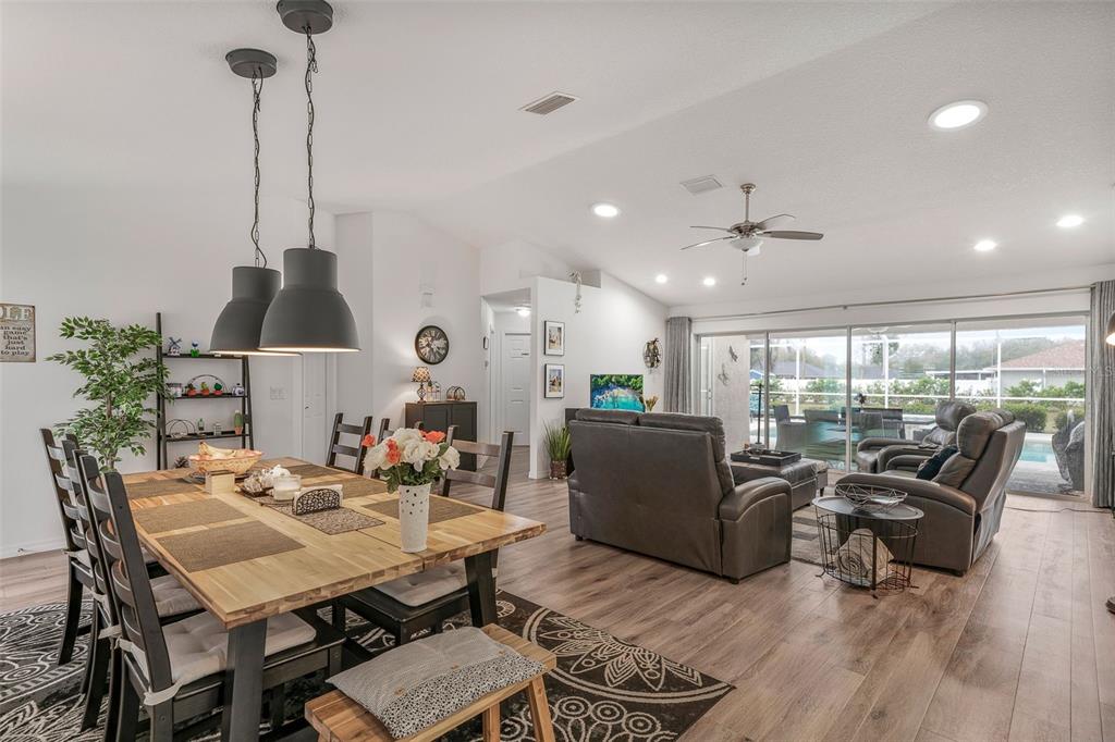 Extremely well-kept & maintained newer house on a corner lot! this 4/2 pool home sits on 2 lots, each 0.31 acre, and is built in 2018. this beautiful appointed home looks brand new. coming into the front door, the kitchen on your right is semi-open to the living room. the living room and the dining area have a great view of the pool. kitchen cabinets are of a gray-brown color, and the appliances are all stainless steel. new refrigerator in 2024. beautiful stone countertops provide a high-end look to this workspace! l-shape breakfast bar to the dining- and living room offers space for two. a large walk-in pantry is the finishing touch! high quality lvt flooring throughout the house and lots of light! the dining room easily a group of people; the living room is light and has large glass sliding doors to the screened-in pool. between the kitchen and the garage is the laundry room with the washer & dryer. the main bedroom of the living room has plenty of space for bed & storage. a walk-in storage offers shelves and hanging space for your linens and garments. luxuries bathroom with a separate, tiled walk-in shower, garden tub, double sinks and a modern wall-mounted toilet. makes cleaning underneath so much easier. on the other side of the home are 3 spacious bedrooms that share a bathroom, leading to the pool area. every room has a built-in closet. the pool has a waterfall and hot tub and is converted to a salt water pool with electric heater. solar blanket to keep the water at a nice temperature is provided. gutters for drainage and full landscaping. the garage has space for two cars. the garden is plenty big as the seller owns the adjacent lot. can you image what you can do with the extra space? the house can be purchase furniture, all negotiable.276 N CUNNINGHAM, INVERNESS, FL 34453