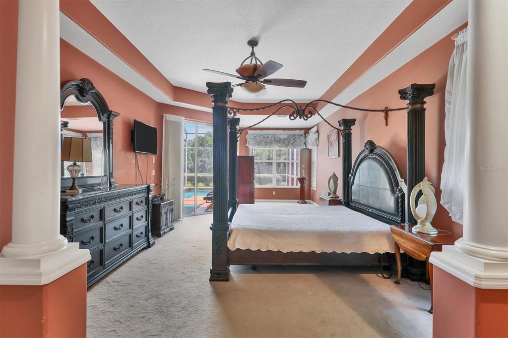 Split Bedroom Walk-In Closet(s)Ceiling Fan(s) Eating Space In Kitchen High Ceilings Open Floorplan Window Treatments Solid Wood CabinetsCrown Molding Primary Bedroom Main FloorExterior Features: