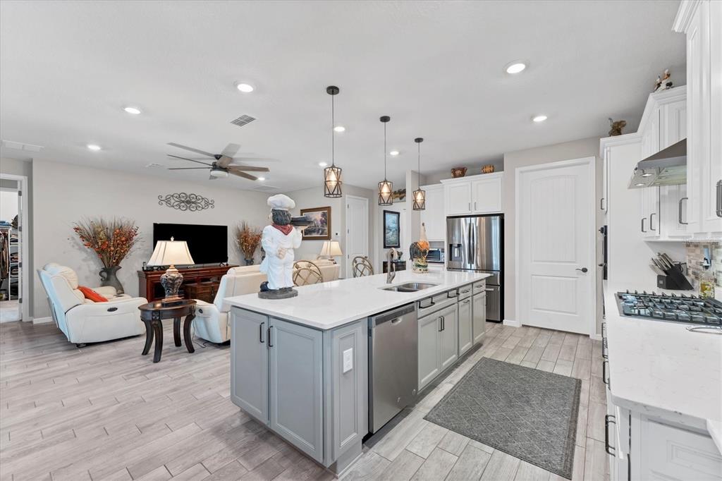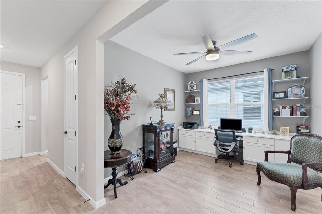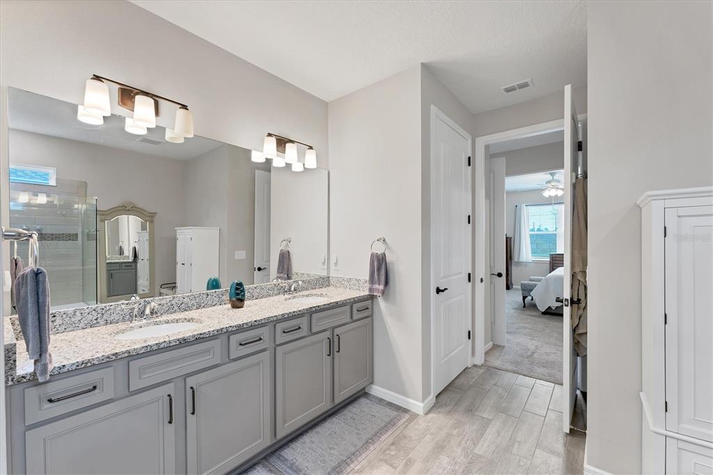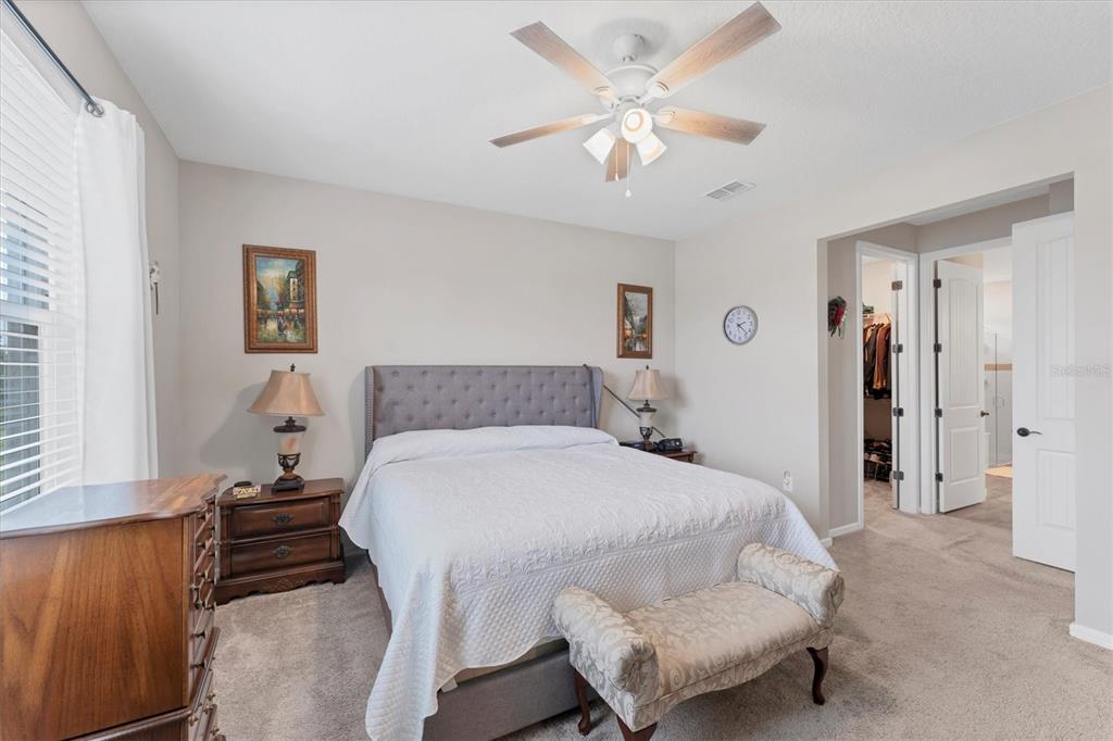 Walk-In Closet(s)Ceiling Fan(s) Stone Counters Open Floorplan Window Treatments Solid Wood Cabinets Primary Bedroom Main FloorExterior Features: