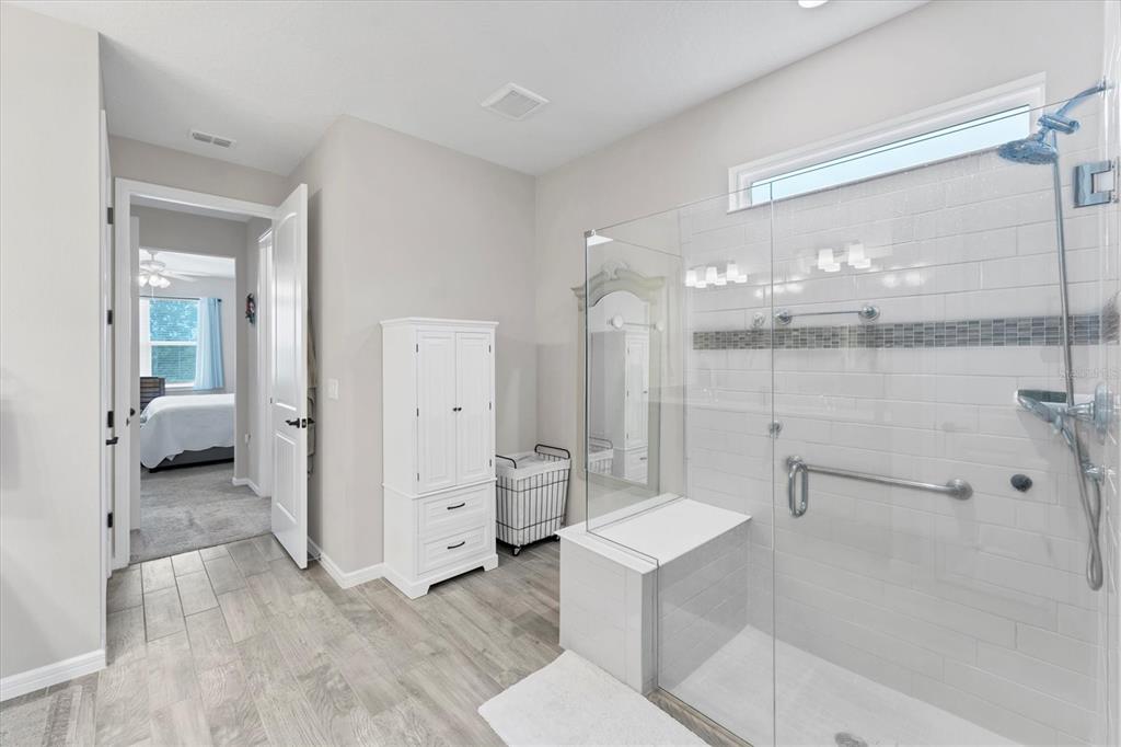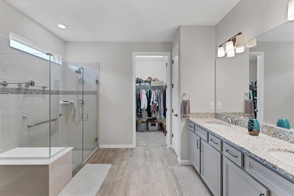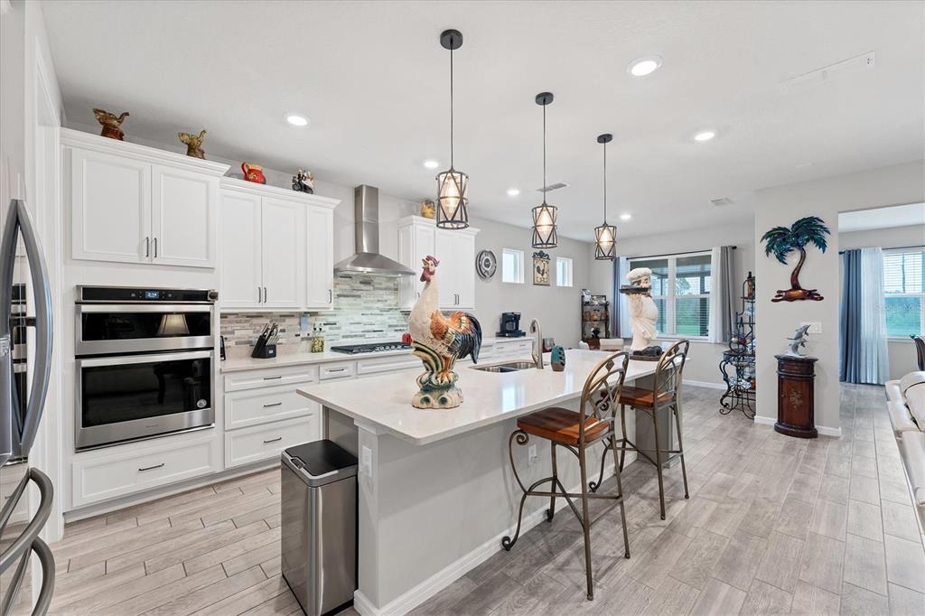 Welcome to your next home in the stunning 55+ community of sunbridge by del webb. this beautiful prestige model has over $100,000 in builder upgrades and premiums which include a gourmet kitchen with double wall ovens, gas cooktop, all stainless steel appliances, cabinets with 42” uppers, pull out shelves & soft-closing doors, quarts counters and a large island that opens to the living area. next to the living room, you will find the dining room, another upgrade to the home which has given it 180 square feet of additional living space. the master suite has double walk-in closets, en-suite bath with double sinks, ands a large walk-in shower with a built-in bench. the 2nd bedroom also has an en-suite bath and walk-in closet which makes it feel like a second master suite. this home has a flex room which has been converted to an office and features a large built-in desk with lots of cabinets and drawers for storage and wall shelves to display your precious mementos. across from the office you will find a well-appointed guest bath and hallway that leads to the indoor laundry room. in the hallway you will find built-in cabinets and shelves for even more storage. the hall and office cabinets were custom made and are among the many owner-added upgrades you will find in the home. with almost 2300 square feet of living space, this stunning home sits on a premium lot that backs up to a pond and conservation area which you can see from the master bedroom window or enjoy from the screened porch. outside of the home, you can enjoy an active lifestyle with the numerous amenities you will find at sunbridge. the hammock club, the community’s 27,000 square-foot clubhouse, boasts of multiple pools including a resistance pool, lap pool and zero-entry pool, 7 pickleball courts, 2 tennis courts, modern gym, multiple function rooms for fitness classes and other activities, and the sabal tavern for dining and drinks. the community also has biking and hiking trails and year-round events allowing you to enjoy resort-style living. don’t miss out on this opportunity to own this gorgeous and spacious home and start living the florida lifestyle. contact us to schedule your showing today!2777 NATURE VW, SAINT CLOUD, FL 34771