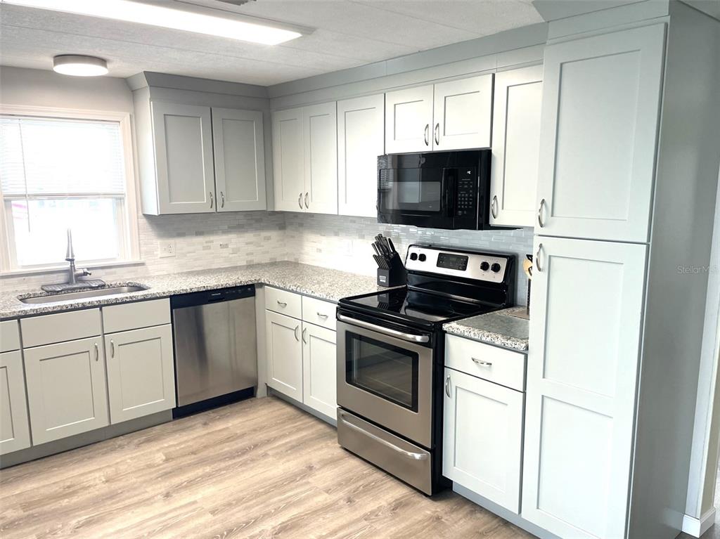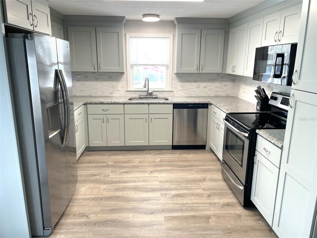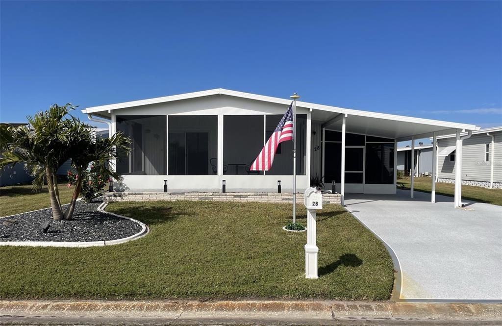 Experience the florida lifestyle in this beautifully updated 2-bedroom, 2-bathroom manufactured home located in the highly desirable harbor isles community. this open-concept gem features a newly remodeled kitchen with stunning dove grey solid wood cabinets, granite countertops, and brand-new stainless steel appliances. an oversized sink and abundant counter space make it a dream for cooking and entertaining. the living areas boast new luxury vinyl flooring, adding modern style and durability. the guest room includes a convenient stacked washer and dryer. a metal roof and a new carport, along with a 2-year-old ac, ductwork and hot water heater, ensures peace of mind for years to come. enjoy outdoor living with a new screened florida room at the front, a charming screened lanai on the side, and a spacious new 19x13 shed for all your storage needs. an additional concrete pad along the driveway provides ample space for your golf cart. this home is being sold turnkey furnished, ready for you to move in and start enjoying the amenities and lifestyle harbor isles has to offer. situated along the picturesque myakka river, harbor isles is a vibrant, pet-friendly, 55+ community known for its resort-style amenities and active lifestyle. residents have access to a marina with gulf access, a heated pool, spa, fitness center, clubhouse, tennis and pickleball courts, shuffleboard, and bocce. the community also offers a variety of social activities and clubs, fostering a sense of connection and belonging. conveniently located near shopping, dining, golf courses, and the stunning beaches of florida's gulf coast, harbor isles provides everything you need to live your best life. don’t miss this incredible opportunity!28 CASTAWAY, NORTH PORT, FL 34287