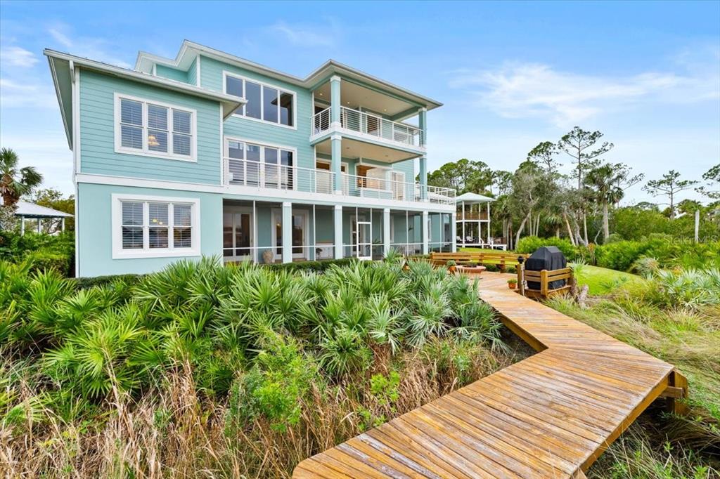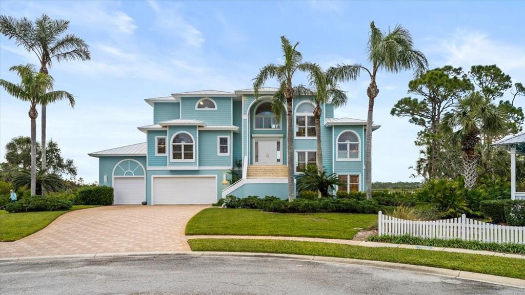 Luxury waterfront key west style home in gated osprey cove! discover a slice of paradise in this stunning waterfront key west-style home nestled in the exclusive gated community of osprey cove in new smyrna beach. located on the serene turnbull bay, this luxurious property offers a unique blend of elegance and coastal charm. the stamped concrete driveway and meticulous landscaping set the tone as you approach this exceptional home, crowned with a durable metal roof. enter through the second floor to find the heart of the home, featuring a spacious living room, dining room, and a cozy two-sided fireplace. the chef's kitchen is a masterpiece, boasting a center island, ample cabinet and counter space, and breathtaking water views. adjacent to the living spaces, an office offers the perfect spot for work or reflection, while two bedrooms, each with en-suite baths, and an additional half bath ensure effortless entertaining. the top floor is dedicated to the luxurious master suite, complete with a spa-like private bath, an expansive walk-in closet, and a private balcony where you can savor the tranquil waterfront vistas. take the stairs or elevator to the ground floor, where you'll find a versatile family room, additional living space, an office, and a large screened patio. step outside to your private dock that leads to the water's edge, complete with an outdoor fireplaceperfect for relaxing evenings under the stars. the three-car garage ensures plenty of space for vehicles and storage. this home is a waterfront dream come true, offering luxurious living, unparalleled views, and a seamless connection to the natural beauty of turnbull bay. don't miss the opportunity to make this extraordinary property your own! square footage received from tax rolls. all information recorded in the mls intended to be accurate but cannot be guaranteed.2806 BAY VISTA, NEW SMYRNA BEACH, FL 32168