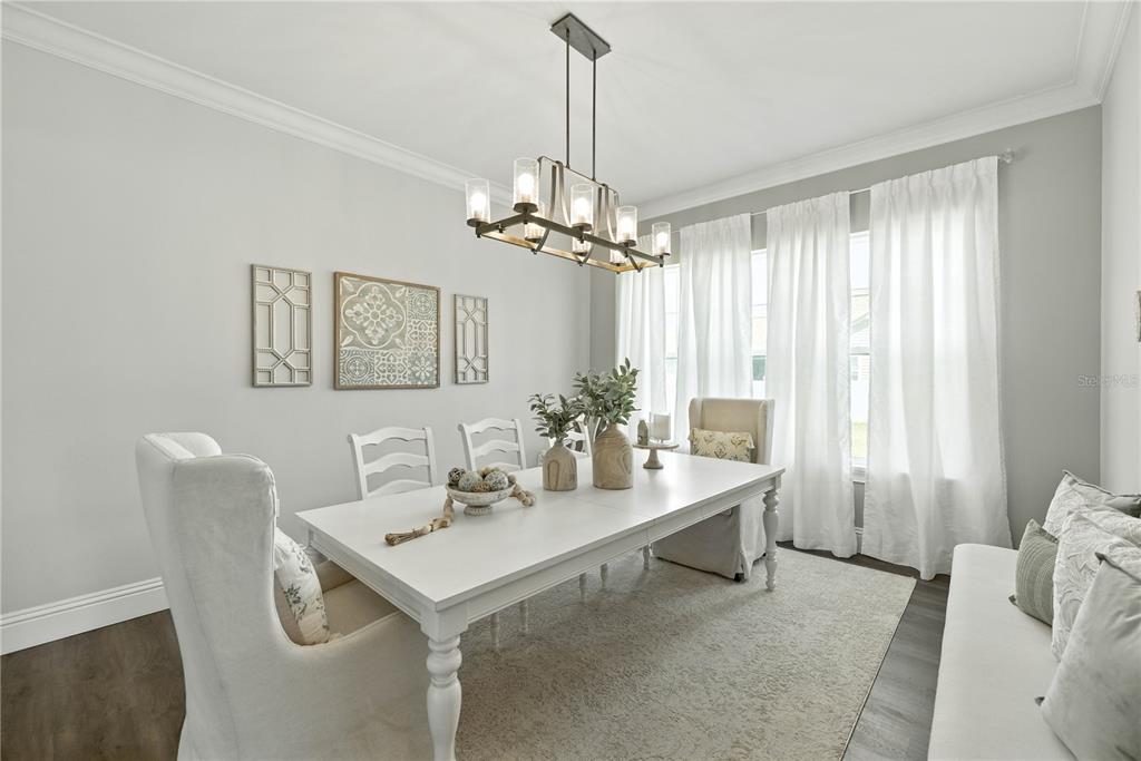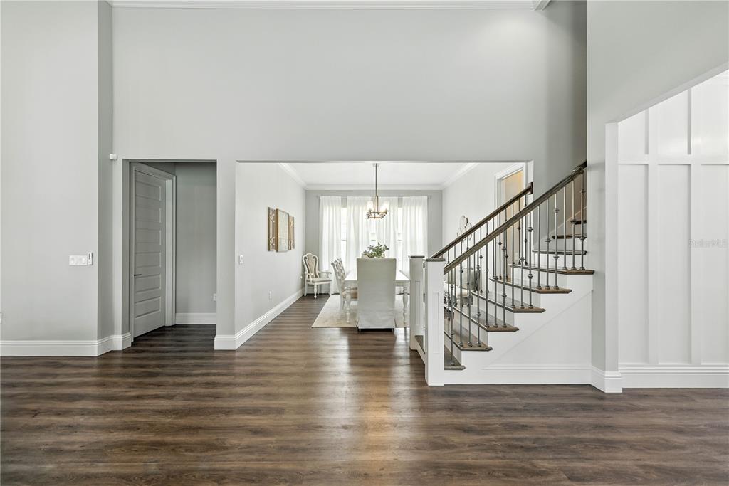 Split BedroomCeiling Fan(s) Eating Space In Kitchen High Ceilings Open Floorplan Window Treatments Solid Surface Counters Solid Wood CabinetsCrown Molding Primary Bedroom Main Floor Kitchen/Family Room ComboExterior Features: