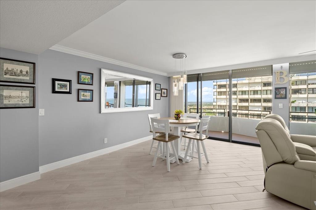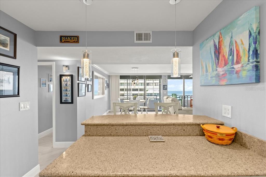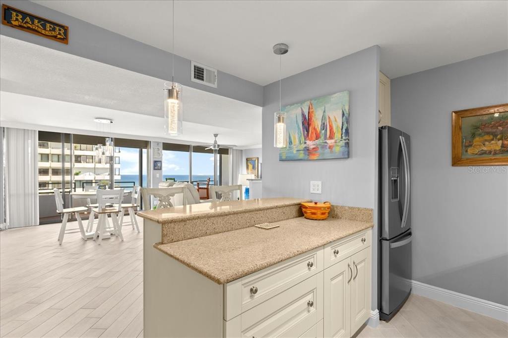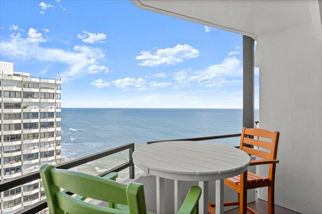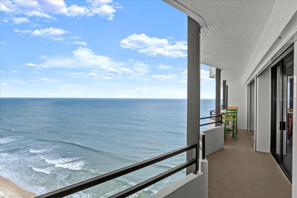 High above daytona beach showcasing magnificent views from the floor-to-ceiling glass sliders spanning the entire unit. this is a clean/move-in-ready 19th floor 2-bedroom 2-bathroom unit. there is approximately 1,275 square feet of living space and a nearly 50-foot-long balcony providing views of the ocean, river, and mainland. brand new remote controlled storm shutters. the unit has plank tile flooring laid on the bias throughout and has a neutral color palette. the kitchen has been remodeled with granite countertops, under cabinet lighting, a pantry with roll out shelves, and newer stainless steel appliances. ample storage in all closets with custom designed closet systems. the two bathrooms have been updated. va-approved, the building offers an oceanfront heated pool, a brand new pool deck, bbq area, sauna, freshly painted building, newly upgraded common areas, and a wonderful community at the aliki condo. located directly on the beach with private access from the pool, and in walking distance to publix, shopping, and dining. includes secure underground parking, water, sewer, trash, cable, high speed internet and laundry. quick close.2828 N ATLANTIC #1903, DAYTONA BEACH, FL 32118