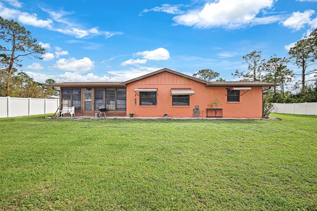 Welcome to this warm and friendly three bedroom, two full bathroom home that combines comfort, style, and functionality! as you step inside, you’ll be greeted by an inviting open-concept floor plan that’s perfect for both everyday living and entertaining. the eat-in kitchen is a chef’s delight, featuring modern stainless steel appliances, ample counter space, and a seamless flow into a spacious dining area—perfect for family meals or hosting dinner parties. the bedrooms are generously sized, offering cozy retreats for relaxation, while the bathrooms are thoughtfully designed with contemporary finishes. the primary bedroom, thoughtfully positioned on the opposite side of the home for maximum privacy, includes an ensuite bathroom and direct access to the enclosed porch and backyard. step outside to your own private oasis! the large, fenced yard provides an unparalleled sense of privacy, making it ideal for outdoor activities, pets, gardening, or simply unwinding in the beautiful florida sun. the expansive yard provides endless possibilities for creating your dream pool. located in a highly desirable, convenient area of punta gorda, this home is the perfect blend of convenience and tranquility. don't miss the opportunity to make this beautiful home yours!28350 JARDIN, PUNTA GORDA, FL 33955