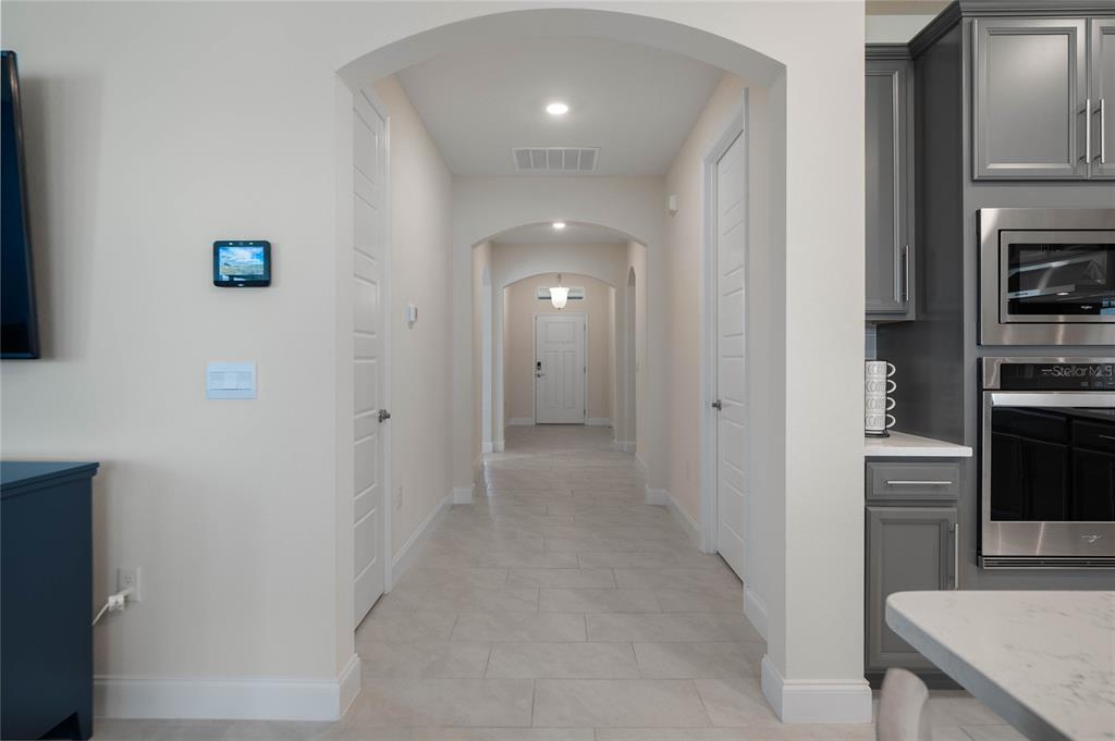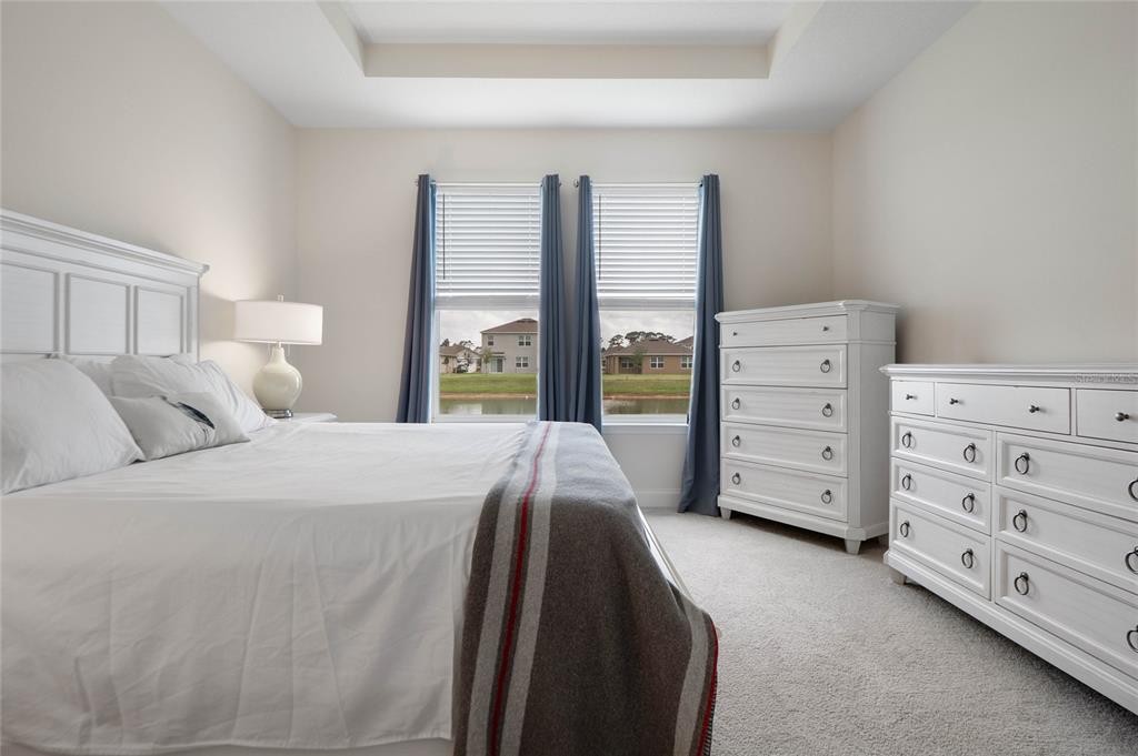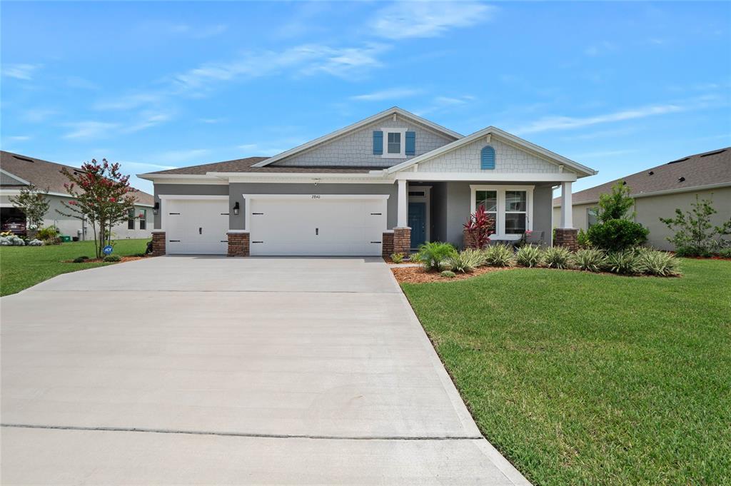 Discover the epitome of modern ranch-style living 4 bedroom 3 bath 3 car garage water front home built in 2023. nestled in the beautiful community of halifax plantation, minutes to shopping, dining and beautiful beaches this 2,106 sq ft home offers the perfect blend of luxury, comfort, and tranquility. this stunning home boasts split bedroom floor plan, four generously sized bedrooms and three pristine bathrooms, making it ideal for both large and small families. enter through a formal foyer and step into a beautiful kitchen outfitted with stainless steel appliances, a center island, and elegant quartz countertops. enjoy family gatherings around the island and your morning coffee in the cozy breakfast area with serene views of the pond. the home features tiled floors throughout, except in the comfortable, carpeted bedroom. the master bedroom, featuring a tray ceiling, offers picturesque views of the water.2840 MONAGHAN, ORMOND BEACH, FL 32174