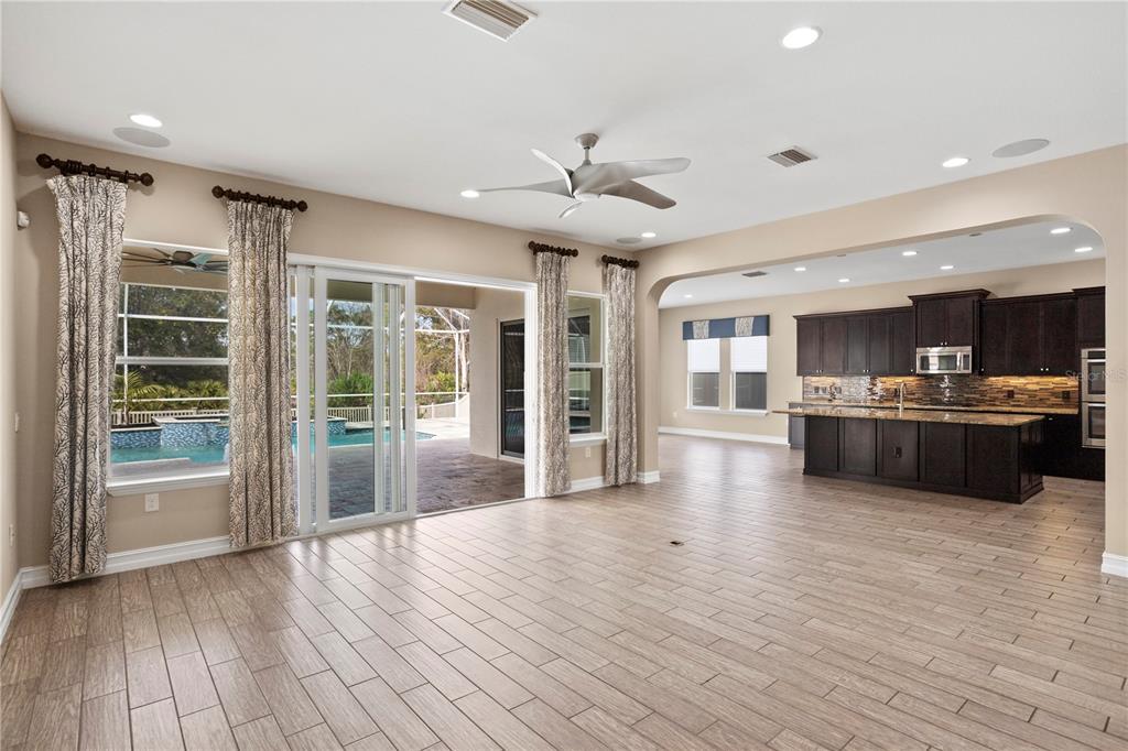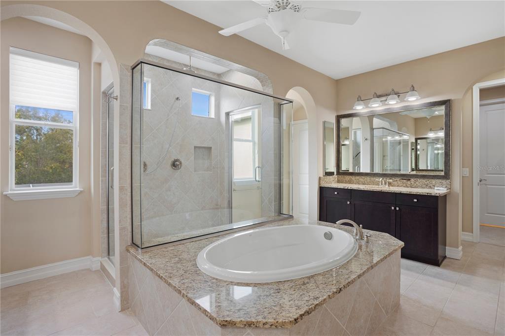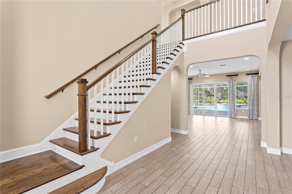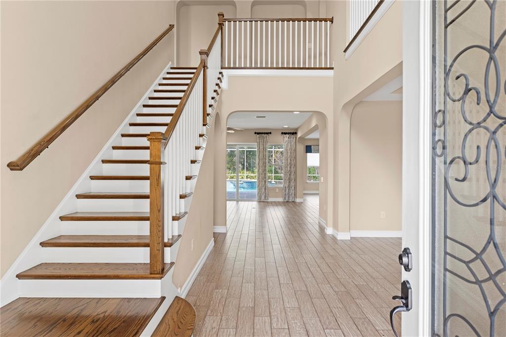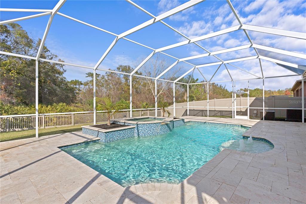 If you’re looking for excellence, look no further. this stunning home is priced for instant equity for its future owners with recent neighborhood sales in mind. perfectly positioned on a quiet gated cul-de-sac, this 5-bedroom, 4-bath, 3-car-garage + private pool & spa home offers unparalleled tranquility with pond views in the front and conservation views in the back, while being only a few minutes away from the area’s best dining and entertainment options, giving you the best of both worlds. as you step through the grand stone entryway, you’ll be greeted by soaring ceilings and a beautifully crafted staircase that sets the tone for the rest of the home. the first floor features an open layout designed with entertaining in mind. the spacious chef’s kitchen is equipped with premium stainless steel appliances, a gas stove, granite countertops, an oversized island, a butler’s pantry and an attached dining area that overlooks the backyard and a formal dining room. the kitchen flows seamlessly into the family room, where sliding doors open fully to a polished travertine pool deck, creating an exceptional indoor-outdoor living experience. the outdoor area features amble patio space, fresh landscaping, and offers a sparkling saltwater pool and spa with a new heater and programmable multi-color lighting system. the main floor also includes a private office or den with french doors, a guest bedroom with a full bathroom that has the opportunity to be used as a mother-in-law suite, as well as a functional mudroom and beautiful natural light throughout. upstairs, you’ll find a luxurious primary suite like no other, which features a spacious en-suite bathroom with dual sinks, a large soaking tub, a custom dual-entry shower, and a truly oversized walk-in closet. the second floor also boasts three additional bedrooms to make your own, a media room with balcony access and motorized blackout shades, and a laundry room offering plenty of space and a useful sink. this home is full of thoughtful upgrades including a air purification system that provides hospital-grade sanitation, ensuring excellent indoor air quality. and is pre-wired for a surround audio system, ensuring the best audio quality as well. to top it all off, it will have a brand new roof by the end of march. treviso at estancia provides residents with incredible amenities, including scenic walking trails, a resort-style pool with a water slide and lap lanes, tennis and pickle ball courts, a fitness center, and a beautifully appointed clubhouse and is highly sought-after. located just minutes from the shops at wiregrass, top-rated medical facilities such as adventhealth wesley chapel and baycare hospital, and the highly sought-after wiregrass schools, this home combines luxury living with everyday convenience. don’t miss the opportunity to make this exceptional property yours! please ask the listing agent for a copy of the full list of features and updates!28475 MARSCIANO, WESLEY CHAPEL, FL 33543