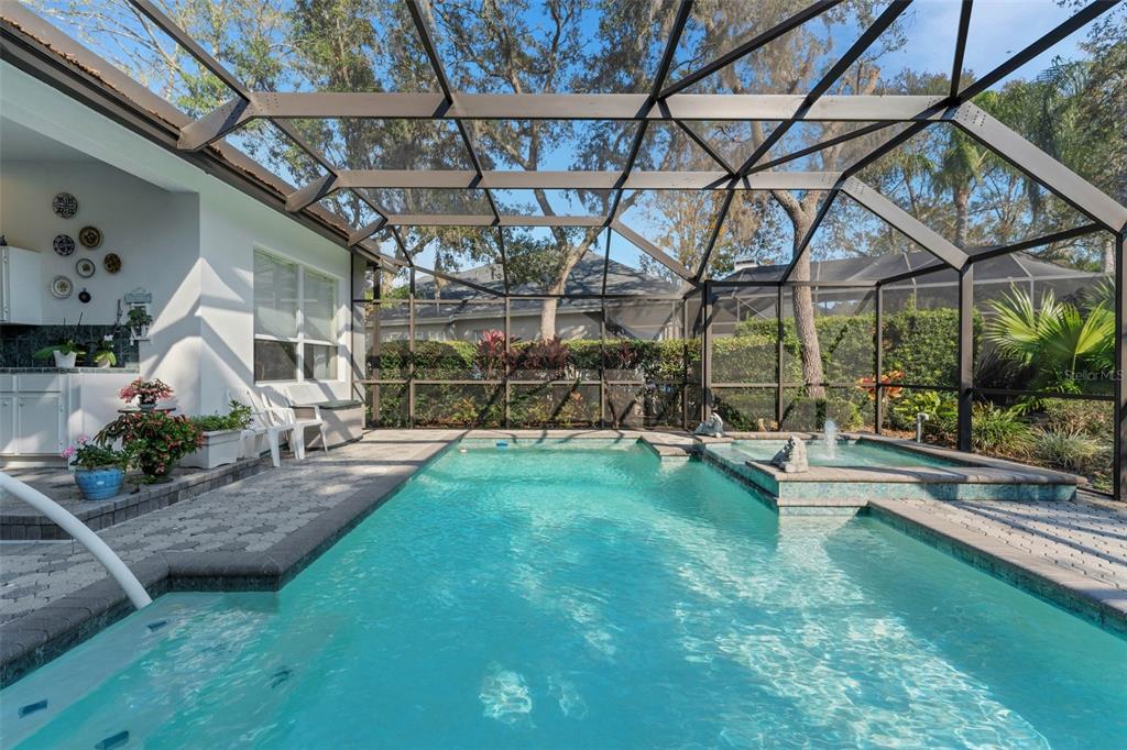 Luxurious marc rutenberg home in exclusive grey oaks boasts a .3-acre corner lot with mature oak trees consisting of 3 bedrooms and an extra large 12 x 17 bonus room that can be used as an added bedroom or den. it is nestled in a community that connects with the brooker creek preserve, the largest natural wildlife area in pinellas county. inside you are greeted by 12-foot ceilings and recessed art niches, abundant crown molding and an open floor plan with large, majestic windows for plenty of natural light. the family room, with its built-in entertainment unit and a wood-burning fireplace, flows into the kitchen for easy, enjoyable entertainment. for a more intimate setting, the kitchen offers a breakfast area with large corner mitered glass windows overlooking the sparkling pool. sliding doors from the family room also lead into the pool area, boasting elegant brick pavers, a screened lanai and equipped with its own kitchen area. the home has 3 large bedrooms and 3 full baths with a bonus room measuring 12 x 17 which can be converted into a 4th bedroom or home office, overlooking the relaxing pool and spa. it is perfectly located near top-rate schools and close to parks, walking trails, and shopping as well as within 10 miles of howard park beach and only a short half hour to tampa international airport. this stunning gem could be your next home address, come see for yourself!2850 DEER, TARPON SPRINGS, FL 34688