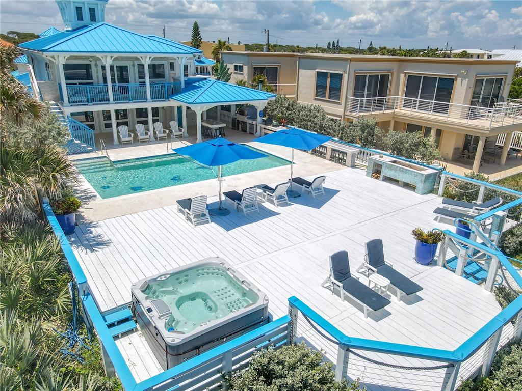 This is an exceptional opportunity to own one of the most renowned, first of its kind, exclusive, private, 5-star, luxury vacation resorts, in the heart of new smyrna beach, florida – joy by the sea. this iconic, luxurious, vacation compound, spanning over 3 lots, is recognized by its spectacular, all matching, bright blue metal roof tops. it is perfect for family vacations, weddings, reunions, parties, gatherings & more and is conveniently located in the short-term rental locale. joy by the sea features both a direct oceanfront beach house with private pool & jacuzzi as well as six beachside villas that surround a refreshing, saltwater private pool amidst gorgeous, lush tropical landscaping. the exquisite, coastal mediterranean, luxurious beach house was completely remodeled in 2021 with impeccable attention to detail and a seamless blend of elegance & timeless charm. this leaves nothing to be desired with its unobstructed ocean views, mere footsteps to feeling sand & ocean water in your toes, with state of the art amenities, including a private sport pool with volleyball net, huge deck with jacuzzi tub, lounge chairs, outdoor kitchen with concrete wood-burning oven, 2 built-in charcoal grills, beverage fridge, covered patio with dining table & a 9-person bar top overlooking the pool and ocean. inside, enjoy 2,600 sf of living space under central air, 3 levels, living room, dining room, gourmet kitchen with island, 4 bedrooms, 4 full baths, including 1 king bed, 2 queen beds & 4 twin beds to sleep 10 comfortably & 2 balconies offering breathtaking views any time of day. directly across the street are the six upscale beachside villas which include two, 1-bedroom two-story units and four ,1-level studios which, in total, sleep 32. each are stylishly appointed, fully renovated with premium furnishings, high-end appliances, private washers & dryers, balconies on the 2-story units & all surrounding the private community pool, patio with lounge chairs and umbrella, also, an outdoor shower, gazebo, 2 outdoor grills, bicycles and concierge for any needs or requests. location, location, location. while the beach house has direct ocean access with its own private walkway, joy by the sea is situated right next to a public beach access for the convenience of the villas. enjoy being less than 2 miles from flagler avenue beachfront where you can visit all of the family-owned & operated restaurants, shops and entertainment venues, embracing everything that new smyrna beach, florida represents. only 8 miles away is the preserve at turnbull bay, 15 mins from venetian bay, 20 mins from sugar mill, cypress head golf club is within 14 miles & daytona beach golf club within 17 miles. joy by the sea is conveniently located within 22 miles of the daytona beach international airport and within 35 miles of the sanford international airport. this is an incredible opportunity for anyone looking to invest in an income-producing, 5-star, oceanfront compound which is an icon of new smyrna beach, florida. joy by the sea is the epitome of luxury an exceptionalism & truly has it all. the ideal location for family vacations, reunions, weddings, corporate retreats & any event. joy by the sea is being offered as a package only, to include both the beach house & all 6 luxury villas. come preview this exceptional property for an outstanding investment opportunity as well as a privilege to own one of the most iconic properties in all of new smyrna beach, florida.2901 S ATLANTIC, NEW SMYRNA BEACH, FL 32169