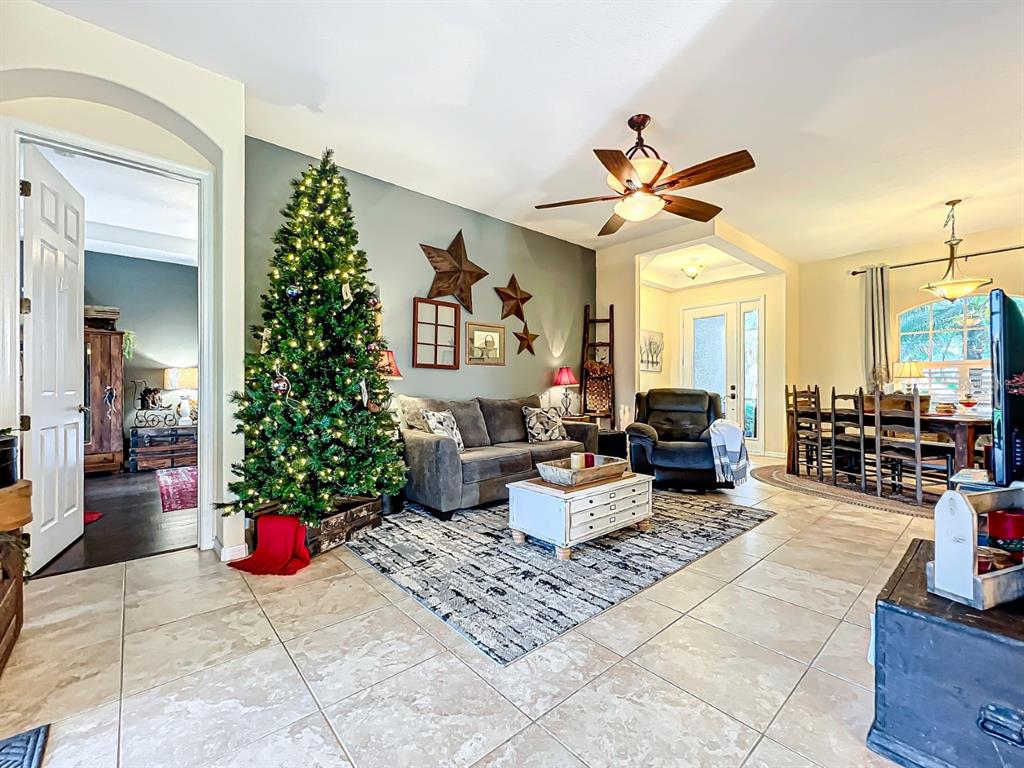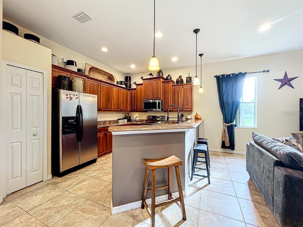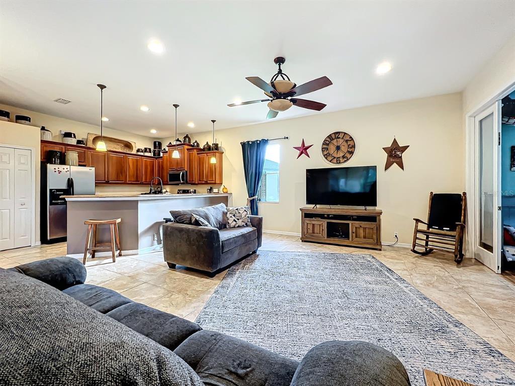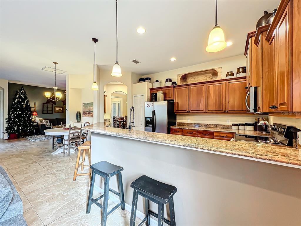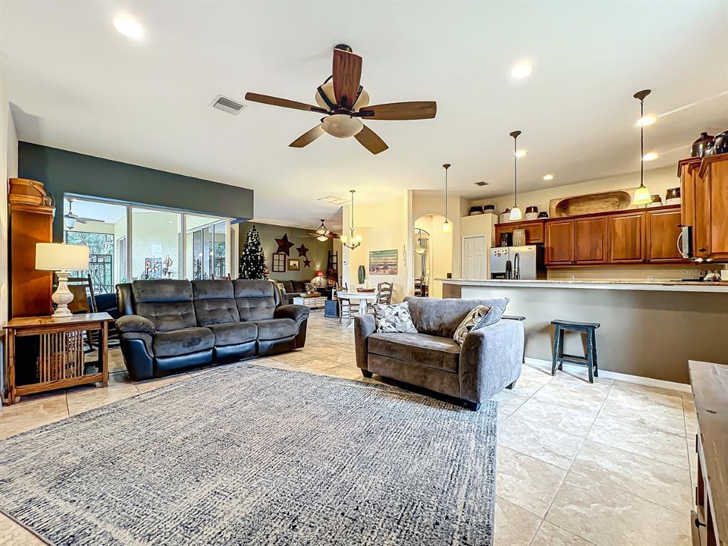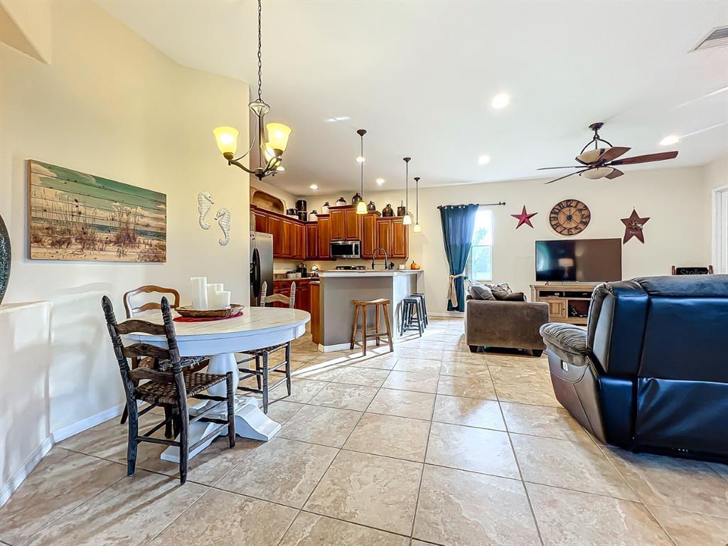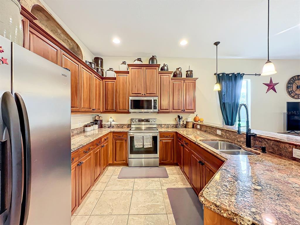 Split BedroomCeiling Fan(s) High Ceilings Stone Counters Open Floorplan Solid Wood Cabinets Kitchen/Family Room ComboExterior Features: